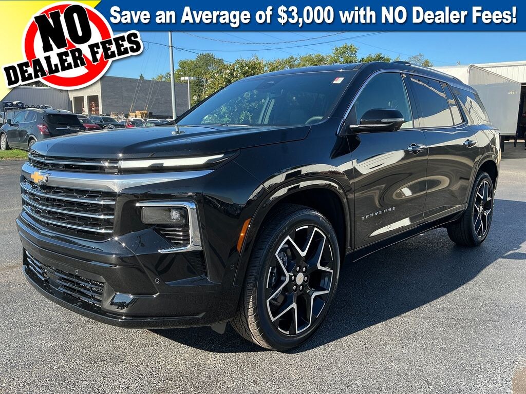 2025 Chevrolet Traverse High Country Certified. Mosaic Black Metallic High Country FWD 8-Speed Automatic 2.5L DOHC GM Certified, 12 Speakers, 1st & 2nd Row All-Weather Floor Liners (LPO), 3rd Row All-Weather Floor Liner (LPO), 3rd row seats: split-bench, 4-Wheel Disc Brakes, 6-Way Power Front Passenger Seat Adjuster, 8-Way Power Driver Seat Adjuster, ABS brakes, Air Conditioning, Alloy wheels, AM/FM radio: SiriusXM with 360L, Apple CarPlay/Android Auto, Auto High-beam Headlights, Auto tilt-away steering wheel, Auto-dimming door mirrors, Automatic temperature control, Bose Premium 12-Speaker Audio System Feature, Brake assist, Bumpers: body-color, Child-Seat-Sensing Airbag, Compass, Delay-off headlights, Driver 4-Way Power Lumbar Seat Adjuster, Driver door bin, Driver vanity mirror, Dual front impact airbags, Dual front side impact airbags, Electronic Stability Control, Emergency communication system: OnStar, Exterior Parking Camera Rear, Floor Liner Package (LPO), Four wheel independent suspension, Front anti-roll bar, Front Bucket Seats, Front Center Armrest, Front dual zone A/C, Front Passenger 4-Way Power Lumbar Seat Adjuster, Front reading lights, Fully automatic headlights, Garage door transmitter, Heated door mirrors, Heated front seats, Heated rear seats, Heated steering wheel, Illuminated entry, Low tire pressure warning, Memory seat, Navigation System, Occupant sensing airbag, Outside temperature display, Overhead airbag, Overhead console, Panic alarm, Passenger door bin, Passenger vanity mirror, Perforated Leather-Appointed Seat Trim, Power door mirrors, Power driver seat, Power Dual Glass Panoramic Sliding Sunroof, Power Liftgate, Power passenger seat, Power steering, Power windows, Preferred Equipment Group 1LZ, Radio data system, Radio: Audio System w/17.7" Diagonal Display, Rain sensing wipers, Rear air conditioning, Rear anti-roll bar, Rear reading lights, Rear window defroster, Rear window wiper, Remote keyless entry, Security system, SiriusXM w/360L Trial Subscription, Speed control, Speed-sensing steering, Spoiler, Steering wheel memory, Steering wheel mounted audio controls, Tachometer, Telescoping steering wheel, Tilt steering wheel, Traction control, Trip computer, Turn signal indicator mirrors, Variably intermittent wipers, Ventilated front seats, Voltmeter, Wheels: 22" High-Gloss Black Aluminum.