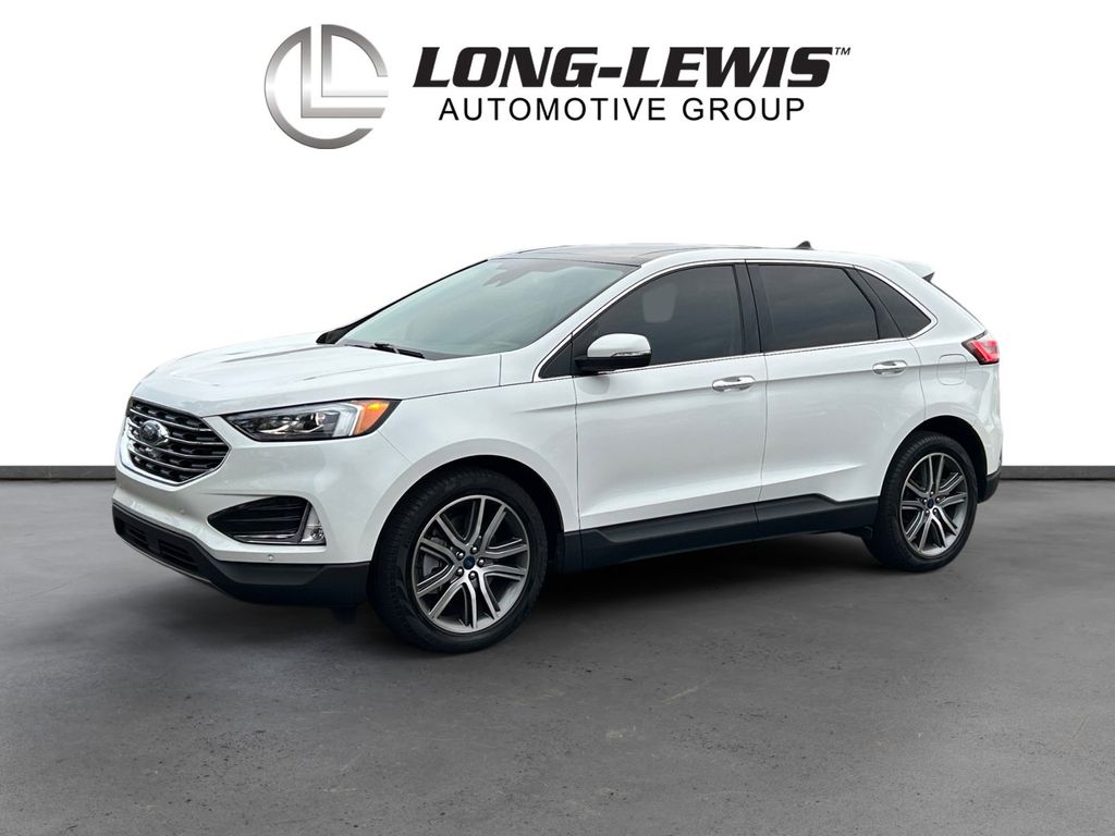 2022 Ford Edge Titanium Certified. White Metallic Titanium AWD 8-Speed Automatic EcoBoost 2.0L I4 GTDi DOHC Turbocharged VCT Ford Certified, AWD, 12 Speakers, 3.80 Axle Ratio, 4-Wheel Disc Brakes, ABS brakes, Adaptive Cruise Control w/Stop & Go, Adaptive LED Headlamps, Air Conditioning, Alloy wheels, AM/FM radio: SiriusXM with 360L, Auto High-beam Headlights, Auto-Dimming Driver's Sideview Mirror, Auto-dimming Rear-View mirror, Automatic temperature control, Brake assist, Bumpers: body-color, Compass, Connected Built-In Navigation, Delay-off headlights, Driver door bin, Driver vanity mirror, Dual front impact airbags, Dual front side impact airbags, Electronic Stability Control, Emergency communication system: SYNC 4 911 Assist, Equipment Group 301A, Evasive Steering Assist, FordPass Connect, Four wheel independent suspension, Front 180-Degree Camera w/Split View, Front anti-roll bar, Front Bucket Seats, Front Center Armrest w/Storage, Front dual zone A/C, Front fog lights, Front reading lights, Fully automatic headlights, Garage door transmitter, Heated door mirrors, Heated front seats, Heated Rear Seats, Heated steering wheel, Illuminated entry, Knee airbag, Lane Centering, Leather-Trimmed Heated Sport Bucket Seats, Leather-Trimmed Heated/Cooled Sport Bucket Seats, Low tire pressure warning, Memory seat, Occupant sensing airbag, Outside temperature display, Overhead airbag, Overhead console, Panic alarm, Panoramic Vista Roof, Passenger door bin, Passenger vanity mirror, Power door mirrors, Power driver seat, Power Liftgate, Power passenger seat, Power steering, Power Tilt/Telescoping Steering Column w/Memory, Power windows, Radio: B&O Sound System by Bang & Olufsen, Rain sensing wipers, Rear anti-roll bar, Rear reading lights, Rear seat center armrest, Rear window defroster, Rear window wiper, Remote keyless entry, Security system, SiriusXM w/360L, Speed control, Speed-Sensitive Wipers, Split folding rear seat, Spoiler, Steering wheel mounted audio controls, SYNC 4A w/Enhanced Voice Recognition, Tachometer, Telescoping steering wheel, Tilt steering wheel, Traction control, Trip computer, Turn signal indicator mirrors, Variably intermittent wipers, Wheels: 19" Luster Nickel-Painted Aluminum, Wheels: 20" Bright-Machined Aluminum, AWD.