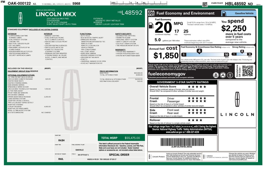 Recent Arrival! Lincoln Certified, 10 Speakers, 3.39 Axle Ratio, 4-Wheel Disc Brakes, 8" LCD Touchscreen, ABS brakes, Adaptive suspension, Air Conditioning, Alloy wheels, AM/FM radio: SiriusXM, AM/FM Stereo w/Single CD, Auto-dimming door mirrors, Auto-dimming Rear-View mirror, Automatic temperature control, Brake assist, Bumpers: body-color, CD player, Compass, Compass Display, Delay-off headlights, Driver door bin, Driver vanity mirror, Dual front impact airbags, Dual front side impact airbags, Electronic Stability Control, Emergency communication system: SYNC 3 911 Assist, Exterior Parking Camera Rear, Four wheel independent suspension, Front anti-roll bar, Front Bucket Seats, Front Center Armrest, Front dual zone A/C, Front fog lights, Front reading lights, Fully automatic headlights, Garage door transmitter: HomeLink, GVWR: 5,440 lbs Payload Package, Heated door mirrors, Heated front seats, High-Intensity Discharge Headlights, Illuminated entry, Knee airbag, Low tire pressure warning, Memory seat, Navigation System, Occupant sensing airbag, Outside temperature display, Overhead airbag, Overhead console, Panic alarm, Passenger door bin, Passenger vanity mirror, Power door mirrors, Power driver seat, Power Liftgate, Power moonroof, Power passenger seat, Power steering, Power windows, Prem Lthr-Trimmed Heated/Cooled Bucket Seats (BE), Radio data system, Rear anti-roll bar, Rear Parking Sensors, Rear reading lights, Rear seat center armrest, Rear window defroster, Rear window wiper, Remote keyless entry, Security system, Speed control, Speed-Sensitive Wipers, Split folding rear seat, Spoiler, Steering wheel memory, Steering wheel mounted A/C controls, Steering wheel mounted audio controls, SYNC 3, Tachometer, Telescoping steering wheel, Tilt steering wheel, Traction control, Trip computer, Turn signal indicator mirrors, Variably intermittent wipers, Ventilated front seats, Wheels: 20" Premium Painted Aluminum w/20 Spokes.