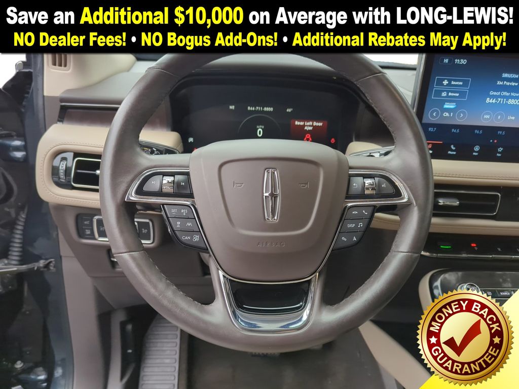 Priced below KBB Fair Purchase Price! Lincoln Certified, 10 Speakers, 110V/150W AC Power Outlet, 3.80 Axle Ratio, 360 Degree Camera w/Rear Camera Wash, 4-Wheel Disc Brakes, ABS brakes, Active Park Assist 2.0, Adaptive Cruise Control, Air Conditioning, Alexa Built-In, Alloy wheels, AM/FM radio: SiriusXM with 360L, Auto High-beam Headlights, Auto tilt-away steering wheel, Auto-dimming door mirrors, Auto-dimming Rear-View mirror, Automatic temperature control, Brake assist, Bumpers: body-color, Cargo Compartment w/Reversible Mat, Cargo Utility Package, Class II Trailer Tow Package, Compass, Delay-off headlights, Distance Indication & Alert, Driver door bin, Driver vanity mirror, Dual front impact airbags, Dual front side impact airbags, Electronic Stability Control, Emergency communication system: 911 Assist, Equipment Group 201A, Evasive Steering Assist, Forward-Side-Rear Parking Sensors, Four wheel independent suspension, Front anti-roll bar, Front Bucket Seats, Front Center Armrest w/Storage, Front dual zone A/C, Front reading lights, Fully automatic headlights, Garage door transmitter: HomeLink, Heated door mirrors, Heated front seats, Heated rear seats, Heated steering wheel, Illuminated entry, Interior Cargo Cover, Knee airbag, Leather steering wheel, Lincoln Co-Pilot360 1.0 Plus Package, Low tire pressure warning, Memory seat, Molded Plastic Storage Bins, Navigation System, Occupant sensing airbag, Outside temperature display, Overhead airbag, Overhead console, Panic alarm, Passenger door bin, Passenger vanity mirror, Phone As A Key, Power door mirrors, Power driver seat, Power Liftgate, Power moonroof: Panoramic Vista Roof, Power passenger seat, Power steering, Power windows, Prem Lthr-Trimmed Heated/Ventilated Captain Seats, Radio data system, Radio: AM/FM/HD Audio System, Rain sensing wipers, Rear anti-roll bar, Rear Cargo Management System, Rear reading lights, Rear seat center armrest, Rear window defroster, Rear window wiper, Remote keyless entry, Satin Roof Rack Side Rails w/o Crossbars, Security system, Speed control, Speed-sensing steering, Speed-Sensitive Wipers, Split folding rear seat, Spoiler, Steering wheel memory, Steering wheel mounted A/C controls, Steering wheel mounted audio controls, SYNC 4 w/Enhanced Voice Recognition, Tachometer, Telescoping steering wheel, Tilt steering wheel, Traction control, Trip computer, Turn signal indicator mirrors, Variably intermittent wipers, Ventilated front seats, Wheels: 18" Premium Painted Bright Machined Alum, Wheels: 20" Prem Painted Bright Machined Aluminum.