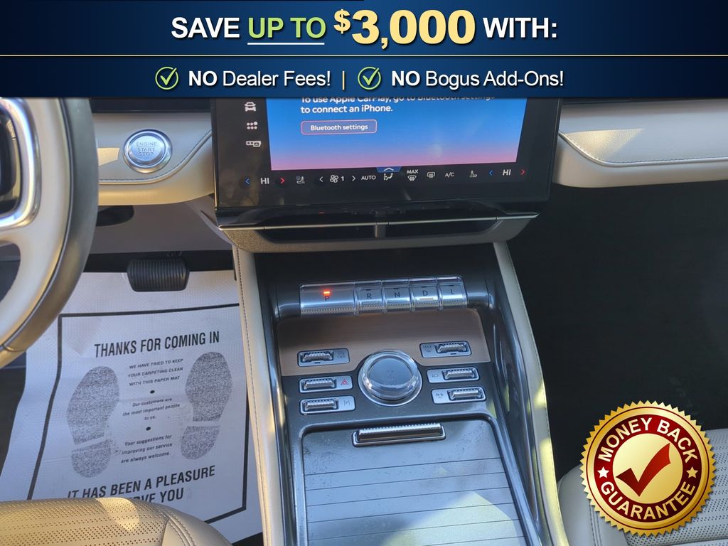 Lincoln Certified, 10 Speakers, 3.81 Axle Ratio, 360 Degree Camera, 4-Wheel Disc Brakes, ABS brakes, Active Park Assist 2.0, Adaptive suspension, Air Conditioning, Alexa Built-In, Alloy wheels, AM/FM Radio, AM/FM radio: SiriusXM with 360L, Apple CarPlay/Android Auto, Auto High-beam Headlights, Auto tilt-away steering wheel, Auto-dimming Rear-View mirror, Automatic temperature control, Blind Spot Info. System w/Cross-Traffic Alert, Brake assist, Bumpers: body-color, Compass, Delay-off headlights, Driver door bin, Driver vanity mirror, Dual front impact airbags, Dual front side impact airbags, Electronic Stability Control, Emergency communication system: 911 Assist, Equipment Group 201A, Exterior Parking Camera Rear, Four wheel independent suspension, Front anti-roll bar, Front Bucket Seats, Front Center Armrest w/Storage, Front dual zone A/C, Front reading lights, Fully automatic headlights, Garage door transmitter: HomeLink, Heated door mirrors, Heated front seats, Heated steering wheel, Illuminated entry, Intelligent Adaptive Cruise Control, Knee airbag, Leather steering wheel, Lincoln BlueCruise Equipped (90-Day Trial), Low tire pressure warning, Memory seat, Navigation System, Occupant sensing airbag, Outside temperature display, Overhead airbag, Overhead console, Panic alarm, Passenger door bin, Passenger vanity mirror, Power door mirrors, Power driver seat, Power Liftgate, Power passenger seat, Power steering, Power windows, Prem Lthr-Trimmed Heated/Ventilated Captain Seats, Radio data system, Rain sensing wipers, Rear anti-roll bar, Rear reading lights, Rear seat center armrest, Rear window defroster, Rear window wiper, Remote keyless entry, Security system, Speed control, Speed-sensing steering, Speed-Sensitive Wipers, Split folding rear seat, Spoiler, Steering wheel memory, Steering wheel mounted audio controls, Tachometer, Telescoping steering wheel, Tilt steering wheel, Traction control, Trip computer, Turn signal indicator mirrors, Variably intermittent wipers, Ventilated front seats, Wheels: 21" Ultra Bright Machined Aluminum.