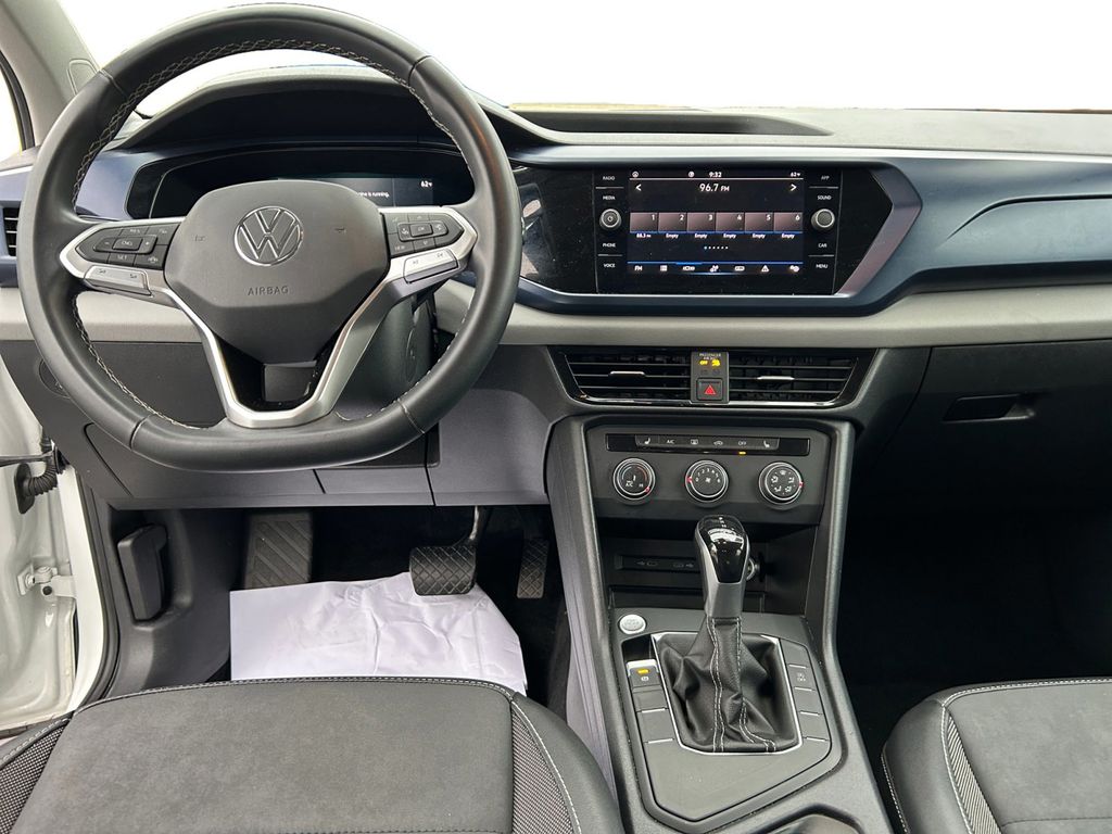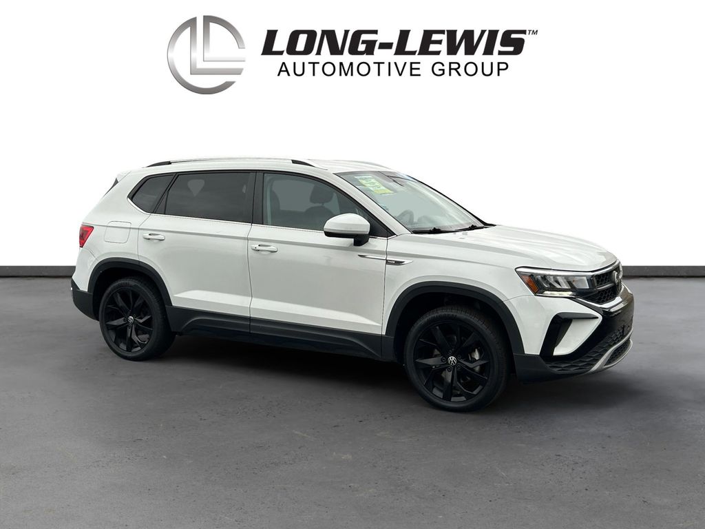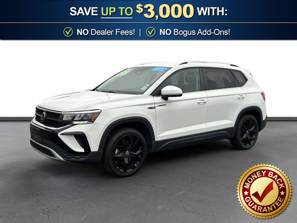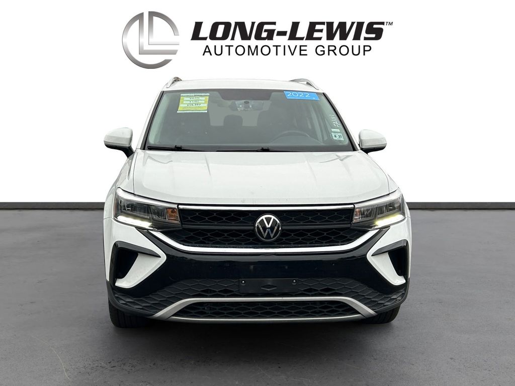 2022 Volkswagen Taos 1.5T SE Certified. White 1.5T SE FWD 8-Speed Automatic with Tiptronic 1.5L I4 Turbocharged DOHC 16V LEV3-SULEV30 158hp Volkswagen Certified, 3.23 Axle Ratio, 4-Wheel Disc Brakes, 6 Speakers, ABS brakes, Air Conditioning, Alloy wheels, AM/FM radio: SiriusXM with 360L, Brake assist, Bumpers: body-color, CloudTex & Cloth Seating Surfaces, Compass, Delay-off headlights, Driver door bin, Driver vanity mirror, Dual front impact airbags, Dual front side impact airbags, Electronic Stability Control, Emergency communication system: Car-Net, Exterior Parking Camera Rear, Front anti-roll bar, Front Assist, Front Bucket Seats, Front Center Armrest, Front reading lights, Front Strut Rear Torsion Beam Suspension, Front wheel independent suspension, Fully automatic headlights, Heated door mirrors, Heated Front Comfort Seats, Heated front seats, Illuminated entry, Leather Shift Knob, Low tire pressure warning, Occupant sensing airbag, Outside temperature display, Overhead airbag, Overhead console, Panic alarm, Passenger door bin, Passenger vanity mirror, Power door mirrors, Power driver seat, Power steering, Power windows, Radio data system, Radio: MIB3 Composition Media AM/FM/HD, Rear anti-roll bar, Rear seat center armrest, Rear Traffic Alert, Rear window defroster, Rear window wiper, Remote keyless entry, Roof rack: rails only, Security system, Speed control, Speed-sensing steering, Split folding rear seat, Spoiler, Steering wheel mounted audio controls, Tachometer, Telescoping steering wheel, Tilt steering wheel, Traction control, Trip computer, Variably intermittent wipers, Wheels: 18" 2-Tone Machined Alloy.