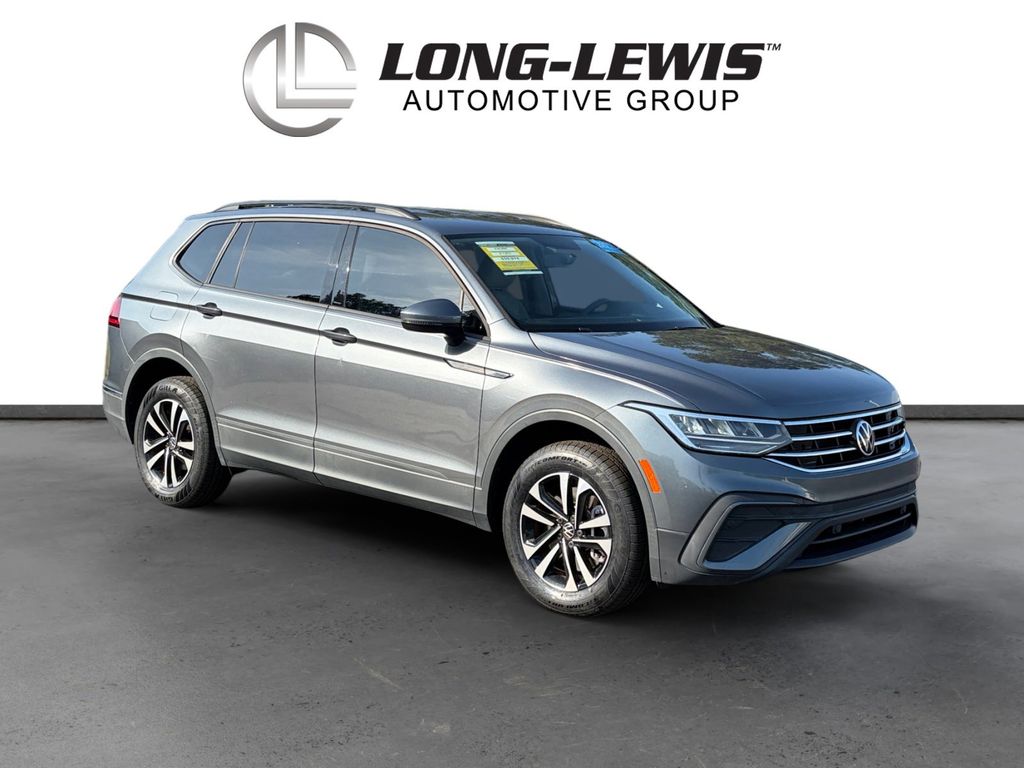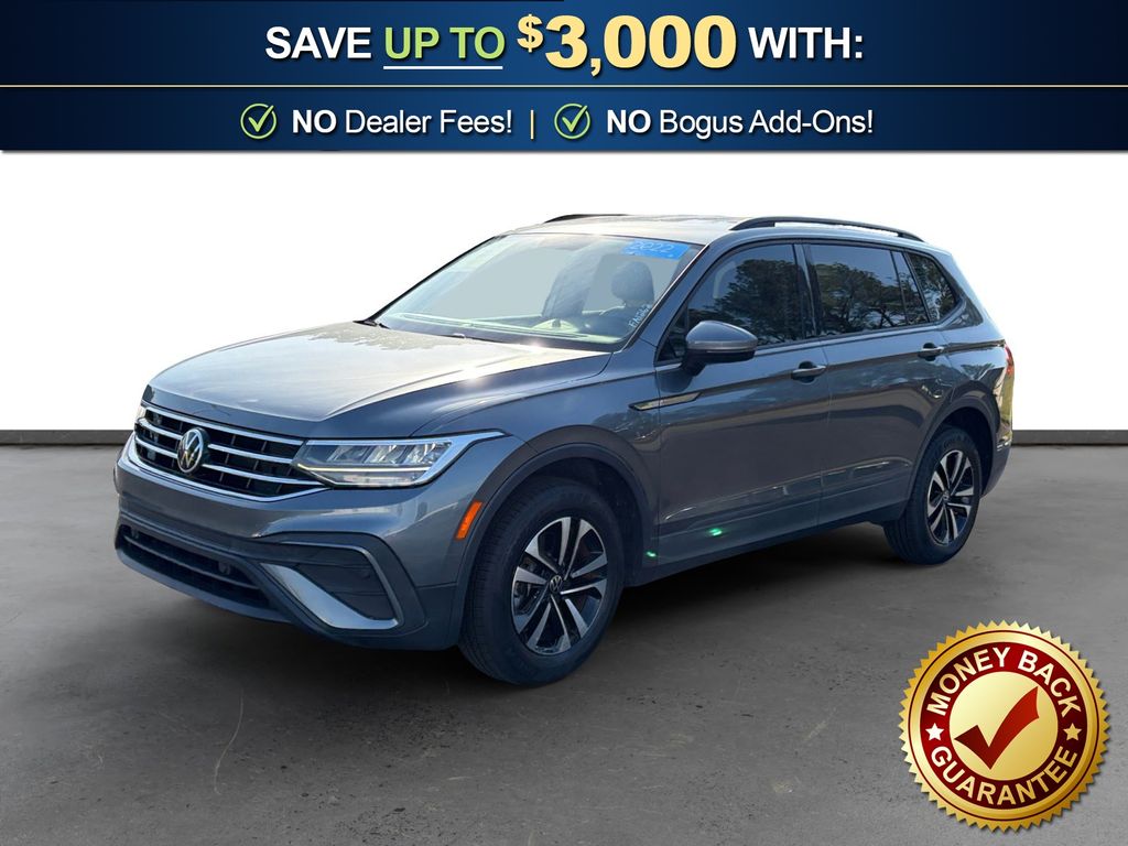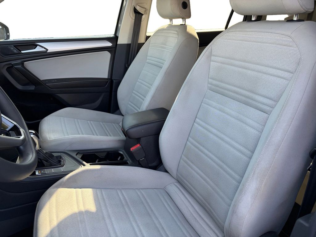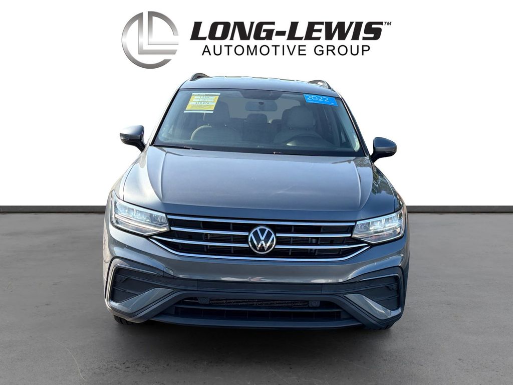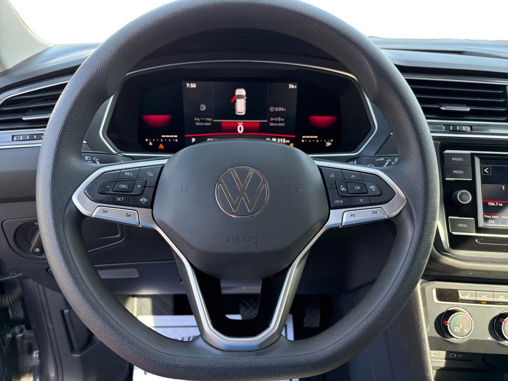 2022 Volkswagen Tiguan 2.0T S Certified. Platinum Gray Metallic 2.0T S FWD 8-Speed Automatic with Tiptronic 2.0L TSI DOHC Volkswagen Certified, 3-Row Rubber Monster Mats w/Logo Kit (Set of 5), 3.33 Axle Ratio, 3rd row seats: bench, 4-Wheel Disc Brakes, 4-Wheel Independent Suspension, 6 Speakers, ABS brakes, Air Conditioning, Alloy wheels, AM/FM radio, Brake assist, Bumpers: body-color, Cloth Seating Surfaces, Compass, Delay-off headlights, Driver door bin, Driver vanity mirror, Dual front impact airbags, Dual front side impact airbags, Electronic Stability Control, Emergency communication system: Car-Net, Exterior Parking Camera Rear, Forward collision: FCW w/Autonomous Emergency Braking mitigation, Four wheel independent suspension, Front anti-roll bar, Front Bucket Seats, Front Center Armrest, Front reading lights, Fully automatic headlights, Heated door mirrors, Heated Front Bucket Seats, Heated front seats, Heavy Duty Trunk Liner w/VW CarGo Blocks, Illuminated entry, Leather Shift Knob, Low tire pressure warning, Occupant sensing airbag, Outside temperature display, Overhead airbag, Overhead console, Panic alarm, Passenger door bin, Passenger vanity mirror, Power door mirrors, Power steering, Power windows, Radio data system, Radio: Composition Color AM/FM, Rear anti-roll bar, Rear reading lights, Rear seat center armrest, Rear window defroster, Rear window wiper, Remote keyless entry, Roof rack: rails only, Speed control, Speed-sensing steering, Split folding rear seat, Spoiler, Steering wheel mounted audio controls, Tachometer, Telescoping steering wheel, Tilt steering wheel, Traction control, Trip computer, Turn signal indicator mirrors, Variably intermittent wipers, Wheels: 17" 2-Tone Machined Twin 5-Spoke Alloy.