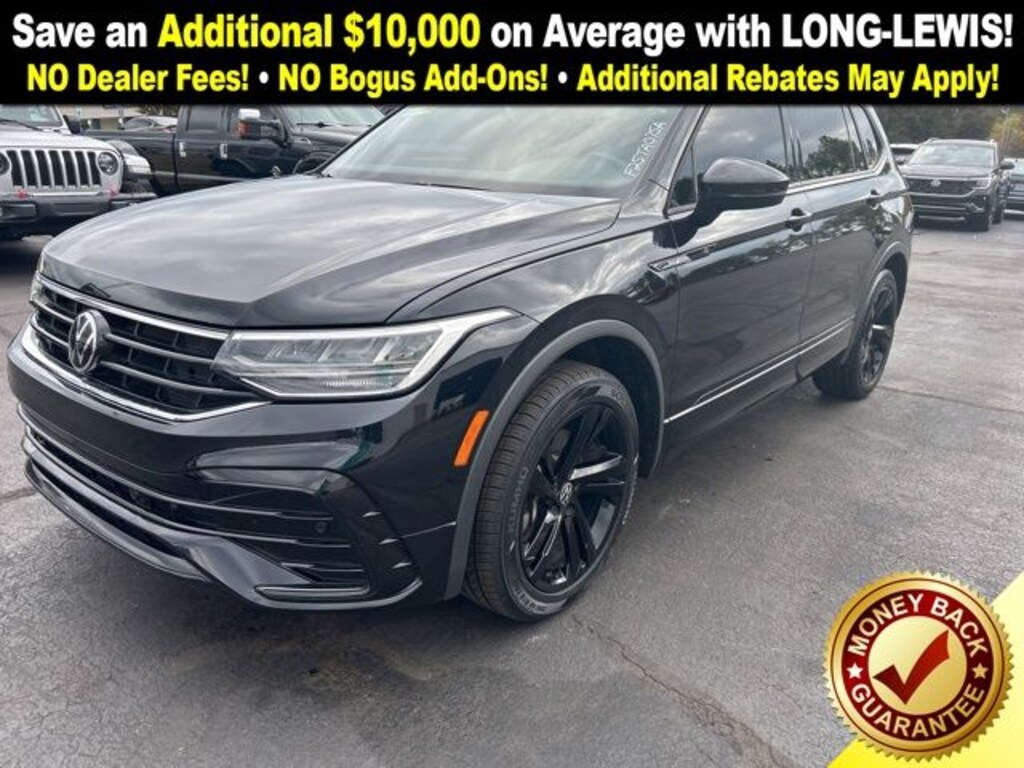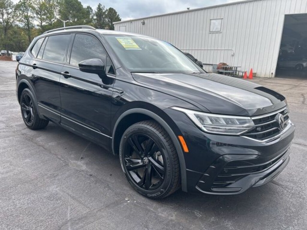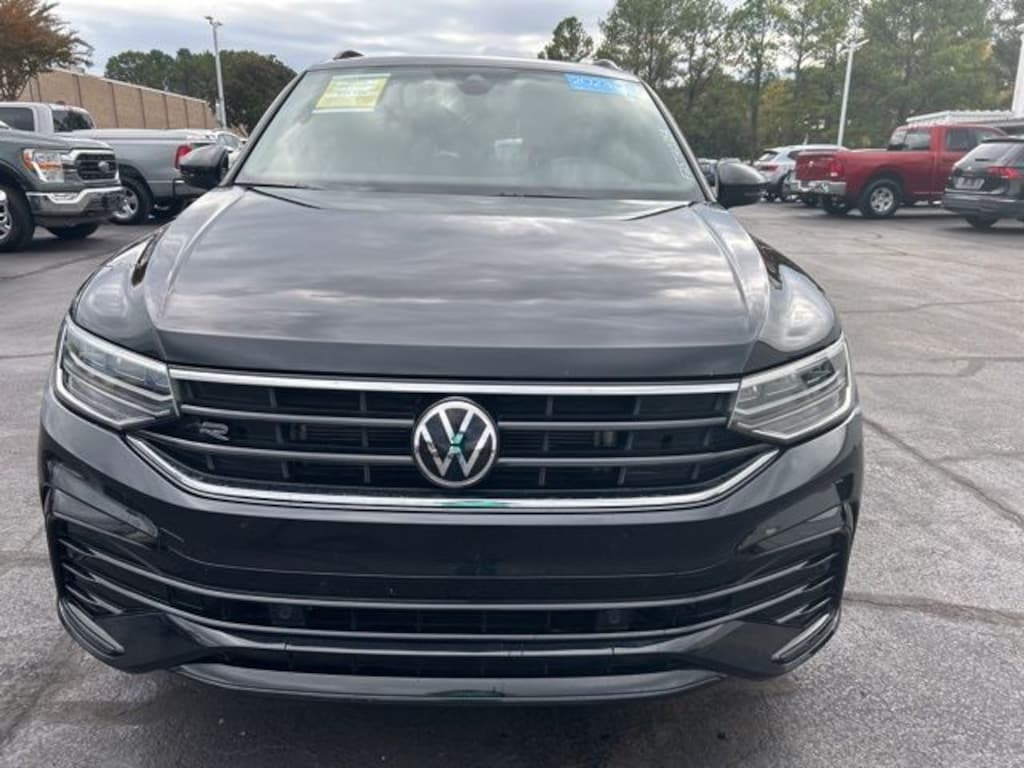 2023 Volkswagen Tiguan 2.0T SE R-Line Black Certified. Deep Black Pearl 2.0T SE R-Line Black FWD 8-Speed Automatic with Tiptronic 2.0L TSI DOHC Volkswagen Certified, 3-Row Rubber Monster Mats w/Logo Kit (Set of 5), 3.33 Axle Ratio, 3rd row seats: bench, 4-Wheel Disc Brakes, 4-Wheel Independent Suspension, 6 Speakers, ABS brakes, Air Conditioning, Alloy wheels, AM/FM radio: SiriusXM with 360L, Auto-dimming Rear-View mirror, Automatic temperature control, Brake assist, Bumpers: body-color, Cargo Area Retractable Privacy Cover, Compass, Credit - Power Rear Liftgate Removed, Delay-off headlights, Driver door bin, Driver vanity mirror, Dual front impact airbags, Dual front side impact airbags, Electronic Stability Control, Emergency communication system: VW Car-Net Safe & Secure 5-year, Exterior Parking Camera Rear, First Aid Kit, Four wheel independent suspension, Front anti-roll bar, Front Bucket Seats, Front Center Armrest, Front dual zone A/C, Front reading lights, Fully automatic headlights, Heated door mirrors, Heated Front Comfort Seats, Heated front seats, Heavy Duty Trunk Liner w/VW CarGo Blocks, Illuminated entry, Leather Shift Knob, Leather steering wheel, Low tire pressure warning, Occupant sensing airbag, Outside temperature display, Overhead airbag, Overhead console, Panic alarm, Passenger door bin, Passenger vanity mirror, Perforated V-Tex Leatherette Seating Surfaces, Power door mirrors, Power driver seat, Power Liftgate, Power moonroof, Power steering, Power windows, Radio data system, Radio: MIB3 Composition Media AM/FM/HD, Rain sensing wipers, Rear anti-roll bar, Rear reading lights, Rear seat center armrest, Rear window defroster, Rear window wiper, Remote keyless entry, Roadside Assistance Kit, Security system, Speed control, Speed-sensing steering, Split folding rear seat, Spoiler, Sport steering wheel, Steering wheel mounted audio controls, Tachometer, Telescoping steering wheel, Tilt steering wheel, Traction control, Trip computer, Turn signal indicator mirrors, Variably intermittent wipers, Wheels: 19" Black Painted Twin 5-Spoke Alloy.