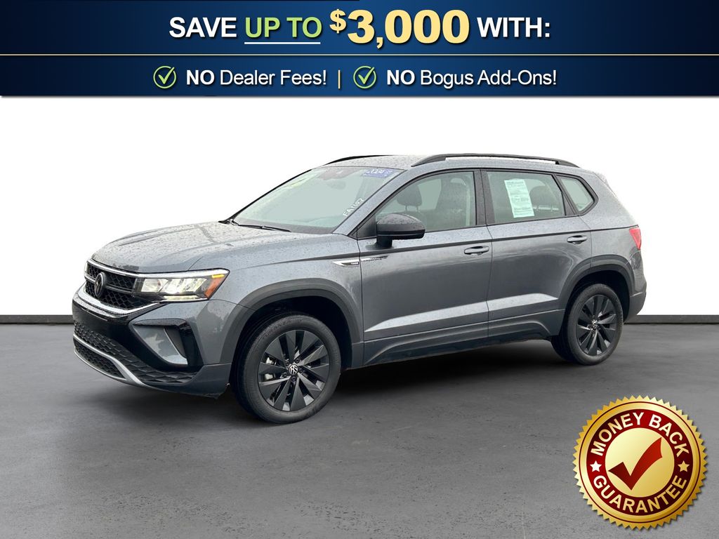 2024 Volkswagen Taos 1.5T S Certified. Platinum Gray Metallic 1.5T S FWD 8-Speed Automatic with Tiptronic 1.5L I4 Turbocharged DOHC 16V LEV3-SULEV30 158hp Volkswagen Certified, 3.23 Axle Ratio, 4-Wheel Disc Brakes, 6 Speakers, ABS brakes, Active Blind Spot Monitor, Air Conditioning, Alloy wheels, AM/FM radio, Auto High-beam Headlights, Brake assist, Bumpers: body-color, Cloth Seating Surfaces, Compass, Delay-off headlights, Driver door bin, Driver vanity mirror, Dual front impact airbags, Dual front side impact airbags, Electronic Stability Control, Emergency communication system: VW Car-Net Safe & Secure 5-year, Exterior Parking Camera Rear, Front anti-roll bar, Front Bucket Seats, Front Center Armrest, Front reading lights, Front Strut Rear Torsion Beam Suspension, Front wheel independent suspension, Fully automatic headlights, Heated steering wheel, Illuminated entry, Leather Shift Knob, Low tire pressure warning, Occupant sensing airbag, Outside temperature display, Overhead airbag, Overhead console, Panic alarm, Passenger door bin, Passenger vanity mirror, Power door mirrors, Power steering, Power windows, Radio data system, Radio: Composition Color AM/FM, Rain sensing wipers, Rear anti-roll bar, Rear seat center armrest, Rear window defroster, Rear window wiper, Remote keyless entry, Roof rack: rails only, Rubber Mats Kit (SNM), Speed control, Speed-sensing steering, Split folding rear seat, Spoiler, Steering wheel mounted audio controls, Tachometer, Telescoping steering wheel, Tilt steering wheel, Traction control, Trip computer, Variably intermittent wipers, Wheels: 17" Silver Painted Alloy.