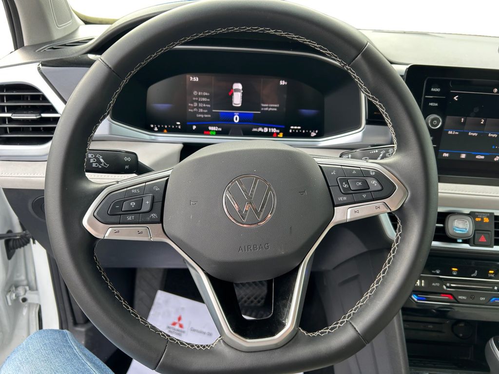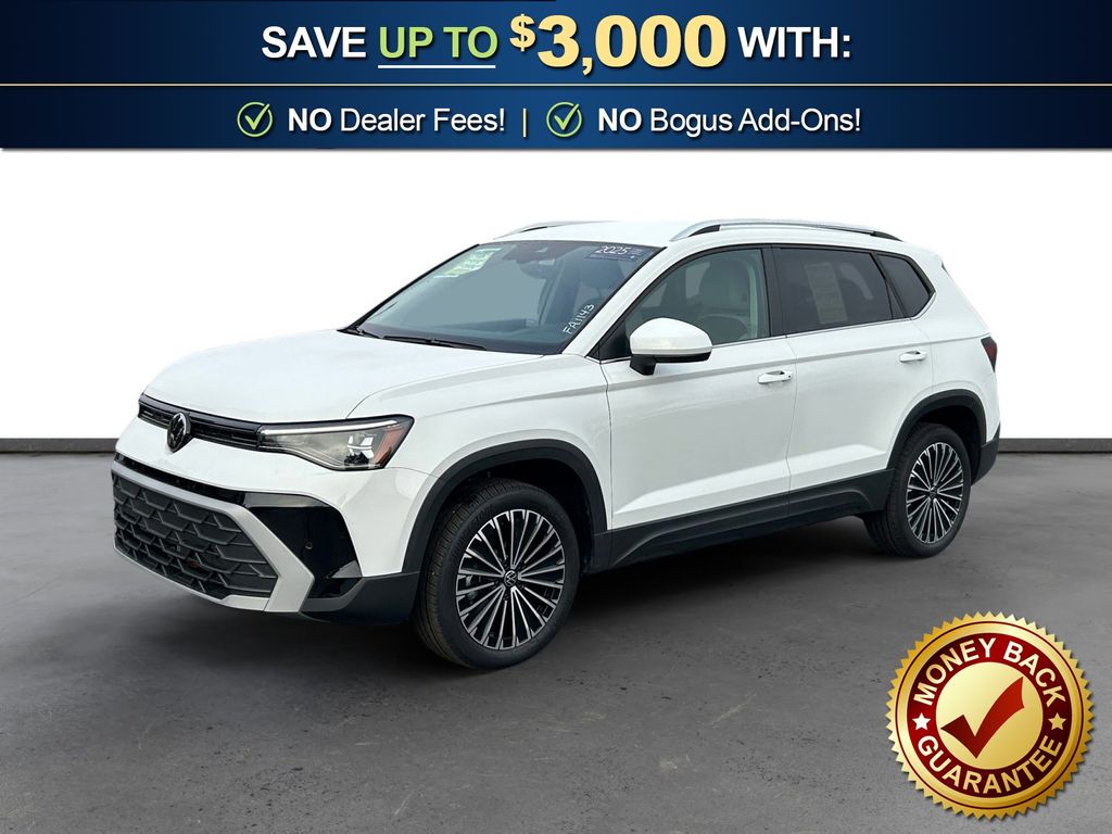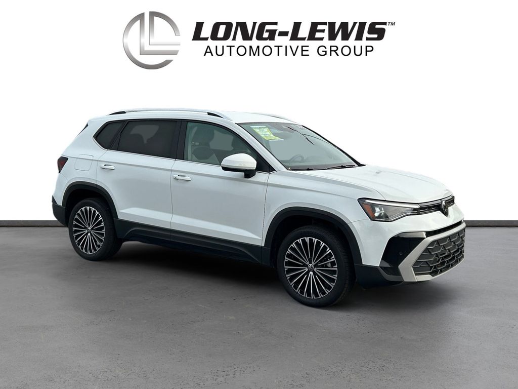 2025 Volkswagen Taos 1.5T SE Certified. Pure White 1.5T SE FWD 8-Speed Automatic with Tiptronic 1.5L I4 Turbocharged DOHC 16V LEV3-SULEV30 174hp Volkswagen Certified, 4-Wheel Disc Brakes, 6 Speakers, ABS brakes, Active Blind Spot Monitor, Air Conditioning, Alloy wheels, AM/FM radio: SiriusXM with 360L, Auto High-beam Headlights, Auto-Dimming Rearview Mirror with HomeLink Connect, Automatic temperature control, Brake assist, Bumpers: body-color, Cloudtex and Cloth Seating Surfaces, Compass, Delay-off headlights, Driver door bin, Driver vanity mirror, Dual front impact airbags, Dual front side impact airbags, Electronic Stability Control, Emergency communication system: VW Car-Net Safe & Secure 5-year, Exterior Parking Camera Rear, First Aid Kit, Front anti-roll bar, Front Bucket Seats, Front Center Armrest, Front dual zone A/C, Front reading lights, Front Strut Rear Torsion Beam Suspension, Front wheel independent suspension, Fully automatic headlights, Heated door mirrors, Heated Front Bucket Seats, Heated front seats, Heated steering wheel, Illuminated entry, Leather Shift Knob, Low tire pressure warning, Luggage Net, Occupant sensing airbag, Outside temperature display, Overhead airbag, Overhead console, Panic alarm, Passenger door bin, Passenger vanity mirror, Power door mirrors, Power driver seat, Power steering, Power windows, Radio data system, Radio: MIB3 Composition Media AM/FM/HD, Rain sensing wipers, Rear anti-roll bar, Rear seat center armrest, Rear window defroster, Rear window wiper, Remote keyless entry, Retractable Privacy Cover For Cargo Area Blocks, Rubber Mats Kit, Security system, Speed control, Speed-sensing steering, Split folding rear seat, Spoiler, Steering wheel mounted audio controls, Tachometer, Telescoping steering wheel, Tilt steering wheel, Traction control, Trip computer, Variably intermittent wipers, VW Care, Wheels: 18" 2-Tone Machined Alloy.