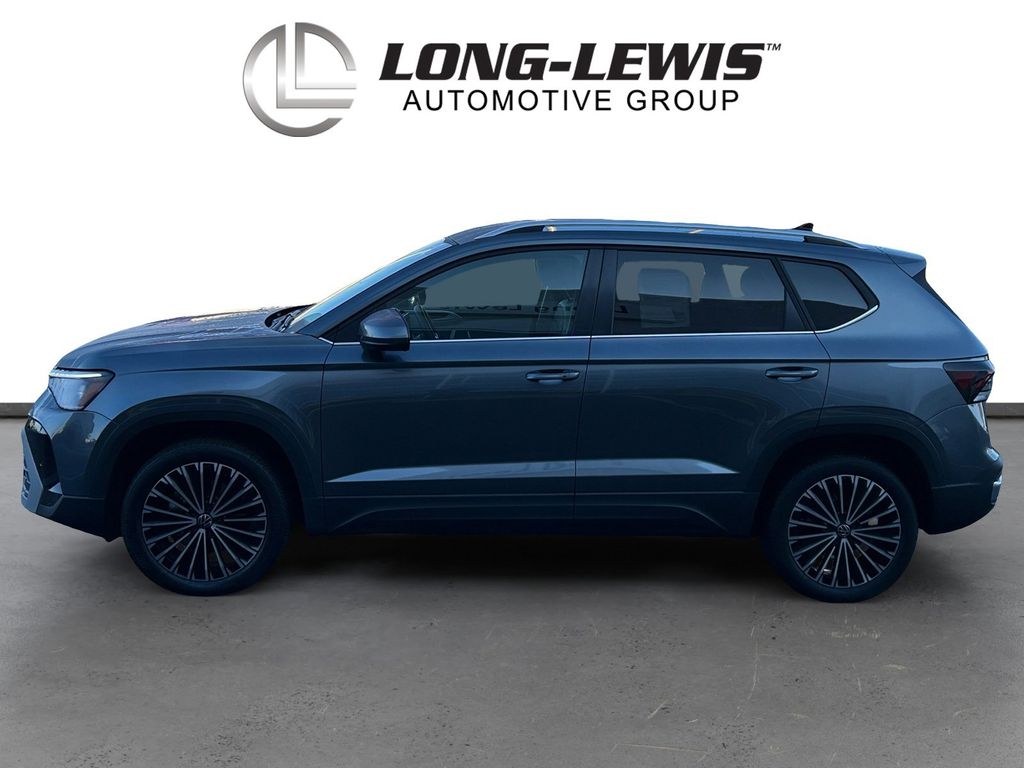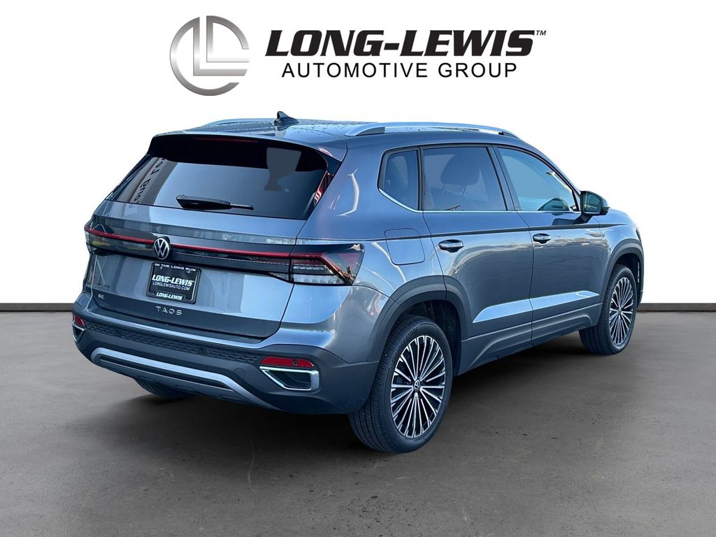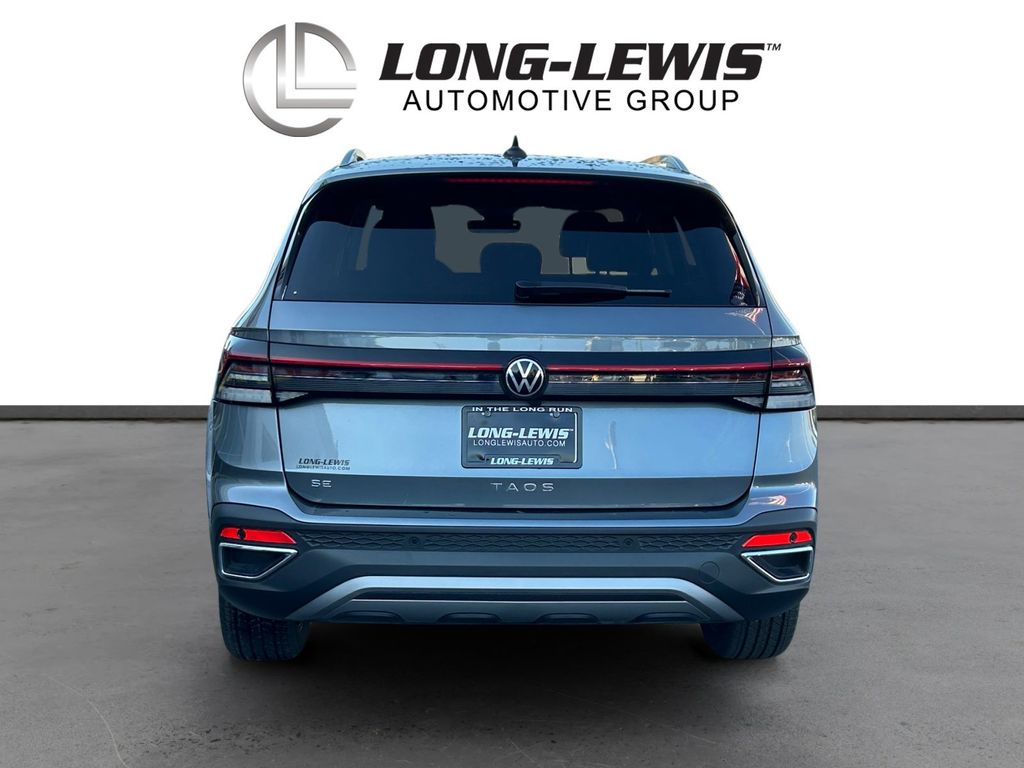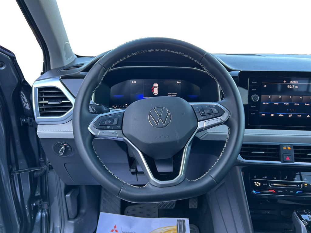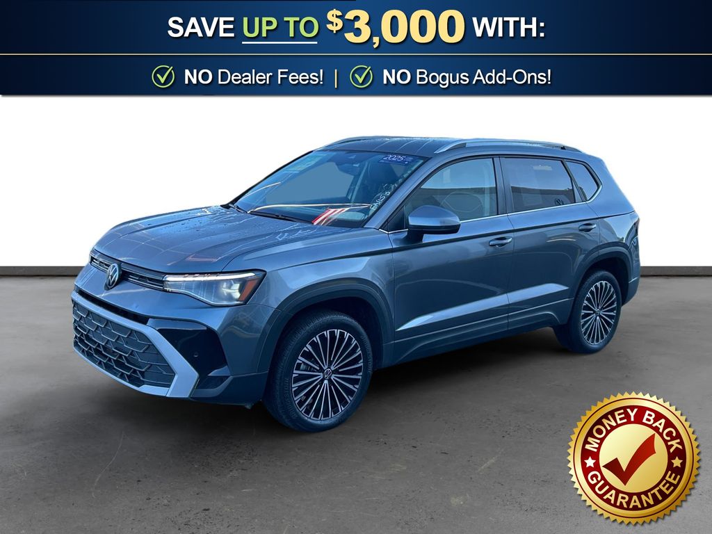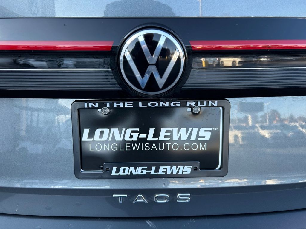 2025 Volkswagen Taos 1.5T SE Certified. Platinum Gray Metallic 1.5T SE FWD 8-Speed Automatic with Tiptronic 1.5L I4 Turbocharged DOHC 16V LEV3-SULEV30 174hp Volkswagen Certified, 4-Wheel Disc Brakes, 6 Speakers, ABS brakes, Active Blind Spot Monitor, Air Conditioning, Alloy wheels, AM/FM radio: SiriusXM with 360L, Auto High-beam Headlights, Auto-Dimming Rearview Mirror with HomeLink Connect, Automatic temperature control, Brake assist, Bumpers: body-color, Cloudtex and Cloth Seating Surfaces, Compass, Delay-off headlights, Driver door bin, Driver vanity mirror, Dual front impact airbags, Dual front side impact airbags, Electronic Stability Control, Emergency communication system: VW Car-Net Safe & Secure 5-year, Exterior Parking Camera Rear, First Aid Kit, Front anti-roll bar, Front Bucket Seats, Front Center Armrest, Front dual zone A/C, Front reading lights, Front Strut Rear Torsion Beam Suspension, Front wheel independent suspension, Fully automatic headlights, Heated door mirrors, Heated Front Bucket Seats, Heated front seats, Heated steering wheel, Illuminated entry, Leather Shift Knob, Low tire pressure warning, Luggage Net, Occupant sensing airbag, Outside temperature display, Overhead airbag, Overhead console, Panic alarm, Passenger door bin, Passenger vanity mirror, Power door mirrors, Power driver seat, Power steering, Power windows, Radio data system, Radio: MIB3 Composition Media AM/FM/HD, Rain sensing wipers, Rear anti-roll bar, Rear seat center armrest, Rear window defroster, Rear window wiper, Remote keyless entry, Retractable Privacy Cover For Cargo Area Blocks, Rubber Mats Kit, Security system, Speed control, Speed-sensing steering, Split folding rear seat, Spoiler, Steering wheel mounted audio controls, Tachometer, Telescoping steering wheel, Tilt steering wheel, Traction control, Trip computer, Variably intermittent wipers, VW Care, Wheels: 18" 2-Tone Machined Alloy.