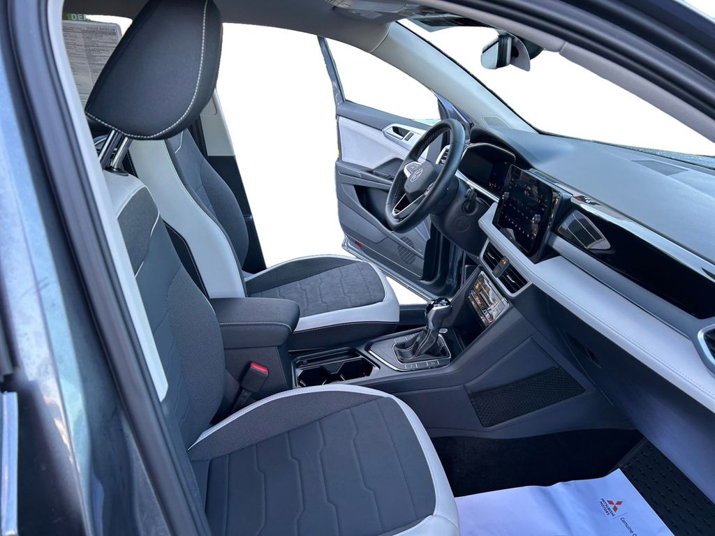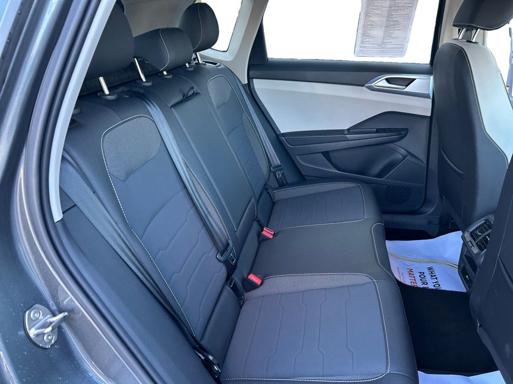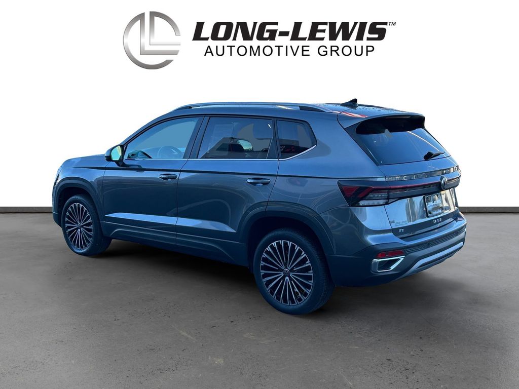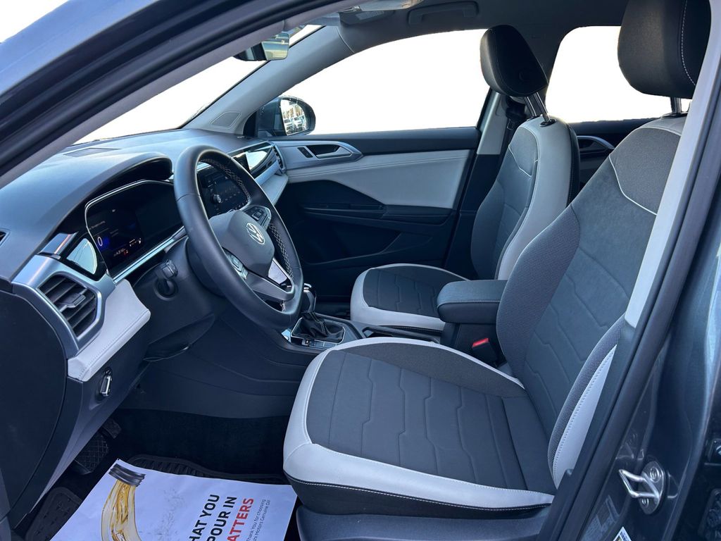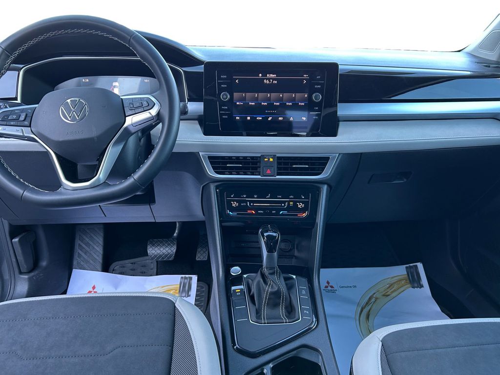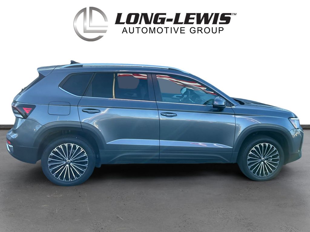 2025 Volkswagen Taos 1.5T SE Certified. Platinum Gray Metallic 1.5T SE FWD 8-Speed Automatic with Tiptronic 1.5L I4 Turbocharged DOHC 16V LEV3-SULEV30 174hp Volkswagen Certified, 4-Wheel Disc Brakes, 6 Speakers, ABS brakes, Active Blind Spot Monitor, Air Conditioning, Alloy wheels, AM/FM radio: SiriusXM with 360L, Auto High-beam Headlights, Auto-Dimming Rearview Mirror with HomeLink Connect, Automatic temperature control, Brake assist, Bumpers: body-color, Cloudtex and Cloth Seating Surfaces, Compass, Delay-off headlights, Driver door bin, Driver vanity mirror, Dual front impact airbags, Dual front side impact airbags, Electronic Stability Control, Emergency communication system: VW Car-Net Safe & Secure 5-year, Exterior Parking Camera Rear, First Aid Kit, Front anti-roll bar, Front Bucket Seats, Front Center Armrest, Front dual zone A/C, Front reading lights, Front Strut Rear Torsion Beam Suspension, Front wheel independent suspension, Fully automatic headlights, Heated door mirrors, Heated Front Bucket Seats, Heated front seats, Heated steering wheel, Illuminated entry, Leather Shift Knob, Low tire pressure warning, Luggage Net, Occupant sensing airbag, Outside temperature display, Overhead airbag, Overhead console, Panic alarm, Passenger door bin, Passenger vanity mirror, Power door mirrors, Power driver seat, Power steering, Power windows, Radio data system, Radio: MIB3 Composition Media AM/FM/HD, Rain sensing wipers, Rear anti-roll bar, Rear seat center armrest, Rear window defroster, Rear window wiper, Remote keyless entry, Retractable Privacy Cover For Cargo Area Blocks, Rubber Mats Kit, Security system, Speed control, Speed-sensing steering, Split folding rear seat, Spoiler, Steering wheel mounted audio controls, Tachometer, Telescoping steering wheel, Tilt steering wheel, Traction control, Trip computer, Variably intermittent wipers, VW Care, Wheels: 18" 2-Tone Machined Alloy.
