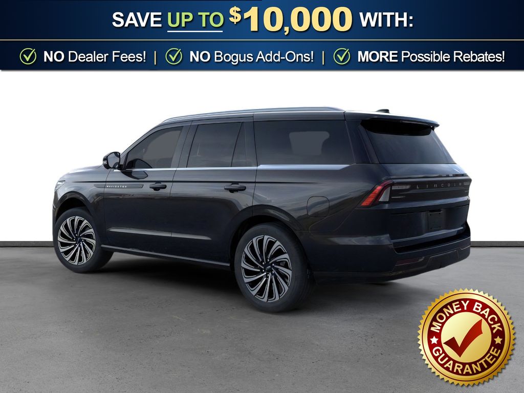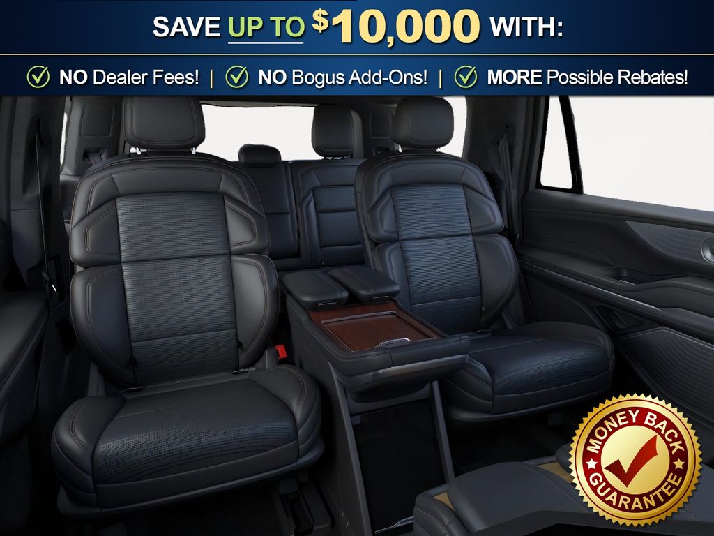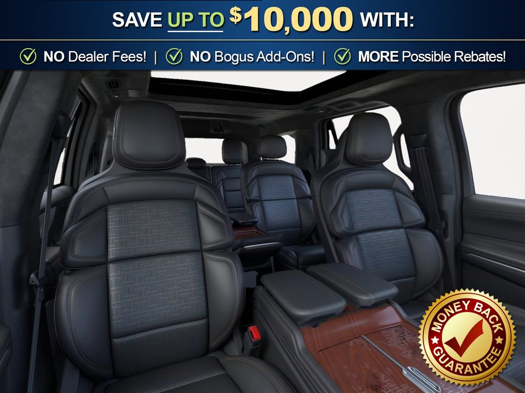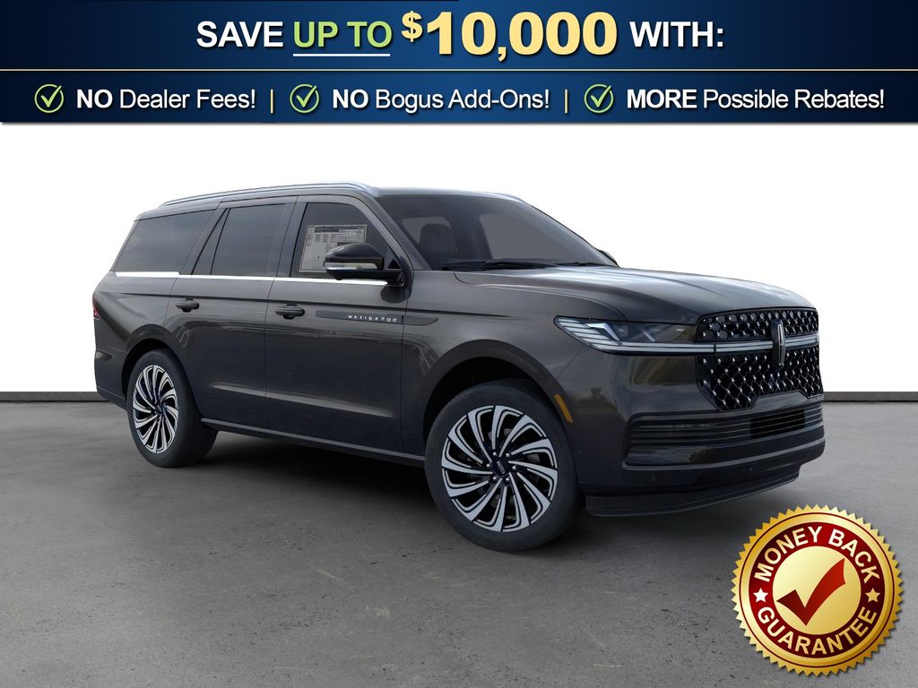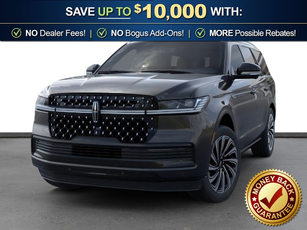 Infinite Black Metallic Clearcoat 2025 Lincoln Navigator Black Label NLT 4WD 10-Speed Automatic 3.5L V6 4WD, Blk Onyx W/Brandy Stitch Leather, 28 Speakers, 3rd row seats: split-bench, 4-Wheel Disc Brakes, A/V remote, ABS brakes, Adaptive suspension, Adjustable pedals, Air Conditioning, Alloy wheels, AM/FM radio: SiriusXM with 360L, Apple CarPlay/Android Auto, Audio memory, Auto High-beam Headlights, Auto Htd & Ventilated Opulence Lthr Capt Chair, Auto Start-Stop Technology, Auto tilt-away steering wheel, Auto-dimming door mirrors, Auto-dimming Rear-View mirror, Auto-leveling suspension, Automatic temperature control, Brake assist, Bumpers: body-color, Compass, Delay-off headlights, Driver door bin, Driver vanity mirror, Driver's Seat Mounted Armrest, Dual front impact airbags, Dual front side impact airbags, Electronic Stability Control, Emergency communication system: 911 Assist, Enlighten Theme, Equipment Group 800A Black Label, Exterior Parking Camera Rear, Four wheel independent suspension, Front anti-roll bar, Front Bucket Seats, Front dual zone A/C, Front reading lights, Fully automatic headlights, Garage door transmitter, Head restraints memory, Headphones, Heated door mirrors, Heated front seats, Heated rear seats, Heated steering wheel, HVAC memory, Illuminated entry, Leather steering wheel, Lincoln Connect, Lincoln Premium Connectivity, Low tire pressure warning, Memory seat, Navigation system: Connected Navigation (1-year trial), Occupant sensing airbag, Outside temperature display, Overhead airbag, Overhead console, Panic alarm, Passenger door bin, Passenger seat mounted armrest, Passenger vanity mirror, Pedal memory, Power adjustable front head restraints, Power adjustable rear head restraints, Power door mirrors, Power driver seat, Power moonroof: Panoramic Vista Roof, Power passenger seat, Power steering, Power windows, Radio data system, Radio: Revel Ultima 3D AM/FM/HD Audio System, Rain sensing wipers, Rear air conditioning, Rear anti-roll bar, Rear audio controls, Rear reading lights, Rear seat center armrest, Rear window defroster, Rear window wiper, Reclining 3rd row seat, Remote keyless entry, Security system, SiriusXM w/360L, Speed control, Speed-sensing steering, Speed-Sensitive Wipers, Split folding rear seat, Spoiler, Steering wheel memory, Steering wheel mounted audio controls, Tachometer, Telescoping steering wheel, Tilt steering wheel, Traction control, Trip computer, Turn signal indicator mirrors, Variably intermittent wipers, Ventilated front seats, Ventilated rear seats, Wheels: 22" High-Gloss Ebony Aluminum, 4WD, Blk Onyx W/Brandy Stitch Leather.