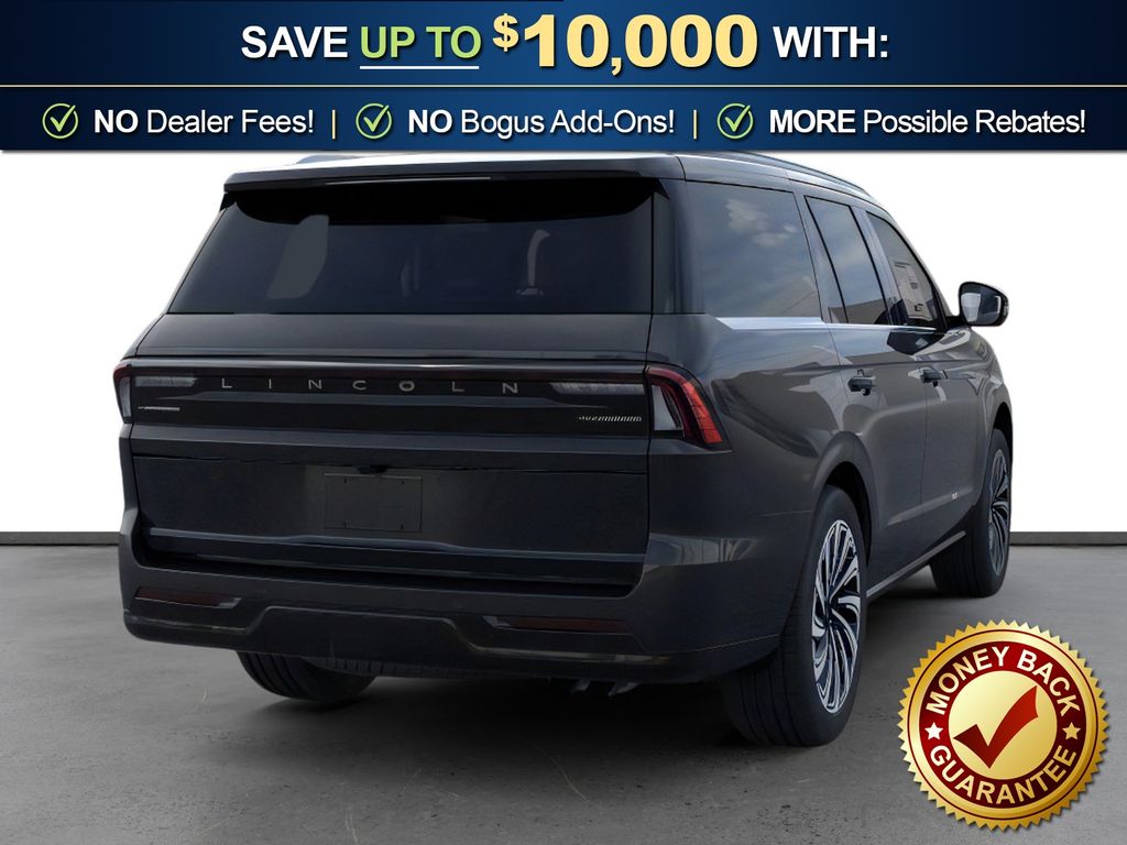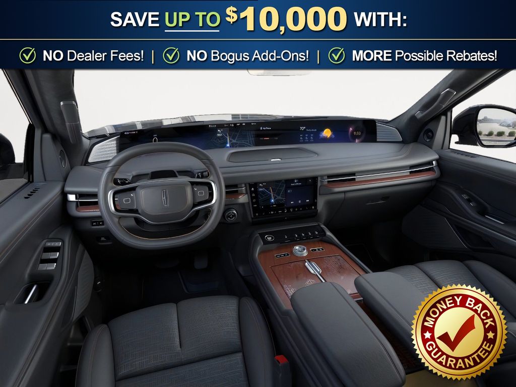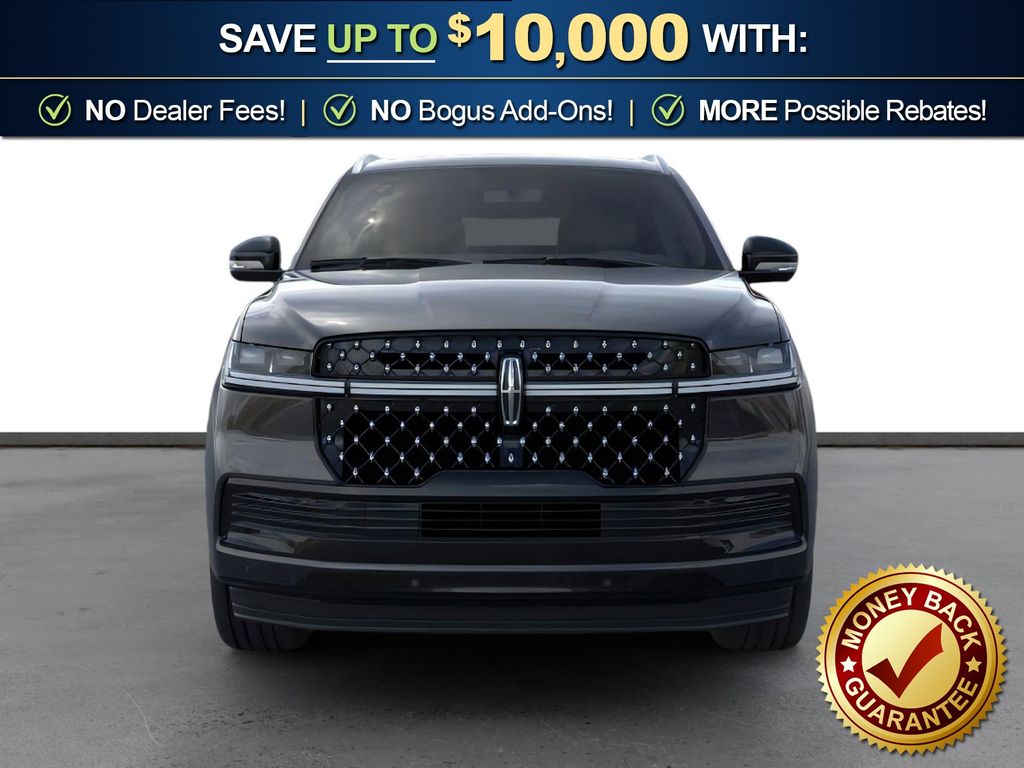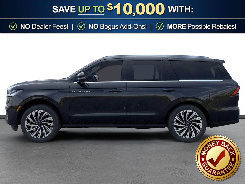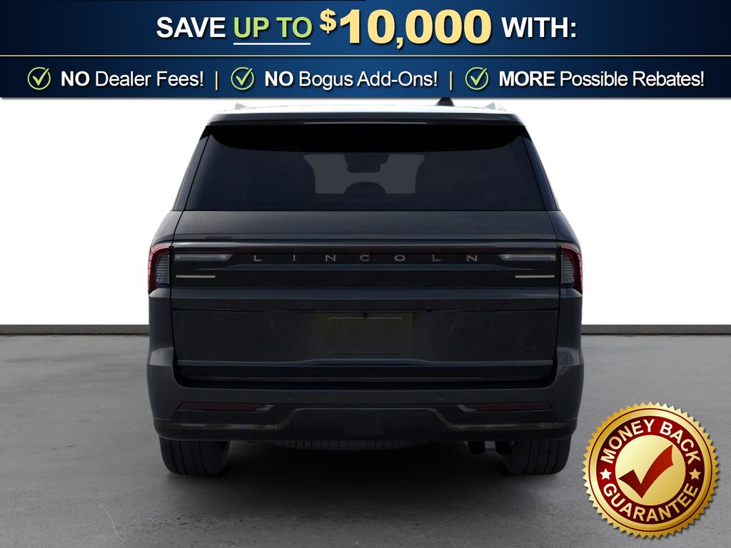 Infinite Black Metallic Clearcoat 2025 Lincoln Navigator Black Label NLT 4WD 10-Speed Automatic 3.5L V6 4WD, Blk Onyx W/Brandy Stitch Leather, 28 Speakers, 3rd row seats: split-bench, 4-Wheel Disc Brakes, A/V remote, ABS brakes, Adaptive suspension, Adjustable pedals, Air Conditioning, Alloy wheels, AM/FM radio: SiriusXM with 360L, Apple CarPlay/Android Auto, Audio memory, Auto High-beam Headlights, Auto Htd & Ventilated Opulence Lthr Capt Chair, Auto Start-Stop Technology, Auto tilt-away steering wheel, Auto-dimming door mirrors, Auto-dimming Rear-View mirror, Auto-leveling suspension, Automatic temperature control, Brake assist, Bumpers: body-color, Compass, Delay-off headlights, Driver door bin, Driver vanity mirror, Driver's Seat Mounted Armrest, Dual front impact airbags, Dual front side impact airbags, Electronic Stability Control, Emergency communication system: 911 Assist, Enlighten Theme, Equipment Group 800A Black Label, Exterior Parking Camera Rear, Four wheel independent suspension, Front anti-roll bar, Front Bucket Seats, Front dual zone A/C, Front reading lights, Fully automatic headlights, Garage door transmitter, Head restraints memory, Headphones, Heated door mirrors, Heated front seats, Heated rear seats, Heated steering wheel, HVAC memory, Illuminated entry, Leather steering wheel, Lincoln Connect, Lincoln Premium Connectivity, Low tire pressure warning, Memory seat, Navigation system: Connected Navigation (1-year trial), Occupant sensing airbag, Outside temperature display, Overhead airbag, Overhead console, Panic alarm, Passenger door bin, Passenger seat mounted armrest, Passenger vanity mirror, Pedal memory, Power adjustable front head restraints, Power adjustable rear head restraints, Power door mirrors, Power driver seat, Power moonroof: Panoramic Vista Roof, Power passenger seat, Power steering, Power windows, Radio data system, Radio: Revel Ultima 3D AM/FM/HD Audio System, Rain sensing wipers, Rear air conditioning, Rear anti-roll bar, Rear audio controls, Rear reading lights, Rear seat center armrest, Rear window defroster, Rear window wiper, Reclining 3rd row seat, Remote keyless entry, Security system, SiriusXM w/360L, Speed control, Speed-sensing steering, Speed-Sensitive Wipers, Split folding rear seat, Spoiler, Steering wheel memory, Steering wheel mounted audio controls, Tachometer, Telescoping steering wheel, Tilt steering wheel, Traction control, Trip computer, Turn signal indicator mirrors, Variably intermittent wipers, Ventilated front seats, Ventilated rear seats, Wheels: 22" High-Gloss Ebony Aluminum, 4WD, Blk Onyx W/Brandy Stitch Leather.