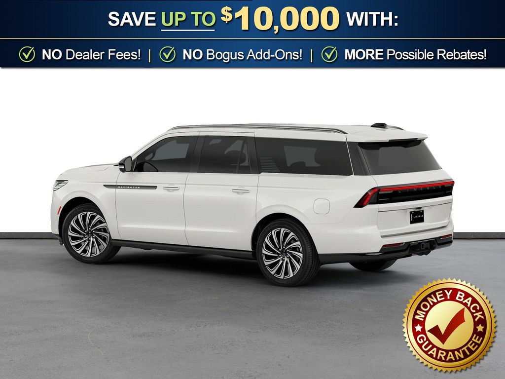 Star White Metallic Tri-Coat 2026 Lincoln Navigator L Black Label NFT 4WD 10-Speed Automatic 3.5L V6 28 Speakers, 3rd row seats: split-bench, 4-Wheel Disc Brakes, ABS brakes, Adaptive suspension, Adjustable pedals, Air Conditioning, Alloy wheels, AM/FM radio: SiriusXM with 360L, Apple CarPlay/Android Auto, Audio memory, Auto High-beam Headlights, Auto Start-Stop Technology, Auto tilt-away steering wheel, Auto-dimming door mirrors, Auto-dimming Rear-View mirror, Auto-leveling suspension, Automatic temperature control, BlueCruise Equipped (4-Years Included), Brake assist, Bumpers: body-color, Compass, Delay-off headlights, Driver door bin, Driver vanity mirror, Driver's Seat Mounted Armrest, Dual front impact airbags, Dual front side impact airbags, Electronic Stability Control, Emergency communication system: 911 Assist, Enlighten Theme, Exterior Parking Camera Rear, Four wheel independent suspension, Front anti-roll bar, Front Bucket Seats, Front dual zone A/C, Front reading lights, Fully automatic headlights, Garage door transmitter, Head restraints memory, Heated door mirrors, Heated front seats, Heated rear seats, Heated steering wheel, HVAC memory, Illuminated entry, Leather steering wheel, Lincoln App, Lincoln Connectivity Package (4-Years Included), Lincoln Digital Experience, Lincoln Security Package, Low tire pressure warning, Memory seat, Navigation system: Connected Navigation (1-year trial), Occupant sensing airbag, Outside temperature display, Overhead airbag, Overhead console, Panic alarm, Passenger door bin, Passenger seat mounted armrest, Passenger vanity mirror, Pedal memory, Power adjustable front head restraints, Power adjustable rear head restraints, Power door mirrors, Power driver seat, Power moonroof: Panoramic Vista Roof, Power passenger seat, Power steering, Power windows, Radio data system, Radio: Revel Ultima 3D Audio System, Rain sensing wipers, Rear air conditioning, Rear anti-roll bar, Rear audio controls, Rear reading lights, Rear seat center armrest, Rear window defroster, Rear window wiper, Reclining 3rd row seat, Remote keyless entry, Security system, SiriusXM with 360L (3 Months Trial), Speed control, Speed-sensing steering, Speed-Sensitive Wipers, Split folding rear seat, Spoiler, Steering wheel memory, Steering wheel mounted audio controls, Tachometer, Telescoping steering wheel, Tilt steering wheel, Traction control, Trip computer, Turn signal indicator mirrors, Variably intermittent wipers, Ventilated front seats, Ventilated rear seats, Wheels: 22" High-Gloss Ebony Aluminum.