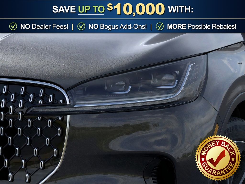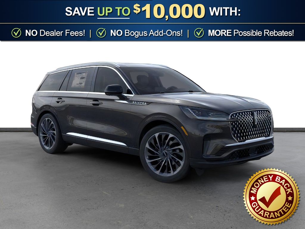 Infinite Black Metallic Clearcoat 2025 Lincoln Aviator Reserve fctp RWD 10-Speed Automatic 3.0L V6 14 Speakers, 3rd row seats: split-bench, 4-Wheel Disc Brakes, 40/Mini Console/40 Dual Captain's Chairs, ABS brakes, Adaptive Dynamic Bending Lighting, Adaptive Pixel LED Headlamps, Adaptive suspension, Advanced Heads-Up Display, Air Conditioning, Alloy wheels, AM/FM radio: SiriusXM, Apple CarPlay/Android Auto, Audio memory, Auto Air Refresh, Auto High-beam Headlights, Auto-dimming door mirrors, Auto-dimming Rear-View mirror, Automatic temperature control, Brake assist, Bumpers: body-color, Compass, Delay-off headlights, Driver door bin, Driver vanity mirror, Dual front impact airbags, Dual front side impact airbags, Electronic Stability Control, Emergency communication system: 911 Assist, Equipment Group 200A, Four wheel independent suspension, Front anti-roll bar, Front Bucket Seats, Front Center Armrest, Front dual zone A/C, Front reading lights, Full Rear Console, Fully automatic headlights, Garage door transmitter, Genuine wood console insert, Genuine wood dashboard insert, Heads-Up Display, Heated door mirrors, Heated front seats, Heated steering wheel, HVAC memory, Illuminated entry, Illuminated Lincoln Star in Grille, Illumination Package, Knee airbag, Leather steering wheel, Lincoln BlueCruise Equipped (4-Years Included), Lincoln Digital Experience, Lincoln Dynamic Signature Lighting, Low tire pressure warning, Memory seat, Navigation system: Connected Navigation (1-year trial), Occupant sensing airbag, Outside temperature display, Overhead airbag, Overhead console, Panic alarm, Passenger door bin, Passenger vanity mirror, Power door mirrors, Power driver seat, Power Liftgate, Power moonroof: Panoramic Vista Roof, Power passenger seat, Power steering, Power windows, Premium Lthr Heated/Ventilated Fnt Captain's Chairs, Radio data system, Radio: Revel Audio System w/14 Speakers, Rain sensing wipers, Rear air conditioning, Rear anti-roll bar, Rear audio controls, Rear dual zone A/C, Rear reading lights, Rear window defroster, Rear window wiper, Remote keyless entry, Security system, SiriusXM, Speed control, Speed Dependent Lighting, Speed-Sensitive Wipers, Split folding rear seat, Spoiler, Steering wheel memory, Steering wheel mounted A/C controls, Steering wheel mounted audio controls, Tachometer, Telescoping steering wheel, Tilt steering wheel, Traction control, Trip computer, Turn signal indicator mirrors, Variably intermittent wipers, Ventilated front seats, Wheels: 21" Bright-Machined Aluminum, Wheels: 22" Bright-Machined Aluminum, Wireless Charging Pad. Price includes: $1000 - Bonus Cash. Exp. 03/31/2026 $5000 - Retail Customer Cash. Exp. 03/31/2026