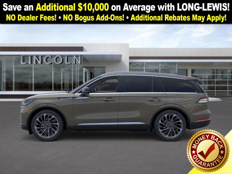 Harbor Gray Clearcoat 2025 Lincoln Aviator Reserve fctp AWD 10-Speed Automatic 3.0L V6 14 Speakers, 3rd row seats: split-bench, 4-Wheel Disc Brakes, 40/Mini Console/40 Dual Captain's Chairs, ABS brakes, Adaptive suspension, Air Conditioning, Air Glide Suspension w/Dynamic Lower Entry, Alloy wheels, AM/FM radio: SiriusXM, Apple CarPlay/Android Auto, Audio memory, Auto High-beam Headlights, Auto-dimming door mirrors, Auto-dimming Rear-View mirror, Automatic temperature control, Brake assist, Bumpers: body-color, Compass, Delay-off headlights, Driver door bin, Driver vanity mirror, Dual front impact airbags, Dual front side impact airbags, Dynamic Handling Package, Electronic Stability Control, Four wheel independent suspension, Front anti-roll bar, Front Bucket Seats, Front Center Armrest, Front dual zone A/C, Front reading lights, Fully automatic headlights, Garage door transmitter, Heads-Up Display, Heated door mirrors, Heated front seats, Heated steering wheel, HVAC memory, Illuminated entry, Knee airbag, Leather steering wheel, Lincoln BlueCruise Equipped (4-Years Included), Lincoln Digital Experience, Low tire pressure warning, Memory seat, Navigation system: Connected Navigation (1-year trial), Occupant sensing airbag, Outside temperature display, Overhead airbag, Overhead console, Panic alarm, Passenger door bin, Passenger vanity mirror, Power door mirrors, Power driver seat, Power Liftgate, Power moonroof: Panoramic Vista Roof, Power passenger seat, Power steering, Power windows, Premium Lthr Heated/Ventilated Fnt Captain's Chairs, Radio data system, Radio: Revel Audio System w/14 Speakers, Rain sensing wipers, Rear air conditioning, Rear anti-roll bar, Rear audio controls, Rear dual zone A/C, Rear reading lights, Rear window defroster, Rear window wiper, Remote keyless entry, Security system, SiriusXM, Speed control, Speed-Sensitive Wipers, Split folding rear seat, Spoiler, Steering wheel memory, Steering wheel mounted A/C controls, Steering wheel mounted audio controls, Tachometer, Telescoping steering wheel, Tilt steering wheel, Traction control, Trip computer, Turn signal indicator mirrors, Variably intermittent wipers, Ventilated front seats, Wheels: 21" Bright-Machined Aluminum. $2,000 - Exp. 12/31/2026
