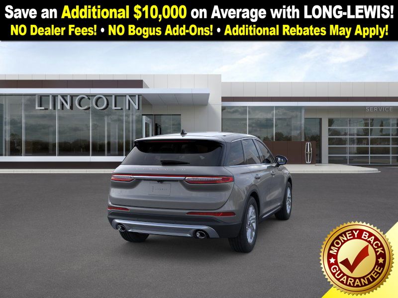 Asher Gray Metallic Clearcoat 2025 Lincoln Corsair Premiere fctp FWD 8-Speed Automatic 2.0L I4 4-Wheel Disc Brakes, 9 Speakers, ABS brakes, Air Conditioning, Alexa Built-In, Alloy wheels, AM/FM radio: SiriusXM with 360L, Apple CarPlay/Android Auto, Auto High-beam Headlights, Auto-dimming Rear-View mirror, Automatic temperature control, Brake assist, Bumpers: body-color, Compass, Delay-off headlights, Driver door bin, Driver vanity mirror, Dual front impact airbags, Dual front side impact airbags, Electronic Stability Control, Emergency communication system: 911 Assist, Four wheel independent suspension, Front anti-roll bar, Front Bucket Seats, Front Center Armrest, Front dual zone A/C, Front reading lights, Fully automatic headlights, Heated door mirrors, Heated front seats, Illuminated entry, Knee airbag, Leather steering wheel, Lincoln Soft Touch Heated Front Captain's Chairs, Low tire pressure warning, Memory seat, Navigation system: Connected Navigation (4-year trial), Occupant sensing airbag, Outside temperature display, Overhead airbag, Overhead console, Panic alarm, Passenger door bin, Passenger vanity mirror, Power door mirrors, Power driver seat, Power Liftgate, Power passenger seat, Power steering, Power windows, Radio data system, Radio: Lincoln Premium Audio System w/MP3, Rear anti-roll bar, Rear Parking Sensors, Rear reading lights, Rear seat center armrest, Rear window defroster, Rear window wiper, Remote keyless entry, Security system, SiriusXM w/360L Radio, Speed control, Speed-sensing steering, Speed-Sensitive Wipers, Split folding rear seat, Spoiler, Steering wheel mounted A/C controls, Steering wheel mounted audio controls, SYNC 4 Communications & Entertainment System, Tachometer, Telescoping steering wheel, Tilt steering wheel, Traction control, Trip computer, Variably intermittent wipers, Wheels: 18" Warm Painted Alloy.