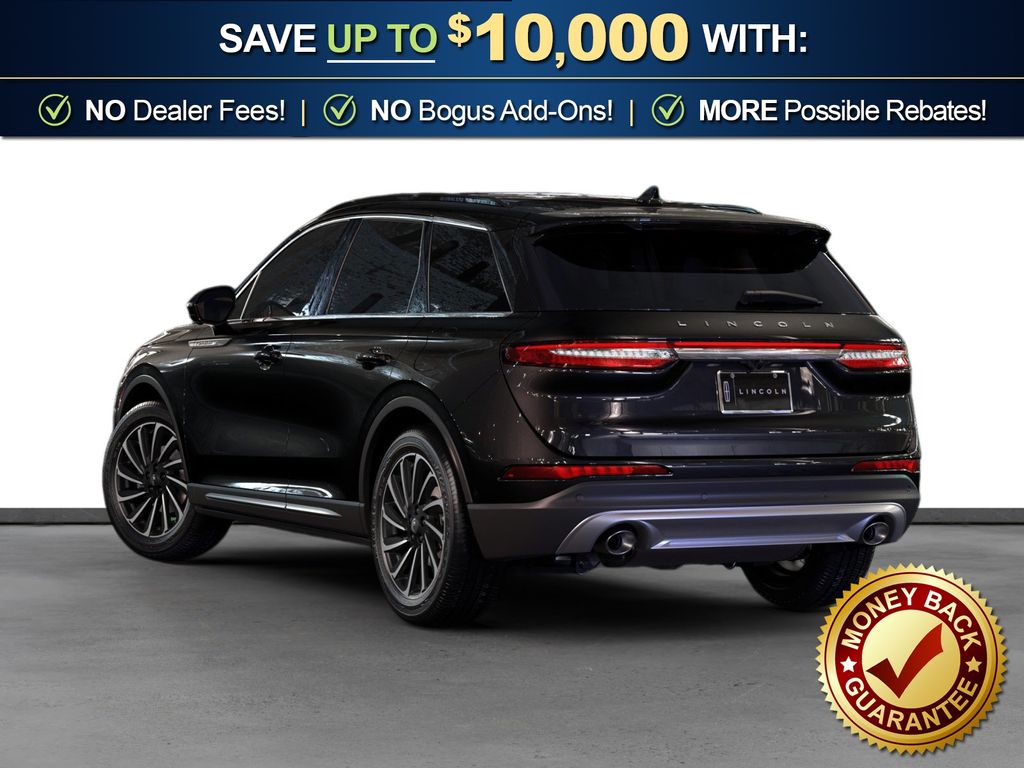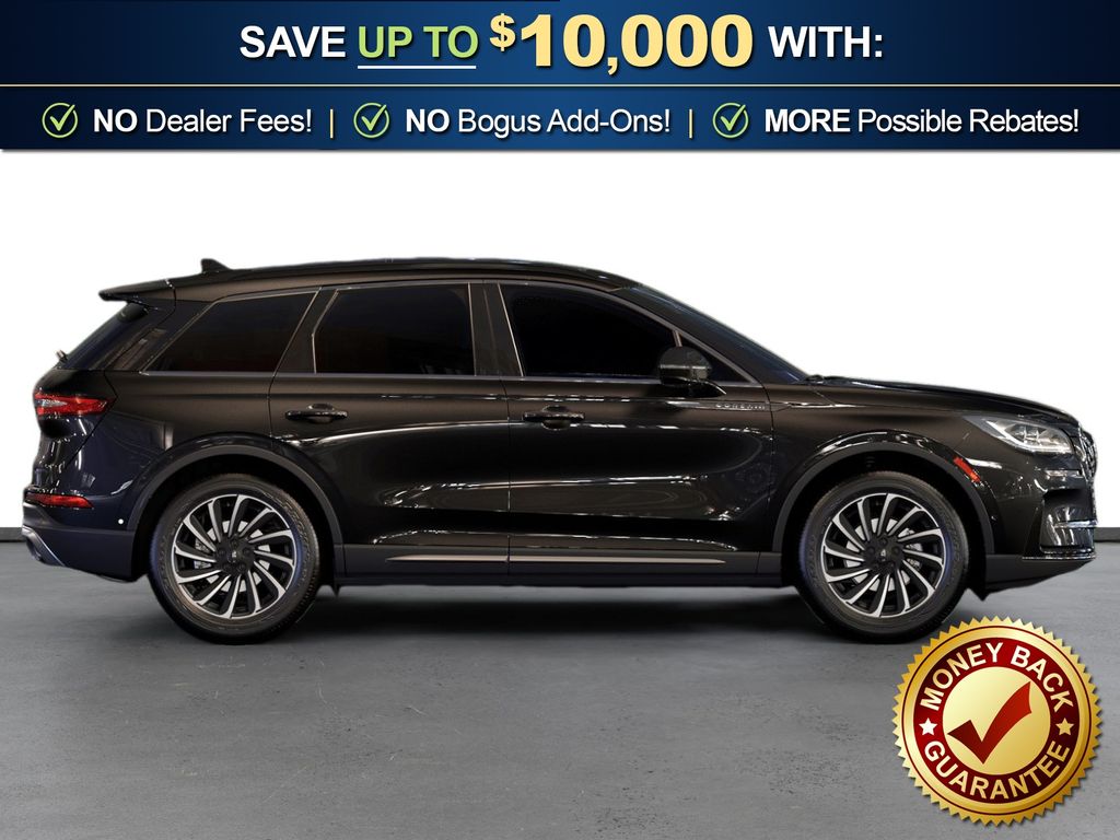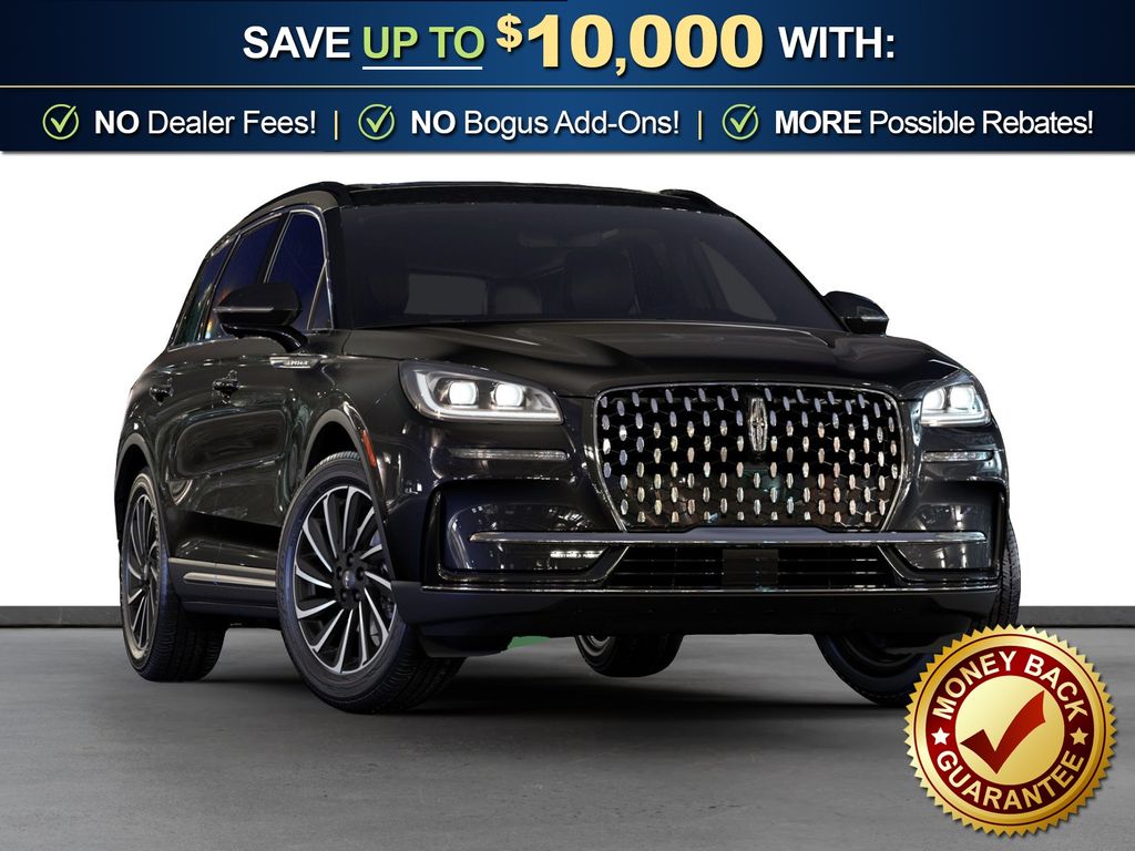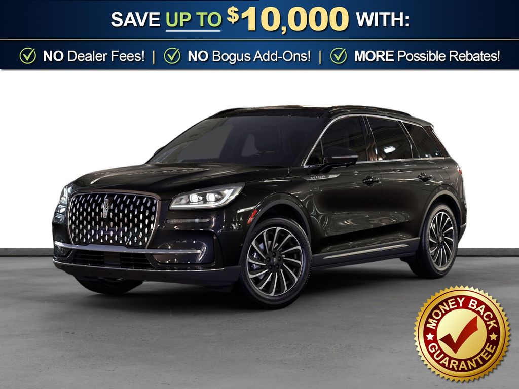 Infinite Black Metallic Clearcoat 2025 Lincoln Corsair Reserve NLT FWD 8-Speed Automatic 2.0L I4 19" Bright Machined Aluminum Wheels, 2 Additional USB Ports in Rear of Center Console, 4-Wheel Disc Brakes, 60/40 EasyFold Rear Seat w/Power Seatback Release, 9 Speakers, ABS brakes, Air Conditioning, Alexa Built-In, Alloy wheels, AM/FM radio: SiriusXM with 360L, Apple CarPlay/Android Auto, Auto Air Refresh (Ultra Fresh Cabin), Auto High-beam Headlights, Auto-dimming Rear-View mirror, Automatic temperature control, Black Roof Rack Side Rails, Brake assist, Bumpers: body-color, Compass, Delay-off headlights, Driver door bin, Driver State Detection, Driver vanity mirror, Dual front impact airbags, Dual front side impact airbags, Electronic Stability Control, Emergency communication system: 911 Assist, Equipment Group 202A, Four wheel independent suspension, Frameless Auto Dimming Rearview Mirror, Front anti-roll bar, Front Bucket Seats, Front Center Armrest, Front dual zone A/C, Front reading lights, Fully automatic headlights, Hands-Free Liftgate, Head-Up Display, Heated door mirrors, Heated front seats, Heated Rear Seat, Heated Sideview Mirrors, Heated Steering Wheel, Heated/Ventilated Driver & Front Passenger Seats, Illuminated entry, Knee airbag, Leather steering wheel, Lincoln BlueCruise (4 Years Included), Low tire pressure warning, Memory seat, Navigation system: Connected Navigation (4-year trial), Occupant sensing airbag, Outside temperature display, Overhead airbag, Overhead console, Panic alarm, Panoramic Vista Roof w/Power Shade, Passenger door bin, Passenger vanity mirror, Phone As A Key (PAAK), Power door mirrors, Power driver seat, Power Liftgate, Power passenger seat, Power steering, Power Tilt/Telescoping Steering Column w/Memory, Power windows, Premium Leather-Trimmed Heated Captain's Chairs, Radio data system, Radio: Lincoln Premium Audio System w/MP3, Radio: Revel Audio System w/HD Radio & MP3, Rain Sensing Wipers, Rear anti-roll bar, Rear Parking Sensors, Rear reading lights, Rear seat center armrest, Rear window defroster, Rear window wiper, Remote keyless entry, Security system, SiriusXM w/360L Radio, Speed control, Speed-sensing steering, Speed-Sensitive Wipers, Split folding rear seat, Spoiler, Steering wheel mounted A/C controls, Steering wheel mounted audio controls, SYNC 4 Communications & Entertainment System, Tachometer, Telescoping steering wheel, Tilt steering wheel, Traction control, Trip computer, Universal Garage Door Opener, Variably intermittent wipers, Windshield Wiper De-Icer, Wireless Charging Pad.