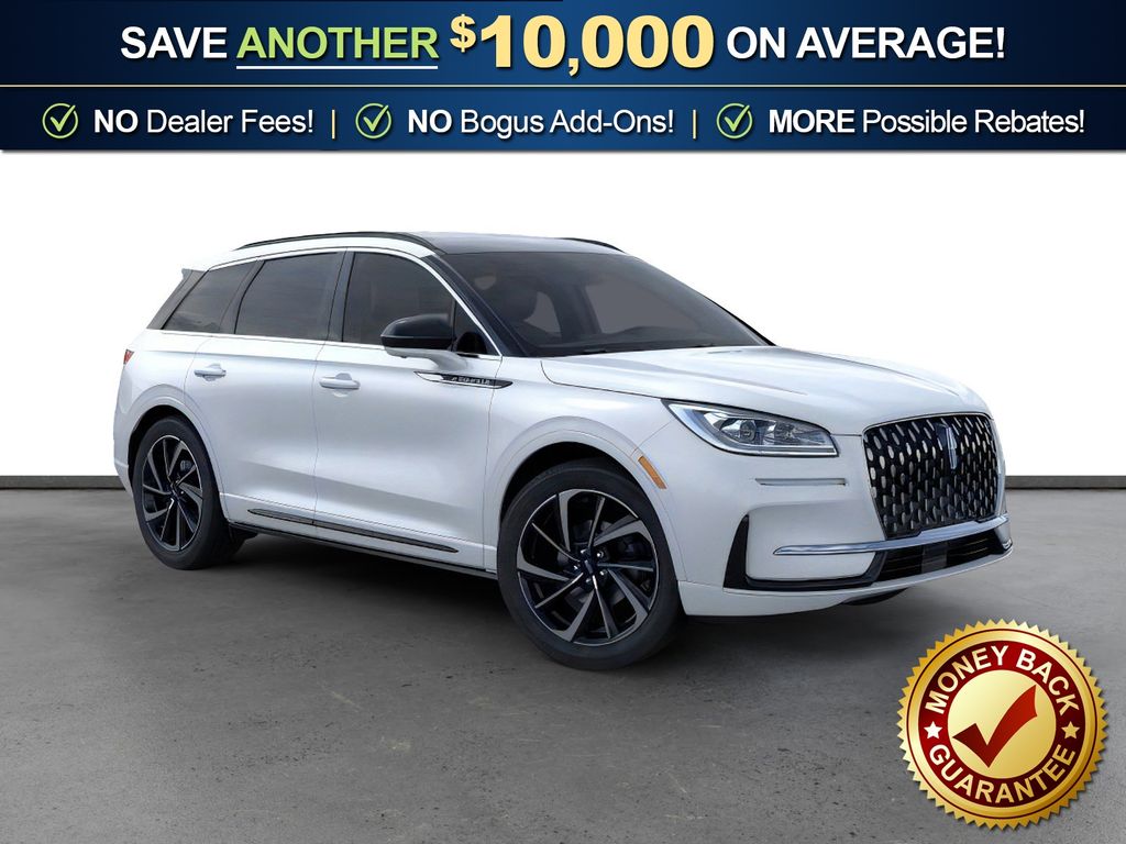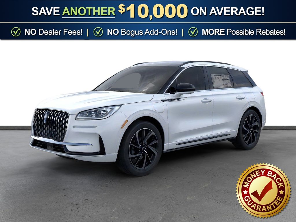 Crystal White Metallic Clearcoat 2025 Lincoln Corsair Plug-In Hybrid Grand Touring fctp AWD eCVT 2.5L i-VCT 2.5L i-VCT, 19" Bright Machined Aluminum Wheels, 2 Additional USB Ports in Rear of Center Console, 360-Degree Camera, 4-Wheel Disc Brakes, 60/40 EasyFold Rear Seat w/Power Seatback Release, 9 Speakers, ABS brakes, Adaptive suspension, Air Conditioning, Alexa Built-In, Alloy wheels, AM/FM radio: SiriusXM with 360L, Apple CarPlay/Android Auto, Auto High-beam Headlights, Auto-dimming Rear-View mirror, Automatic temperature control, Brake assist, Bumpers: body-color, Compass, Delay-off headlights, Driver door bin, Driver vanity mirror, Dual front impact airbags, Dual front side impact airbags, Electronic Stability Control, Emergency communication system: 911 Assist, Equipment Group 301A, Four wheel independent suspension, Frameless Auto Dimming Rearview Mirror, Front anti-roll bar, Front Bucket Seats, Front Center Armrest, Front dual zone A/C, Front Parking Sensors, Front reading lights, Fully automatic headlights, Hands-Free Liftgate, Heated door mirrors, Heated front seats, Heated Sideview Mirrors, Heated Steering Wheel, Heated/Ventilated Driver & Front Passenger Seats, Illuminated entry, Knee airbag, Leather steering wheel, Low tire pressure warning, Memory seat, Navigation system: Connected Navigation (4-year trial), Occupant sensing airbag, Outside temperature display, Overhead airbag, Overhead console, Panic alarm, Passenger door bin, Passenger vanity mirror, Phone As A Key (PAAK), Post-Collision Braking, Power door mirrors, Power driver seat, Power Liftgate, Power moonroof: Panoramic Vista Roof, Power passenger seat, Power steering, Power Tilt/Telescoping Steering Column w/Memory, Power windows, Premium Leather-Trimmed Heated Captain's Chairs, Radio data system, Radio: Lincoln Premium Audio System w/MP3, Rain Sensing Wipers, Rear anti-roll bar, Rear Parking Sensors, Rear reading lights, Rear seat center armrest, Rear window defroster, Rear window wiper, Remote keyless entry, Reverse Brake Assist, Security system, SiriusXM w/360L Radio, Speed control, Speed-sensing steering, Speed-Sensitive Wipers, Split folding rear seat, Spoiler, Steering wheel mounted A/C controls, Steering wheel mounted audio controls, SYNC 4 Communications & Entertainment System, Tachometer, Telescoping steering wheel, Tilt steering wheel, Traction control, Trip computer, Universal Garage Door Opener, Variably intermittent wipers, Wheels: 20" Bright Machined Aluminum, Windshield Wiper De-Icer, Wireless Charging Pad, 2.5L i-VCT. Price includes: $1000 - Bonus Cash. Exp. 03/31/2026 $6000 - Retail Customer Cash. Exp. 03/31/2026