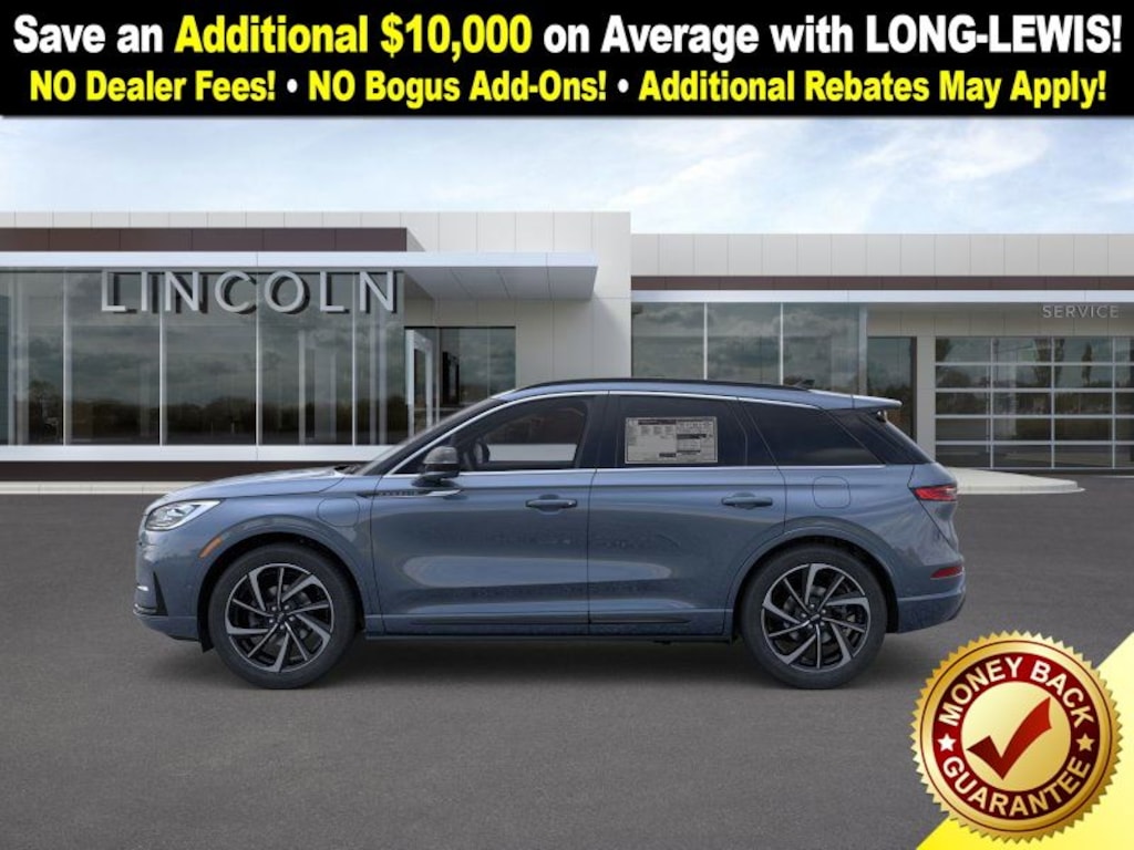 Whisper Blue Metallic Clearcoat 2025 Lincoln Corsair Plug-In Hybrid Grand Touring NLT AWD eCVT 2.5L i-VCT 2.5L i-VCT, 19" Bright Machined Aluminum Wheels, 2 Additional USB Ports in Rear of Center Console, 4-Wheel Disc Brakes, 60/40 EasyFold Rear Seat w/Power Seatback Release, 9 Speakers, ABS brakes, Adaptive suspension, Air Conditioning, Alexa Built-In, Alloy wheels, AM/FM radio: SiriusXM with 360L, Apple CarPlay/Android Auto, Auto Air Refresh (Ultra Fresh Cabin), Auto High-beam Headlights, Auto-dimming Rear-View mirror, Automatic temperature control, Brake assist, Bumpers: body-color, Compass, Delay-off headlights, Driver door bin, Driver State Detection, Driver vanity mirror, Dual front impact airbags, Dual front side impact airbags, Electronic Stability Control, Emergency communication system: 911 Assist, Equipment Group 302A, Four wheel independent suspension, Frameless Auto Dimming Rearview Mirror, Front anti-roll bar, Front Bucket Seats, Front Center Armrest, Front dual zone A/C, Front reading lights, Fully automatic headlights, Hands-Free Liftgate, Head-Up Display, Heated door mirrors, Heated front seats, Heated Rear Seat, Heated Sideview Mirrors, Heated Steering Wheel, Heated/Ventilated Driver & Front Passenger Seats, Illuminated entry, Knee airbag, Leather steering wheel, Lincoln BlueCruise (4 Years Included), Low tire pressure warning, Memory seat, Navigation system: Connected Navigation (4-year trial), Occupant sensing airbag, Outside temperature display, Overhead airbag, Overhead console, Panic alarm, Passenger door bin, Passenger vanity mirror, Phone As A Key (PAAK), Power door mirrors, Power driver seat, Power Liftgate, Power moonroof: Panoramic Vista Roof, Power passenger seat, Power steering, Power Tilt/Telescoping Steering Column w/Memory, Power windows, Premium Leather-Trimmed Heated Captain's Chairs, Radio data system, Radio: Lincoln Premium Audio System w/MP3, Radio: Revel Audio System w/HD Radio & MP3, Rain Sensing Wipers, Rear anti-roll bar, Rear Parking Sensors, Rear reading lights, Rear seat center armrest, Rear window defroster, Rear window wiper, Remote keyless entry, Security system, SiriusXM w/360L Radio, Speed control, Speed-sensing steering, Speed-Sensitive Wipers, Split folding rear seat, Spoiler, Steering wheel mounted A/C controls, Steering wheel mounted audio controls, SYNC 4 Communications & Entertainment System, Tachometer, Telescoping steering wheel, Tilt steering wheel, Traction control, Trip computer, Universal Garage Door Opener, Variably intermittent wipers, Wheels: 20" Bright Machined Aluminum, Windshield Wiper De-Icer, Wireless Charging Pad, 2.5L i-VCT. Price includes: $1000 - Wishlist Bonus Cash. Exp. 01/05/2026 $3000 - Retail Customer Cash. Exp. 01/05/2026