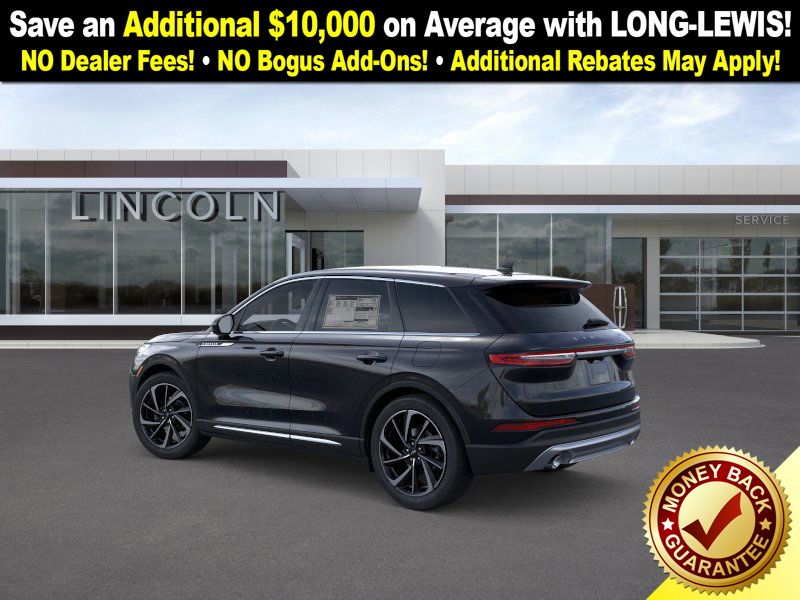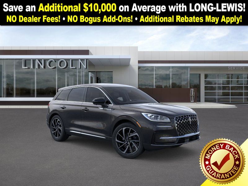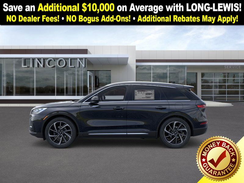 Infinite Black Metallic Clearcoat 2025 Lincoln Corsair Reserve fctp FWD 8-Speed Automatic 2.0L I4 19" Bright Machined Aluminum Wheels, 2 Additional USB Ports in Rear of Center Console, 360-Degree Camera, 4-Wheel Disc Brakes, 60/40 EasyFold Rear Seat w/Power Seatback Release, 9 Speakers, ABS brakes, Air Conditioning, Alexa Built-In, Alloy wheels, AM/FM radio: SiriusXM with 360L, Apple CarPlay/Android Auto, Auto High-beam Headlights, Auto-dimming Rear-View mirror, Automatic temperature control, Brake assist, Bumpers: body-color, Compass, Delay-off headlights, Driver door bin, Driver vanity mirror, Dual front impact airbags, Dual front side impact airbags, Electronic Stability Control, Emergency communication system: 911 Assist, Equipment Group 201A, Four wheel independent suspension, Frameless Auto Dimming Rearview Mirror, Front anti-roll bar, Front Bucket Seats, Front Center Armrest, Front dual zone A/C, Front Parking Sensors, Front reading lights, Fully automatic headlights, Hands-Free Liftgate, Heated door mirrors, Heated front seats, Heated Sideview Mirrors, Heated Steering Wheel, Heated/Ventilated Driver & Front Passenger Seats, Illuminated entry, Knee airbag, Leather steering wheel, Low tire pressure warning, Memory seat, Navigation system: Connected Navigation (4-year trial), Occupant sensing airbag, Outside temperature display, Overhead airbag, Overhead console, Panic alarm, Passenger door bin, Passenger vanity mirror, Phone As A Key (PAAK), Post-Collision Braking, Power door mirrors, Power driver seat, Power Liftgate, Power passenger seat, Power steering, Power Tilt/Telescoping Steering Column w/Memory, Power windows, Premium Leather-Trimmed Heated Captain's Chairs, Radio data system, Radio: Lincoln Premium Audio System w/MP3, Rain Sensing Wipers, Rear anti-roll bar, Rear Parking Sensors, Rear reading lights, Rear seat center armrest, Rear window defroster, Rear window wiper, Remote keyless entry, Reverse Brake Assist, Security system, SiriusXM w/360L Radio, Speed control, Speed-sensing steering, Speed-Sensitive Wipers, Split folding rear seat, Spoiler, Steering wheel mounted A/C controls, Steering wheel mounted audio controls, SYNC 4 Communications & Entertainment System, Tachometer, Telescoping steering wheel, Tilt steering wheel, Traction control, Trip computer, Universal Garage Door Opener, Variably intermittent wipers, Wheels: 20" Bright Machined Aluminum, Windshield Wiper De-Icer, Wireless Charging Pad.