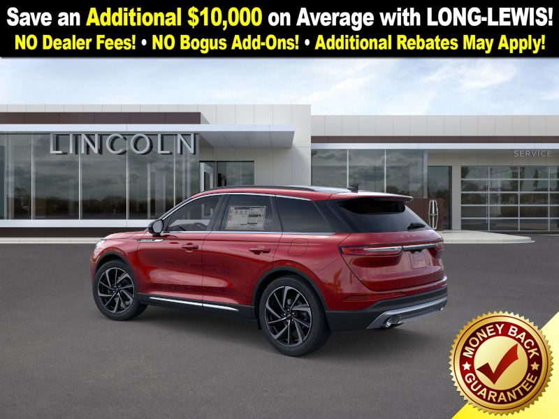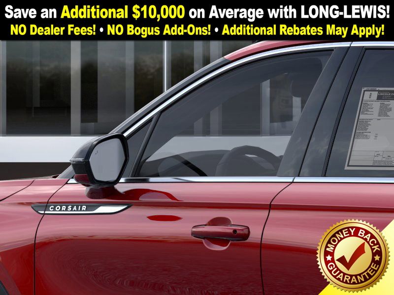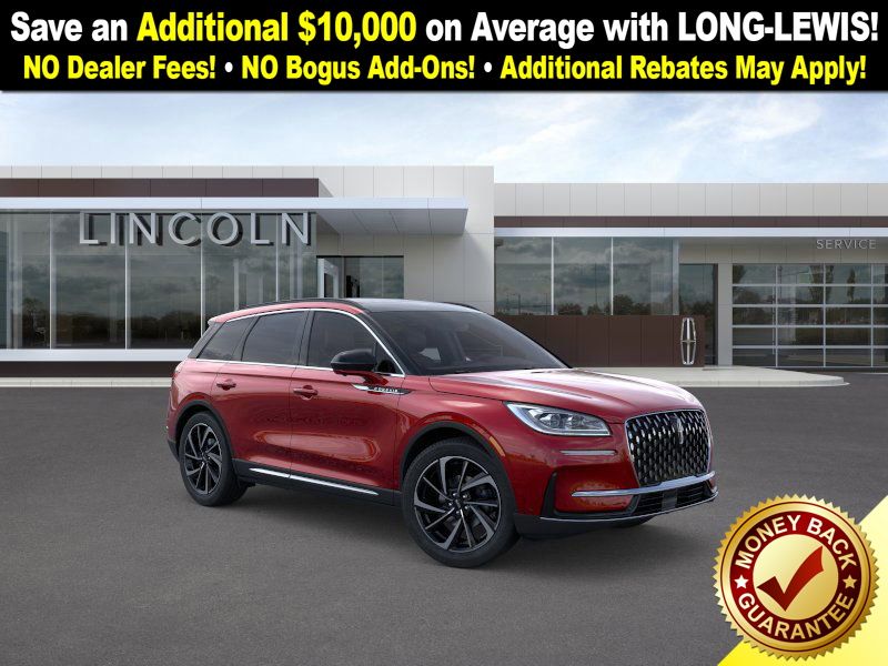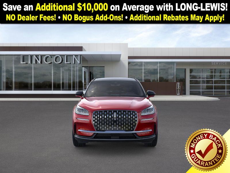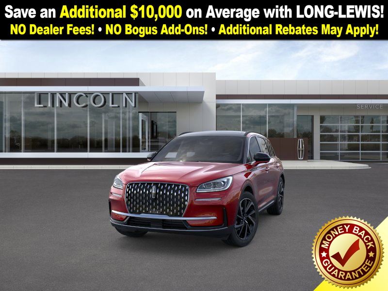 Red Carpet Metallic Tinted Clearcoat 2025 Lincoln Corsair Reserve fctp FWD 8-Speed Automatic 2.0L I4 19" Bright Machined Aluminum Wheels, 2 Additional USB Ports in Rear of Center Console, 360-Degree Camera, 4-Wheel Disc Brakes, 60/40 EasyFold Rear Seat w/Power Seatback Release, 9 Speakers, ABS brakes, Air Conditioning, Alexa Built-In, Alloy wheels, AM/FM radio: SiriusXM with 360L, Apple CarPlay/Android Auto, Auto High-beam Headlights, Auto-dimming Rear-View mirror, Automatic temperature control, Black Roof Rack Side Rails, Brake assist, Bumpers: body-color, Compass, Delay-off headlights, Driver door bin, Driver vanity mirror, Dual front impact airbags, Dual front side impact airbags, Electronic Stability Control, Emergency communication system: 911 Assist, Equipment Group 201A, Four wheel independent suspension, Frameless Auto Dimming Rearview Mirror, Front anti-roll bar, Front Bucket Seats, Front Center Armrest, Front dual zone A/C, Front Parking Sensors, Front reading lights, Fully automatic headlights, Hands-Free Liftgate, Heated door mirrors, Heated front seats, Heated Sideview Mirrors, Heated Steering Wheel, Heated/Ventilated Driver & Front Passenger Seats, Illuminated entry, Knee airbag, Leather steering wheel, Low tire pressure warning, Memory seat, Navigation system: Connected Navigation (4-year trial), Occupant sensing airbag, Outside temperature display, Overhead airbag, Overhead console, Panic alarm, Panoramic Vista Roof w/Power Shade, Passenger door bin, Passenger vanity mirror, Phone As A Key (PAAK), Post-Collision Braking, Power door mirrors, Power driver seat, Power Liftgate, Power passenger seat, Power steering, Power Tilt/Telescoping Steering Column w/Memory, Power windows, Premium Leather-Trimmed Heated Captain's Chairs, Radio data system, Radio: Lincoln Premium Audio System w/MP3, Rain Sensing Wipers, Rear anti-roll bar, Rear Parking Sensors, Rear reading lights, Rear seat center armrest, Rear window defroster, Rear window wiper, Remote keyless entry, Reverse Brake Assist, Security system, SiriusXM w/360L Radio, Speed control, Speed-sensing steering, Speed-Sensitive Wipers, Split folding rear seat, Spoiler, Steering wheel mounted A/C controls, Steering wheel mounted audio controls, SYNC 4 Communications & Entertainment System, Tachometer, Telescoping steering wheel, Tilt steering wheel, Traction control, Trip computer, Universal Garage Door Opener, Variably intermittent wipers, Wheels: 20" Bright Machined Aluminum, Windshield Wiper De-Icer, Wireless Charging Pad.