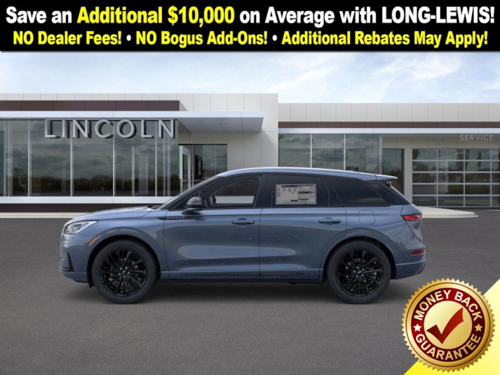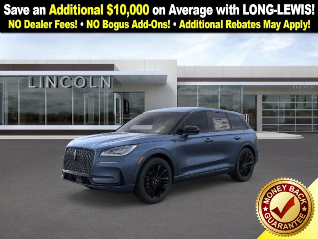 Whisper Blue Metallic Clearcoat 2025 Lincoln Corsair Premiere fctp FWD 8-Speed Automatic 2.0L I4 18" Bright Machined Aluminum Wheels, 2 Additional USB Ports in Rear of Center Console, 360-Degree Camera, 4-Wheel Disc Brakes, 60/40 EasyFold Rear Seat w/Power Seatback Release, 9 Speakers, ABS brakes, Air Conditioning, Alexa Built-In, Alloy wheels, AM/FM radio: SiriusXM with 360L, Apple CarPlay/Android Auto, Auto High-beam Headlights, Auto-dimming Rear-View mirror, Automatic temperature control, Body-Color Exterior Elements, Brake assist, Bumpers: body-color, Compass, Delay-off headlights, Driver door bin, Driver vanity mirror, Dual front impact airbags, Dual front side impact airbags, Electronic Stability Control, Emergency communication system: 911 Assist, Equipment Group 101A, Four wheel independent suspension, Frameless Auto Dimming Rearview Mirror, Front anti-roll bar, Front Bucket Seats, Front Center Armrest, Front dual zone A/C, Front Parking Sensors, Front reading lights, Fully automatic headlights, Hands-Free Liftgate, Heated door mirrors, Heated front seats, Heated Sideview Mirrors, Heated Steering Wheel, Heated/Ventilated Driver & Front Passenger Seats, Illuminated entry, Jet Appearance Package, Knee airbag, Leather steering wheel, Lincoln Soft Touch Heated Front Captain's Chairs, Low tire pressure warning, Memory seat, Micro-Perf Lincoln Soft Touch Captain's Chairs, Navigation system: Connected Navigation (4-year trial), Occupant sensing airbag, Outside temperature display, Overhead airbag, Overhead console, Panic alarm, Passenger door bin, Passenger vanity mirror, Phone As A Key (PAAK), Pillar Black Exterior Elements, Post-Collision Braking, Power door mirrors, Power driver seat, Power Liftgate, Power passenger seat, Power steering, Power Tilt/Telescoping Steering Column w/Memory, Power windows, Radio data system, Radio: Lincoln Premium Audio System w/MP3, Rain Sensing Wipers, Rear anti-roll bar, Rear Parking Sensors, Rear reading lights, Rear seat center armrest, Rear window defroster, Rear window wiper, Remote keyless entry, Reverse Brake Assist, Security system, SiriusXM w/360L Radio, Speed control, Speed-sensing steering, Speed-Sensitive Wipers, Split folding rear seat, Spoiler, Steering wheel mounted A/C controls, Steering wheel mounted audio controls, SYNC 4 Communications & Entertainment System, Tachometer, Telescoping steering wheel, Tilt steering wheel, Traction control, Trip computer, Universal Garage Door Opener, Variably intermittent wipers, Wheels: 18" Warm Painted Alloy, Wheels: 20" Black Aluminum, Windshield Wiper De-Icer, Wireless Charging Pad.