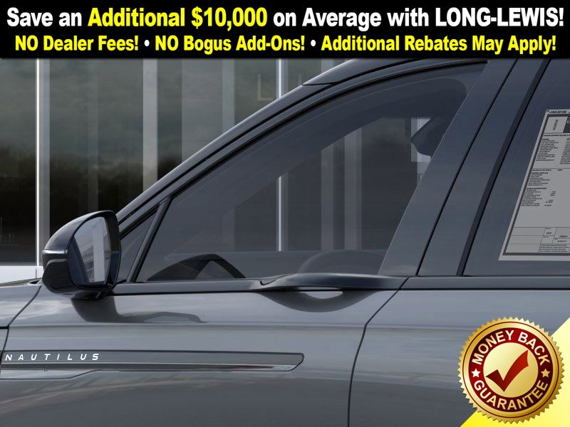 Lustrous Gray Metallic 2025 Lincoln Nautilus Reserve fctp AWD CVT 2.0L GTDI FHEV 2.0L GTDI FHEV, 10 Speakers, 110V Power Converter, 4-Wheel Disc Brakes, ABS brakes, Adaptive suspension, Air Conditioning, Alloy wheels, AM/FM radio: SiriusXM with 360L, Apple CarPlay/Android Auto, Auto Air Refresh, Auto High-beam Headlights, Auto tilt-away steering wheel, Auto-dimming Rear-View mirror, Automatic temperature control, Black Exterior Elements, BlueCruise Equipped (4-Years Included), Body Color, Brake assist, Bumpers: body-color, Compass, Delay-off headlights, Digital Scent, Driver door bin, Driver vanity mirror, Dual front impact airbags, Dual front side impact airbags, Electronic Stability Control, Emergency communication system: 911 Assist, Equipment Group 202A Reserve II, Exterior Parking Camera Rear, Four wheel independent suspension, Front anti-roll bar, Front Bucket Seats, Front Center Armrest w/Storage, Front dual zone A/C, Front reading lights, Fully automatic headlights, Garage door transmitter: HomeLink, Hands-Free Power Liftgate, Heated door mirrors, Heated front seats, Heated steering wheel, Illuminated entry, Jet Appearance Package, Knee airbag, Leather steering wheel, Lincoln Digital Experience, Low tire pressure warning, Memory seat, Navigation System, Occupant sensing airbag, Outside temperature display, Overhead airbag, Overhead console, Panic alarm, Panoramic Vista Roof w/Powershade, Passenger door bin, Passenger vanity mirror, Power door mirrors, Power driver seat, Power Liftgate, Power passenger seat, Power steering, Power windows, Prem Lthr-Trimmed Htd/Ventilated Captain's Chairs, Premium Leather Trimmed Front Captains Chairs, Radio data system, Radio: AM/FM Revel Audio System, Rain sensing wipers, Rear anti-roll bar, Rear Heated Seats w/Switch Control, Rear reading lights, Rear seat center armrest, Rear window defroster, Rear window wiper, Remote keyless entry, Security system, SiriusXM w/360L, Speed control, Speed-sensing steering, Speed-Sensitive Wipers, Split folding rear seat, Spoiler, Steering wheel memory, Steering wheel mounted audio controls, Tachometer, Telescoping steering wheel, Tilt steering wheel, Traction control, Trip computer, Turn signal indicator mirrors, Variably intermittent wipers, Wheels: 21" Bright Machined Aluminum, Wheels: 22" Satin Dark Luster Aluminum, 2.0L GTDI FHEV.