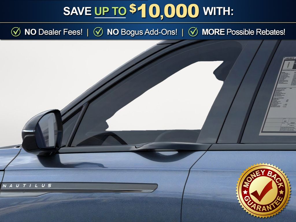 Priced below KBB Fair Purchase Price! Whisper Blue Metallic Clearcoat 2025 Lincoln Nautilus Reserve fctp AWD CVT 2.0L GTDI FHEV 2.0L GTDI FHEV, 10 Speakers, 110V Power Converter, 4-Wheel Disc Brakes, ABS brakes, Adaptive suspension, Air Conditioning, Alloy wheels, AM/FM radio: SiriusXM with 360L, Apple CarPlay/Android Auto, Auto Air Refresh, Auto High-beam Headlights, Auto tilt-away steering wheel, Auto-dimming Rear-View mirror, Automatic temperature control, Black Exterior Elements, BlueCruise Equipped (4-Years Included), Body Color, Brake assist, Bumpers: body-color, Compass, Delay-off headlights, Digital Scent, Driver door bin, Driver vanity mirror, Dual front impact airbags, Dual front side impact airbags, Electronic Stability Control, Emergency communication system: 911 Assist, Equipment Group 202A Reserve II, Exterior Parking Camera Rear, Four wheel independent suspension, Front anti-roll bar, Front Bucket Seats, Front Center Armrest w/Storage, Front dual zone A/C, Front reading lights, Fully automatic headlights, Garage door transmitter: HomeLink, Hands-Free Power Liftgate, Heated door mirrors, Heated front seats, Heated steering wheel, Illuminated entry, Jet Appearance Package, Knee airbag, Leather steering wheel, Lincoln Digital Experience, Low tire pressure warning, Memory seat, Navigation System, Occupant sensing airbag, Outside temperature display, Overhead airbag, Overhead console, Panic alarm, Panoramic Vista Roof w/Powershade, Passenger door bin, Passenger vanity mirror, Power door mirrors, Power driver seat, Power Liftgate, Power passenger seat, Power steering, Power windows, Prem Lthr-Trimmed Htd/Ventilated Captain's Chairs, Premium Leather Trimmed Front Captains Chairs, Radio data system, Radio: AM/FM Revel Audio System, Rain sensing wipers, Rear anti-roll bar, Rear Heated Seats w/Switch Control, Rear reading lights, Rear seat center armrest, Rear window defroster, Rear window wiper, Remote keyless entry, Security system, SiriusXM w/360L, Speed control, Speed-sensing steering, Speed-Sensitive Wipers, Split folding rear seat, Spoiler, Steering wheel memory, Steering wheel mounted audio controls, Tachometer, Telescoping steering wheel, Tilt steering wheel, Traction control, Trip computer, Turn signal indicator mirrors, Variably intermittent wipers, Wheels: 21" Bright Machined Aluminum, Wheels: 22" Satin Dark Luster Aluminum, 2.0L GTDI FHEV.