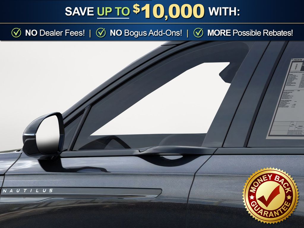 Priced below KBB Fair Purchase Price! Infinite Black Metallic Clearcoat 2025 Lincoln Nautilus Reserve fctp AWD 8-Speed Automatic 2.0L GTDi 10 Speakers, 110V Power Converter, 4-Wheel Disc Brakes, ABS brakes, Adaptive suspension, Air Conditioning, Alloy wheels, AM/FM radio: SiriusXM with 360L, Apple CarPlay/Android Auto, Auto Air Refresh, Auto High-beam Headlights, Auto tilt-away steering wheel, Auto-dimming Rear-View mirror, Automatic temperature control, Black Exterior Elements, BlueCruise Equipped (4-Years Included), Body Color, Brake assist, Bumpers: body-color, Compass, Delay-off headlights, Digital Scent, Driver door bin, Driver vanity mirror, Dual front impact airbags, Dual front side impact airbags, Electronic Stability Control, Emergency communication system: 911 Assist, Equipment Group 202A Reserve II, Exterior Parking Camera Rear, Four wheel independent suspension, Front anti-roll bar, Front Bucket Seats, Front Center Armrest w/Storage, Front dual zone A/C, Front reading lights, Fully automatic headlights, Garage door transmitter: HomeLink, Hands-Free Power Liftgate, Heated door mirrors, Heated front seats, Heated steering wheel, Illuminated entry, Jet Appearance Package, Knee airbag, Leather steering wheel, Lincoln Digital Experience, Low tire pressure warning, Memory seat, Navigation System, Occupant sensing airbag, Outside temperature display, Overhead airbag, Overhead console, Panic alarm, Panoramic Vista Roof w/Powershade, Passenger door bin, Passenger vanity mirror, Power door mirrors, Power driver seat, Power Liftgate, Power passenger seat, Power steering, Power windows, Prem Lthr-Trimmed Htd/Ventilated Captain's Chairs, Radio data system, Radio: AM/FM Revel Audio System, Rain sensing wipers, Rear anti-roll bar, Rear Heated Seats w/Switch Control, Rear reading lights, Rear seat center armrest, Rear window defroster, Rear window wiper, Remote keyless entry, Security system, SiriusXM w/360L, Speed control, Speed-sensing steering, Speed-Sensitive Wipers, Split folding rear seat, Spoiler, Steering wheel memory, Steering wheel mounted audio controls, Tachometer, Telescoping steering wheel, Tilt steering wheel, Traction control, Trip computer, Turn signal indicator mirrors, Variably intermittent wipers, Wheels: 21" Bright Machined Aluminum, Wheels: 22" Satin Dark Luster Aluminum.