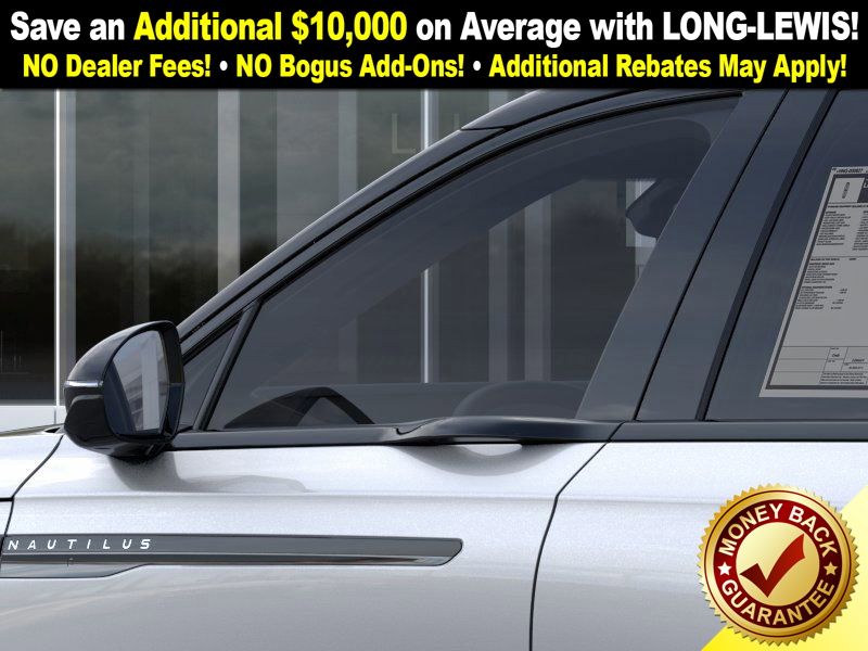 Silver Radiance Metallic Clearcoat 2025 Lincoln Nautilus Reserve fctp AWD CVT 2.0L GTDI FHEV 2.0L GTDI FHEV, 10 Speakers, 110V Power Converter, 4-Wheel Disc Brakes, ABS brakes, Adaptive suspension, Air Conditioning, Alloy wheels, AM/FM radio: SiriusXM with 360L, Apple CarPlay/Android Auto, Auto Air Refresh, Auto High-beam Headlights, Auto tilt-away steering wheel, Auto-dimming Rear-View mirror, Automatic temperature control, Black Exterior Elements, BlueCruise Equipped (4-Years Included), Body Color, Brake assist, Bumpers: body-color, Compass, Delay-off headlights, Digital Scent, Driver door bin, Driver vanity mirror, Dual front impact airbags, Dual front side impact airbags, Electronic Stability Control, Emergency communication system: 911 Assist, Equipment Group 202A Reserve II, Exterior Parking Camera Rear, Four wheel independent suspension, Front anti-roll bar, Front Bucket Seats, Front Center Armrest w/Storage, Front dual zone A/C, Front reading lights, Fully automatic headlights, Garage door transmitter: HomeLink, Hands-Free Power Liftgate, Heated door mirrors, Heated front seats, Heated steering wheel, Illuminated entry, Jet Appearance Package, Knee airbag, Leather steering wheel, Lincoln Digital Experience, Lincoln Rejuventate, Low tire pressure warning, Memory seat, Navigation System, Occupant sensing airbag, Outside temperature display, Overhead airbag, Overhead console, Panic alarm, Panoramic Vista Roof w/Powershade, Passenger door bin, Passenger vanity mirror, Power door mirrors, Power driver seat, Power Liftgate, Power passenger seat, Power steering, Power windows, Prem Lthr-Trimmed Htd/Ventilated Captain's Chairs, Premium Leather Trimmed Front Captains Chairs, Radio data system, Radio: AM/FM Revel Audio System, Rain sensing wipers, Rear anti-roll bar, Rear Heated Seats w/Switch Control, Rear reading lights, Rear seat center armrest, Rear window defroster, Rear window wiper, Remote keyless entry, Security system, SiriusXM w/360L, Speed control, Speed-sensing steering, Speed-Sensitive Wipers, Split folding rear seat, Spoiler, Steering wheel memory, Steering wheel mounted audio controls, Tachometer, Telescoping steering wheel, Tilt steering wheel, Traction control, Trip computer, Turn signal indicator mirrors, Variably intermittent wipers, Wheels: 21" Bright Machined Aluminum, Wheels: 22" Satin Dark Luster Aluminum, 2.0L GTDI FHEV.