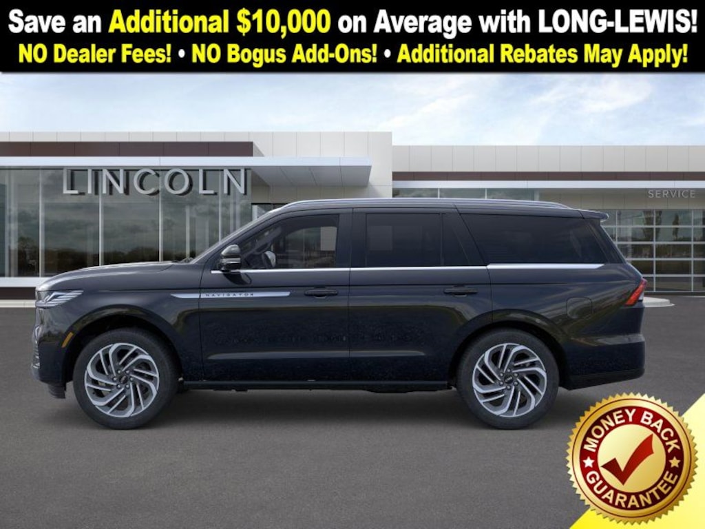 Dealer Discount of $3,118 off MSRP Infinite Black Metallic Clearcoat 2025 Lincoln Navigator Reserve 4WD 10-Speed Automatic 3.5L V6 4WD, Surf Hot Choc Leather, 26mm Engine Radiator, 28 Speakers, 3rd row seats: split-bench, 4-Wheel Disc Brakes, ABS brakes, Adaptive suspension, Adjustable pedals, Air Conditioning, Alloy wheels, AM/FM radio: SiriusXM with 360L, Apple CarPlay/Android Auto, Audio memory, Auto High-beam Headlights, Auto Htd & Ventilated Premium Lthr Captain's Chair, Auto Start-Stop Technology, Auto tilt-away steering wheel, Auto-dimming door mirrors, Auto-dimming Rear-View mirror, Auto-leveling suspension, Automatic temperature control, Brake assist, Bumpers: body-color, Compass, Delay-off headlights, Driver door bin, Driver vanity mirror, Driver's Seat Mounted Armrest, Dual front impact airbags, Dual front side impact airbags, Electronic Stability Control, Emergency communication system: 911 Assist, Exterior Parking Camera Rear, Four wheel independent suspension, Front anti-roll bar, Front Bucket Seats, Front dual zone A/C, Front reading lights, Fully automatic headlights, Garage door transmitter, Heated door mirrors, Heated front seats, Heated rear seats, Heated steering wheel, Heavy-Duty Trailer Tow Package, HVAC memory, Illuminated entry, Leather steering wheel, Lincoln Connect, Lincoln Premium Connectivity, Low tire pressure warning, Memory seat, Navigation system: Connected Navigation (1-year trial), Occupant sensing airbag, Outside temperature display, Overhead airbag, Overhead console, Panic alarm, Passenger door bin, Passenger seat mounted armrest, Passenger vanity mirror, Pedal memory, Power adjustable rear head restraints, Power door mirrors, Power driver seat, Power moonroof: Panoramic Vista Roof, Power passenger seat, Power steering, Power windows, Radio data system, Radio: Revel Ultima 3D AM/FM/HD Audio System, Rain sensing wipers, Rear air conditioning, Rear anti-roll bar, Rear audio controls, Rear reading lights, Rear window defroster, Rear window wiper, Reclining 3rd row seat, Remote keyless entry, Security system, SiriusXM w/360L, Speed control, Speed-sensing steering, Speed-Sensitive Wipers, Split folding rear seat, Spoiler, Steering wheel memory, Steering wheel mounted audio controls, Tachometer, Telescoping steering wheel, Tilt steering wheel, Traction control, Trailer Brake Controller, Trip computer, Turn signal indicator mirrors, Variably intermittent wipers, Ventilated front seats, Wheels: 22" Dark Tarnished Aluminum, 4WD, Surf Hot Choc Leather. Price includes: $1000 - Wishlist Bonus Cash. Exp. 01/05/2026