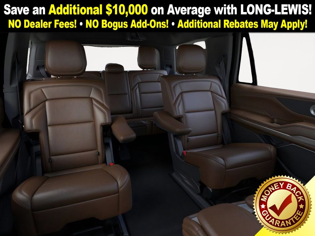 Dealer Discount of $4,474 off MSRP Priced below KBB Fair Purchase Price! Infinite Black Metallic Clearcoat 2025 Lincoln Navigator Reserve fctp 4WD 10-Speed Automatic 3.5L V6 4WD, Hot Chocolate Leather, 26mm Engine Radiator, 28 Speakers, 3rd row seats: split-bench, 4-Wheel Disc Brakes, ABS brakes, Adaptive suspension, Adjustable pedals, Air Conditioning, Alloy wheels, AM/FM radio: SiriusXM with 360L, Apple CarPlay/Android Auto, Audio memory, Auto High-beam Headlights, Auto Htd & Ventilated Premium Lthr Captain's Chair, Auto Start-Stop Technology, Auto tilt-away steering wheel, Auto-dimming door mirrors, Auto-dimming Rear-View mirror, Auto-leveling suspension, Automatic temperature control, Brake assist, Bumpers: body-color, Compass, Delay-off headlights, Driver door bin, Driver vanity mirror, Driver's Seat Mounted Armrest, Dual front impact airbags, Dual front side impact airbags, Electronic Stability Control, Emergency communication system: 911 Assist, Equipment Group 202A Reserve II, Exterior Parking Camera Rear, Four wheel independent suspension, Front anti-roll bar, Front Bucket Seats, Front dual zone A/C, Front reading lights, Fully automatic headlights, Garage door transmitter, Heated door mirrors, Heated front seats, Heated rear seats, Heated steering wheel, Heavy-Duty Trailer Tow Package, HVAC memory, Illuminated entry, Leather steering wheel, Lincoln Connect, Lincoln Premium Connectivity, Low tire pressure warning, Memory seat, Navigation system: Connected Navigation (1-year trial), Occupant sensing airbag, Outside temperature display, Overhead airbag, Overhead console, Panic alarm, Passenger door bin, Passenger seat mounted armrest, Passenger vanity mirror, Pedal memory, Power adjustable rear head restraints, Power door mirrors, Power driver seat, Power moonroof: Panoramic Vista Roof, Power passenger seat, Power steering, Power windows, Radio data system, Radio: Revel Ultima 3D AM/FM/HD Audio System, Rain sensing wipers, Rear air conditioning, Rear anti-roll bar, Rear audio controls, Rear reading lights, Rear window defroster, Rear window wiper, Reclining 3rd row seat, Remote keyless entry, Security system, SiriusXM w/360L, Speed control, Speed-sensing steering, Speed-Sensitive Wipers, Split folding rear seat, Spoiler, Steering wheel memory, Steering wheel mounted audio controls, Tachometer, Telescoping steering wheel, Tilt steering wheel, Traction control, Trailer Brake Controller, Trip computer, Turn signal indicator mirrors, Variably intermittent wipers, Ventilated front seats, Wheels: 22" Dark Tarnished Aluminum, 4WD, Hot Chocolate Leather. Price includes: $1000 - Bonus Cash. Exp. 03/31/2026