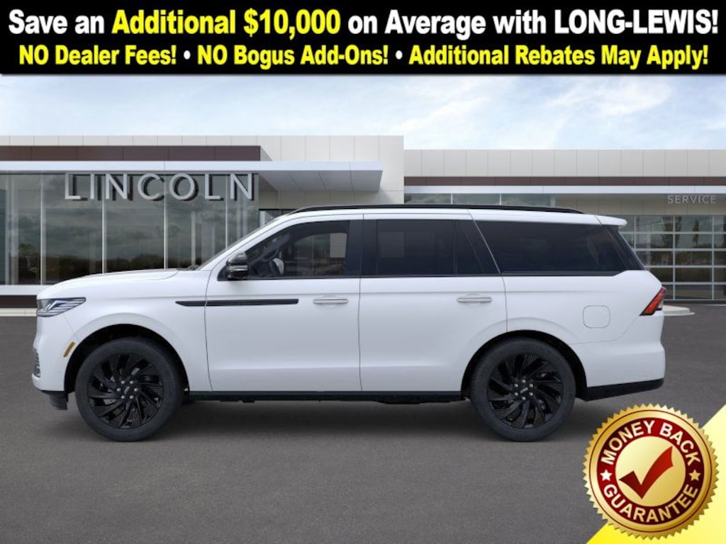 Dealer Discount of $3,274 off MSRP Pristine White Metallic Tri-Coat 2025 Lincoln Navigator Reserve 4WD 10-Speed Automatic 3.5L V6 4WD, Sur Blk Onyx Jet Pkg Lthr Leather, 28 Speakers, 3rd row seats: split-bench, 4-Wheel Disc Brakes, ABS brakes, Adaptive suspension, Adjustable pedals, Air Conditioning, Alloy wheels, AM/FM radio: SiriusXM with 360L, Apple CarPlay/Android Auto, Audio memory, Auto High-beam Headlights, Auto Htd & Ventilated Premium Lthr Captain's Chair, Auto Start-Stop Technology, Auto tilt-away steering wheel, Auto-dimming door mirrors, Auto-dimming Rear-View mirror, Auto-leveling suspension, Automatic temperature control, Black Accent Badge, Black Accent Interior Pack, Black Beltline Molding, Black Painted Roof Rails, Brake assist, Bumpers: body-color, Compass, Delay-off headlights, Driver door bin, Driver vanity mirror, Driver's Seat Mounted Armrest, Dual front impact airbags, Dual front side impact airbags, Electronic Stability Control, Emergency communication system: 911 Assist, Exterior Parking Camera Rear, Four wheel independent suspension, Front anti-roll bar, Front Bucket Seats, Front Bumper Fascia, Front dual zone A/C, Front reading lights, Fully automatic headlights, Garage door transmitter, Heated door mirrors, Heated front seats, Heated rear seats, Heated steering wheel, HVAC memory, Illuminated entry, Jet Appearance Package, Leather steering wheel, Lincoln Connect, Lincoln Lit Star, Lincoln Premium Connectivity, Low tire pressure warning, Memory seat, Navigation system: Connected Navigation (1-year trial), Occupant sensing airbag, Outside temperature display, Overhead airbag, Overhead console, Panic alarm, Passenger door bin, Passenger seat mounted armrest, Passenger vanity mirror, Pedal memory, Power adjustable rear head restraints, Power door mirrors, Power driver seat, Power moonroof: Panoramic Vista Roof, Power passenger seat, Power steering, Power windows, Radio data system, Radio: Revel Ultima 3D AM/FM/HD Audio System, Rain sensing wipers, Rear air conditioning, Rear anti-roll bar, Rear audio controls, Rear reading lights, Rear window defroster, Rear window wiper, Reclining 3rd row seat, Remote keyless entry, Security system, SiriusXM w/360L, Speed control, Speed-sensing steering, Speed-Sensitive Wipers, Split folding rear seat, Spoiler, Steering wheel memory, Steering wheel mounted audio controls, Tachometer, Telescoping steering wheel, Tilt steering wheel, Traction control, Trip computer, Turn signal indicator mirrors, Unique Lincoln Grille Pillar Black Surround, Variably intermittent wipers, Ventilated front seats, Wheels: 22" Dark Tarnished Aluminum, Wheels: 22" High-Gloss Ebony Aluminum, 4WD, Sur Blk Onyx Jet Pkg Lthr Leather. Price includes: $1000 - Wishlist Bonus Cash. Exp. 01/05/2026