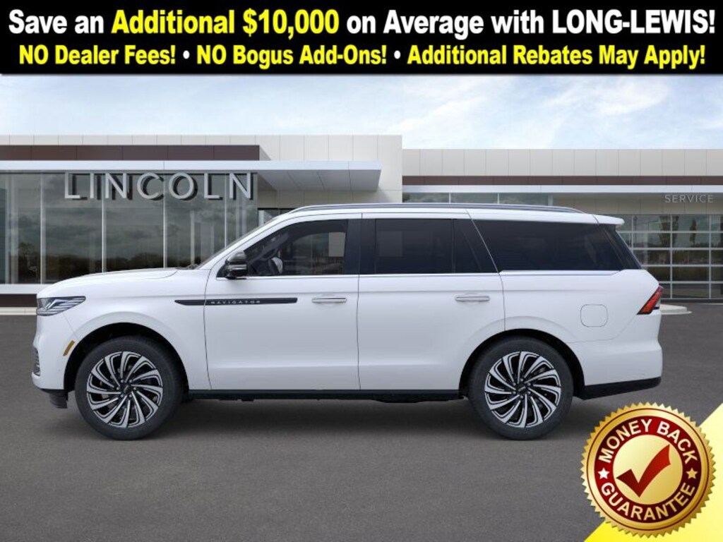 Dealer Discount of $3,814 off MSRP Priced below KBB Fair Purchase Price! Pristine White Metallic Tri-Coat 2025 Lincoln Navigator Black Label NLT 4WD 10-Speed Automatic 3.5L V6 4WD, Warm Horizon W/Dark Flint Leather, 28 Speakers, 3rd row seats: split-bench, 4-Wheel Disc Brakes, A/V remote, ABS brakes, Adaptive suspension, Adjustable pedals, Air Conditioning, Alloy wheels, AM/FM radio: SiriusXM with 360L, Apple CarPlay/Android Auto, Audio memory, Auto High-beam Headlights, Auto Htd & Ventilated Opulence Lthr Capt Chair, Auto Htd & Ventilated Opulence Lthr Capt Chair (V), Auto Start-Stop Technology, Auto tilt-away steering wheel, Auto-dimming door mirrors, Auto-dimming Rear-View mirror, Auto-leveling suspension, Automatic temperature control, Brake assist, Bumpers: body-color, Compass, Delay-off headlights, Driver door bin, Driver vanity mirror, Driver's Seat Mounted Armrest, Dual front impact airbags, Dual front side impact airbags, Electronic Stability Control, Emergency communication system: 911 Assist, Enlighten Theme, Equipment Group 800A Black Label, Exterior Parking Camera Rear, Four wheel independent suspension, Front anti-roll bar, Front Bucket Seats, Front dual zone A/C, Front reading lights, Fully automatic headlights, Garage door transmitter, Head restraints memory, Headphones, Heated door mirrors, Heated front seats, Heated rear seats, Heated steering wheel, HVAC memory, Illuminated entry, Invitation Theme, Leather steering wheel, Lincoln Connect, Lincoln Premium Connectivity, Low tire pressure warning, Memory seat, Navigation system: Connected Navigation (1-year trial), Occupant sensing airbag, Outside temperature display, Overhead airbag, Overhead console, Panic alarm, Passenger door bin, Passenger seat mounted armrest, Passenger vanity mirror, Pedal memory, Power adjustable front head restraints, Power adjustable rear head restraints, Power door mirrors, Power driver seat, Power moonroof: Panoramic Vista Roof, Power passenger seat, Power steering, Power windows, Radio data system, Radio: Revel Ultima 3D AM/FM/HD Audio System, Rain sensing wipers, Rear air conditioning, Rear anti-roll bar, Rear audio controls, Rear reading lights, Rear seat center armrest, Rear window defroster, Rear window wiper, Reclining 3rd row seat, Remote keyless entry, Security system, SiriusXM w/360L, Speed control, Speed-sensing steering, Speed-Sensitive Wipers, Split folding rear seat, Spoiler, Steering wheel memory, Steering wheel mounted audio controls, Tachometer, Telescoping steering wheel, Tilt steering wheel, Traction control, Trip computer, Turn signal indicator mirrors, Variably intermittent wipers, Ventilated front seats, Ventilated rear seats, Wheels: 22" High-Gloss Ebony Aluminum, 4WD, Warm Horizon W/Dark Flint Leather. Price includes: $1000 - Wishlist Bonus Cash. Exp. 01/05/2026