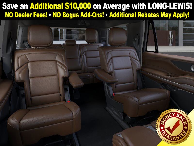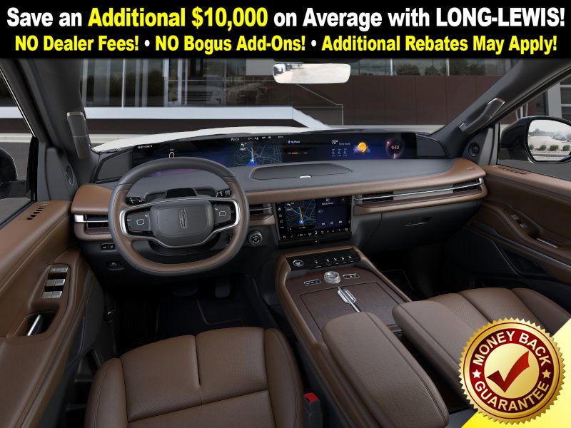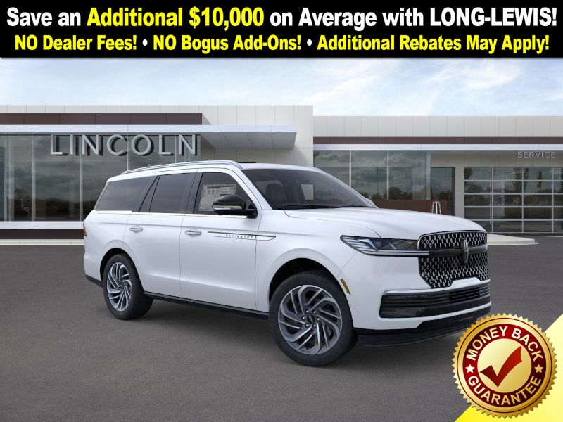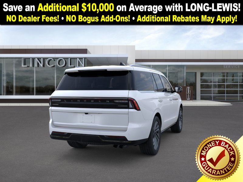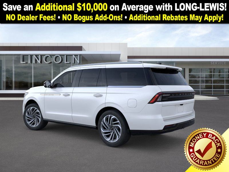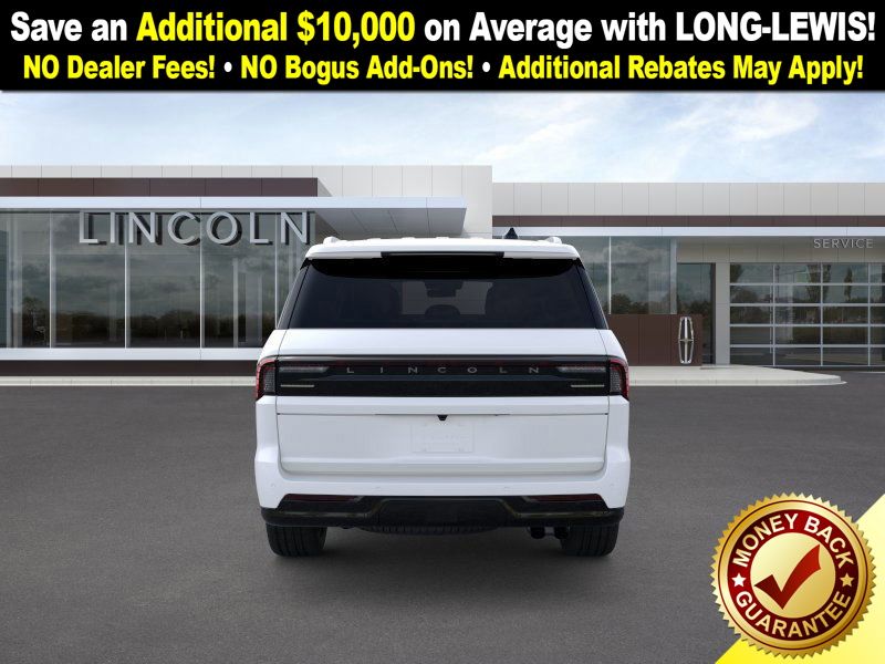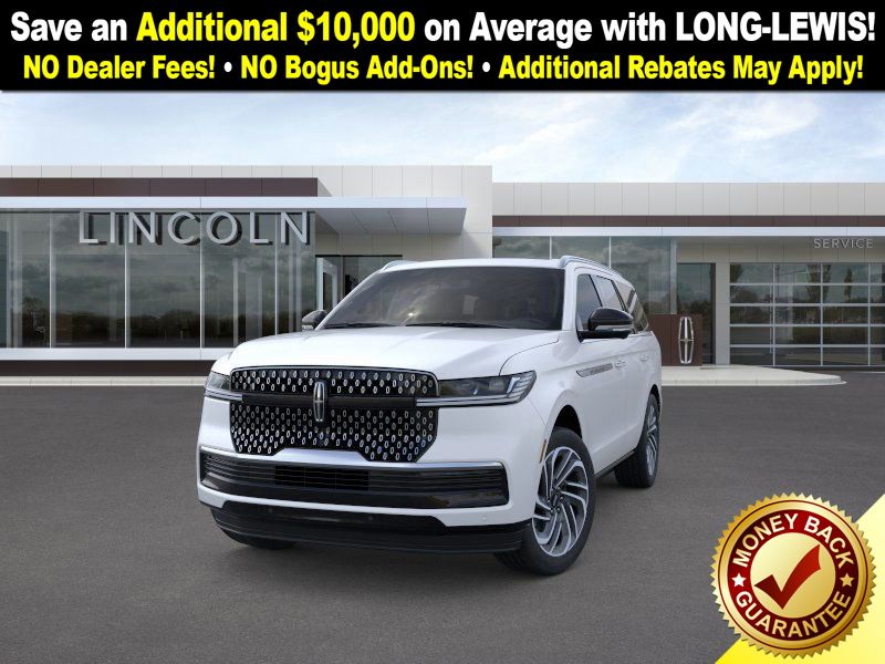 Pristine White Metallic Tri-Coat 2025 Lincoln Navigator Reserve NLT 4WD 10-Speed Automatic 3.5L V6 4WD, Hot Chocolate Leather, 28 Speakers, 3rd row seats: split-bench, 4-Wheel Disc Brakes, ABS brakes, Adaptive suspension, Adjustable pedals, Air Conditioning, Alloy wheels, AM/FM radio: SiriusXM with 360L, Apple CarPlay/Android Auto, Audio memory, Auto High-beam Headlights, Auto Htd & Ventilated Premium Lthr Captain's Chair, Auto Start-Stop Technology, Auto tilt-away steering wheel, Auto-dimming door mirrors, Auto-dimming Rear-View mirror, Auto-leveling suspension, Automatic temperature control, Brake assist, Bumpers: body-color, Compass, Delay-off headlights, Driver door bin, Driver vanity mirror, Driver's Seat Mounted Armrest, Dual front impact airbags, Dual front side impact airbags, Electronic Stability Control, Emergency communication system: 911 Assist, Equipment Group 202A Reserve II, Exterior Parking Camera Rear, Four wheel independent suspension, Front anti-roll bar, Front Bucket Seats, Front dual zone A/C, Front reading lights, Fully automatic headlights, Garage door transmitter, Heated door mirrors, Heated front seats, Heated rear seats, Heated steering wheel, HVAC memory, Illuminated entry, Leather steering wheel, Lincoln Connect, Lincoln Premium Connectivity, Low tire pressure warning, Memory seat, Navigation system: Connected Navigation (1-year trial), Occupant sensing airbag, Outside temperature display, Overhead airbag, Overhead console, Panic alarm, Passenger door bin, Passenger seat mounted armrest, Passenger vanity mirror, Pedal memory, Power adjustable rear head restraints, Power door mirrors, Power driver seat, Power moonroof: Panoramic Vista Roof, Power passenger seat, Power steering, Power windows, Radio data system, Radio: Revel Ultima 3D AM/FM/HD Audio System, Rain sensing wipers, Rear air conditioning, Rear anti-roll bar, Rear audio controls, Rear reading lights, Rear window defroster, Rear window wiper, Reclining 3rd row seat, Remote keyless entry, Security system, SiriusXM w/360L, Speed control, Speed-sensing steering, Speed-Sensitive Wipers, Split folding rear seat, Spoiler, Steering wheel memory, Steering wheel mounted audio controls, Tachometer, Telescoping steering wheel, Tilt steering wheel, Traction control, Trip computer, Turn signal indicator mirrors, Variably intermittent wipers, Ventilated front seats, Wheels: 22" Dark Tarnished Aluminum, 4WD, Hot Chocolate Leather.