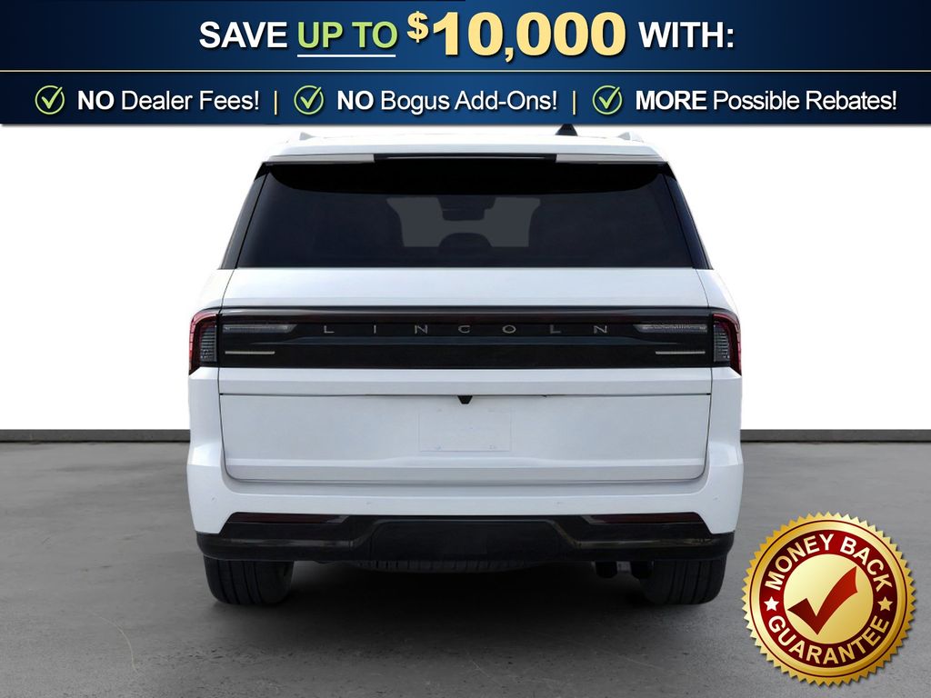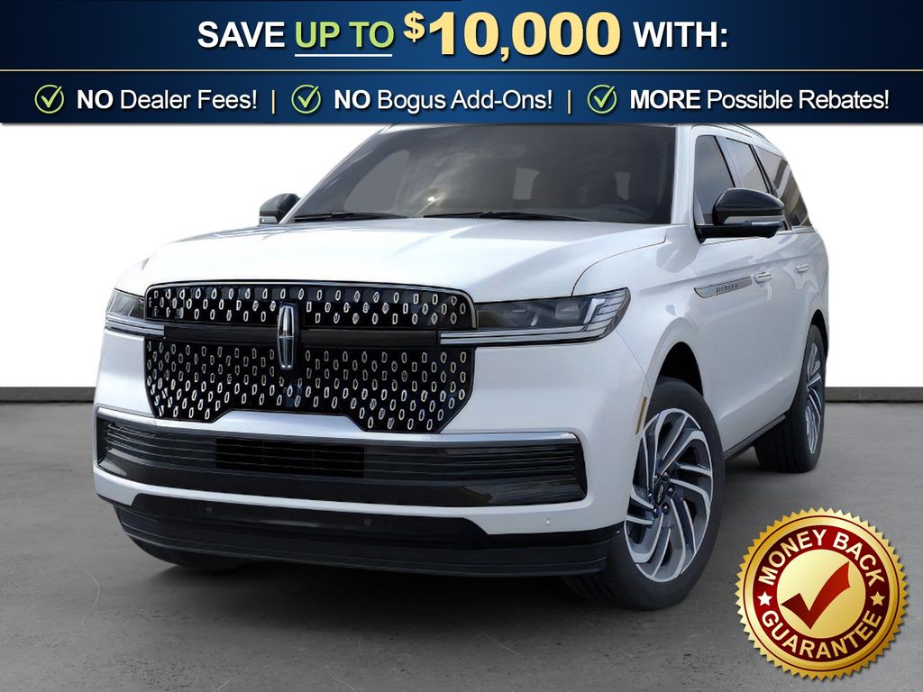 Dealer Discount of $2,902 off MSRP Crystal White Metallic Clearcoat 2025 Lincoln Navigator Reserve NLT 4WD 10-Speed Automatic 3.5L V6 4WD, Lthr Seat Surf Black Onyx Leather, 26mm Engine Radiator, 28 Speakers, 2nd Row Heated & Ventilated Dual Captain's Chair, 3rd row seats: split-bench, 4-Wheel Disc Brakes, ABS brakes, Adaptive suspension, Adjustable pedals, Air Conditioning, Alloy wheels, AM/FM radio: SiriusXM with 360L, Apple CarPlay/Android Auto, Audio memory, Auto High-beam Headlights, Auto Htd & Ventilated Premium Lthr Captain's Chair, Auto Start-Stop Technology, Auto tilt-away steering wheel, Auto-dimming door mirrors, Auto-dimming Rear-View mirror, Auto-leveling suspension, Automatic temperature control, Brake assist, Bumpers: body-color, Compass, Delay-off headlights, Driver door bin, Driver vanity mirror, Driver's Seat Mounted Armrest, Dual front impact airbags, Dual front side impact airbags, Electronic Stability Control, Emergency communication system: 911 Assist, Exterior Parking Camera Rear, Four wheel independent suspension, Front anti-roll bar, Front Bucket Seats, Front dual zone A/C, Front reading lights, Fully automatic headlights, Garage door transmitter, Heated door mirrors, Heated front seats, Heated rear seats, Heated steering wheel, Heavy-Duty Trailer Tow Package, HVAC memory, Illuminated entry, Leather steering wheel, Lincoln Connect, Lincoln Premium Connectivity, Low tire pressure warning, Memory seat, Navigation system: Connected Navigation (1-year trial), Occupant sensing airbag, Outside temperature display, Overhead airbag, Overhead console, Panic alarm, Passenger door bin, Passenger seat mounted armrest, Passenger vanity mirror, Pedal memory, Power adjustable rear head restraints, Power door mirrors, Power driver seat, Power moonroof: Panoramic Vista Roof, Power passenger seat, Power steering, Power windows, Radio data system, Radio: Revel Ultima 3D AM/FM/HD Audio System, Rain sensing wipers, Rear air conditioning, Rear anti-roll bar, Rear audio controls, Rear reading lights, Rear window defroster, Rear window wiper, Reclining 3rd row seat, Remote keyless entry, Security system, SiriusXM w/360L, Speed control, Speed-sensing steering, Speed-Sensitive Wipers, Split folding rear seat, Spoiler, Steering wheel memory, Steering wheel mounted audio controls, Tachometer, Telescoping steering wheel, Tilt steering wheel, Traction control, Trailer Brake Controller, Trip computer, Turn signal indicator mirrors, Variably intermittent wipers, Ventilated front seats, Wheels: 22" Dark Tarnished Aluminum, 4WD, Lthr Seat Surf Black Onyx Leather. Price includes: $3000 - Retail Customer Cash. Exp. 03/31/2026