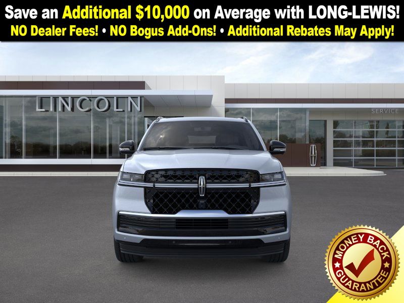 Dealer Discount of $2,258 off MSRP Gray Mist Metallic Tri-Coat 2025 Lincoln Navigator Reserve fctp 4WD 10-Speed Automatic 3.5L V6 4WD, Black Onyx Leather, 28 Speakers, 3rd row seats: split-bench, 4-Wheel Disc Brakes, ABS brakes, Adaptive suspension, Adjustable pedals, Air Conditioning, Alloy wheels, AM/FM radio: SiriusXM with 360L, Apple CarPlay/Android Auto, Audio memory, Auto High-beam Headlights, Auto Htd & Ventilated Premium Lthr Captain's Chair, Auto Start-Stop Technology, Auto tilt-away steering wheel, Auto-dimming door mirrors, Auto-dimming Rear-View mirror, Auto-leveling suspension, Automatic temperature control, Black Accent Badge, Black Accent Interior Pack, Black Beltline Molding, Black Painted Roof Rails, Brake assist, Bumpers: body-color, Compass, Delay-off headlights, Driver door bin, Driver vanity mirror, Driver's Seat Mounted Armrest, Dual front impact airbags, Dual front side impact airbags, Electronic Stability Control, Emergency communication system: 911 Assist, Equipment Group 202A Reserve II, Exterior Parking Camera Rear, Four wheel independent suspension, Front anti-roll bar, Front Bucket Seats, Front Bumper Fascia, Front dual zone A/C, Front reading lights, Fully automatic headlights, Garage door transmitter, Heated door mirrors, Heated front seats, Heated rear seats, Heated steering wheel, HVAC memory, Illuminated entry, Jet Appearance Package, Leather steering wheel, Lincoln Connect, Lincoln Lit Star, Lincoln Premium Connectivity, Low tire pressure warning, Memory seat, Navigation system: Connected Navigation (1-year trial), Occupant sensing airbag, Outside temperature display, Overhead airbag, Overhead console, Panic alarm, Passenger door bin, Passenger seat mounted armrest, Passenger vanity mirror, Pedal memory, Power adjustable rear head restraints, Power door mirrors, Power driver seat, Power moonroof: Panoramic Vista Roof, Power passenger seat, Power steering, Power windows, Radio data system, Radio: Revel Ultima 3D AM/FM/HD Audio System, Rain sensing wipers, Rear air conditioning, Rear anti-roll bar, Rear audio controls, Rear reading lights, Rear window defroster, Rear window wiper, Reclining 3rd row seat, Remote keyless entry, Security system, SiriusXM w/360L, Speed control, Speed-sensing steering, Speed-Sensitive Wipers, Split folding rear seat, Spoiler, Steering wheel memory, Steering wheel mounted audio controls, Tachometer, Telescoping steering wheel, Tilt steering wheel, Traction control, Trip computer, Turn signal indicator mirrors, Unique Lincoln Grille Pillar Black Surround, Variably intermittent wipers, Ventilated front seats, Wheels: 22" Dark Tarnished Aluminum, Wheels: 22" High-Gloss Ebony Aluminum, 4WD, Black Onyx Leather. Price includes: $2000 - Wishlist Bonus Cash. Exp. 01/02/2026