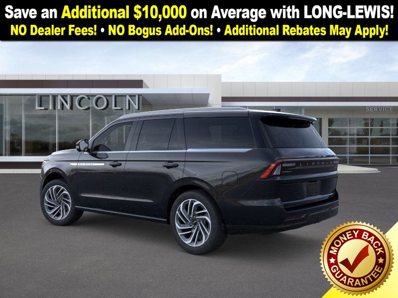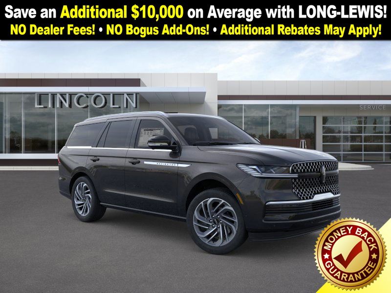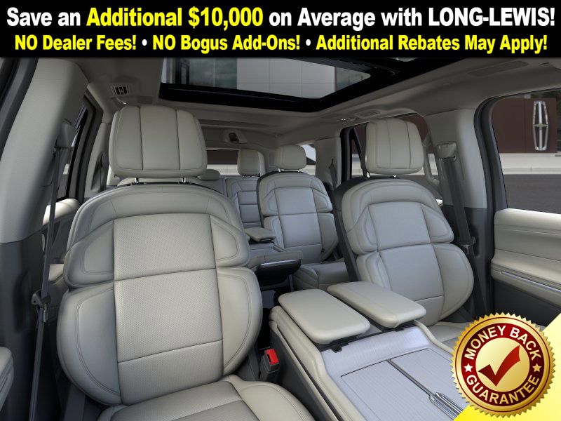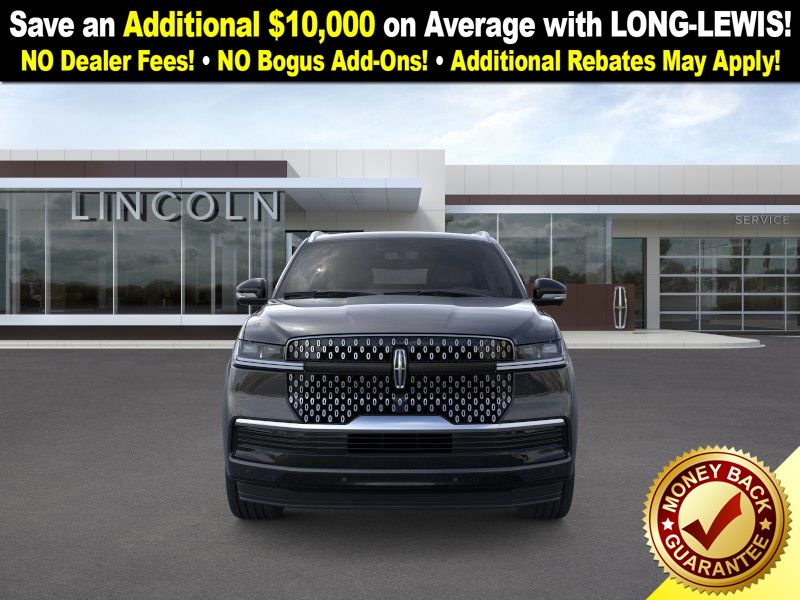 Dealer Discount of $2,244 off MSRP Infinite Black Metallic Clearcoat 2025 Lincoln Navigator Reserve NLT 4WD 10-Speed Automatic 3.5L V6 4WD, Lthr Seat Sur Med Lt Spac Leather, 26mm Engine Radiator, 28 Speakers, 2nd Row Heated & Ventilated Dual Captain's Chair, 3rd row seats: split-bench, 4-Wheel Disc Brakes, ABS brakes, Adaptive suspension, Adjustable pedals, Air Conditioning, Alloy wheels, AM/FM radio: SiriusXM with 360L, Apple CarPlay/Android Auto, Audio memory, Auto High-beam Headlights, Auto Htd & Ventilated Premium Lthr Captain's Chair, Auto Start-Stop Technology, Auto tilt-away steering wheel, Auto-dimming door mirrors, Auto-dimming Rear-View mirror, Auto-leveling suspension, Automatic temperature control, Brake assist, Bumpers: body-color, Compass, Delay-off headlights, Driver door bin, Driver vanity mirror, Driver's Seat Mounted Armrest, Dual front impact airbags, Dual front side impact airbags, Electronic Stability Control, Emergency communication system: 911 Assist, Exterior Parking Camera Rear, Four wheel independent suspension, Front anti-roll bar, Front Bucket Seats, Front dual zone A/C, Front reading lights, Fully automatic headlights, Garage door transmitter, Heated door mirrors, Heated front seats, Heated rear seats, Heated steering wheel, Heavy-Duty Trailer Tow Package, HVAC memory, Illuminated entry, Leather steering wheel, Lincoln Connect, Lincoln Premium Connectivity, Low tire pressure warning, Memory seat, Navigation system: Connected Navigation (1-year trial), Occupant sensing airbag, Outside temperature display, Overhead airbag, Overhead console, Panic alarm, Passenger door bin, Passenger seat mounted armrest, Passenger vanity mirror, Pedal memory, Power adjustable rear head restraints, Power door mirrors, Power driver seat, Power moonroof: Panoramic Vista Roof, Power passenger seat, Power steering, Power windows, Radio data system, Radio: Revel Ultima 3D AM/FM/HD Audio System, Rain sensing wipers, Rear air conditioning, Rear anti-roll bar, Rear audio controls, Rear reading lights, Rear window defroster, Rear window wiper, Reclining 3rd row seat, Remote keyless entry, Security system, SiriusXM w/360L, Speed control, Speed-sensing steering, Speed-Sensitive Wipers, Split folding rear seat, Spoiler, Steering wheel memory, Steering wheel mounted audio controls, Tachometer, Telescoping steering wheel, Tilt steering wheel, Traction control, Trailer Brake Controller, Trip computer, Turn signal indicator mirrors, Variably intermittent wipers, Ventilated front seats, Wheels: 22" Dark Tarnished Aluminum, 4WD, Lthr Seat Sur Med Lt Spac Leather.