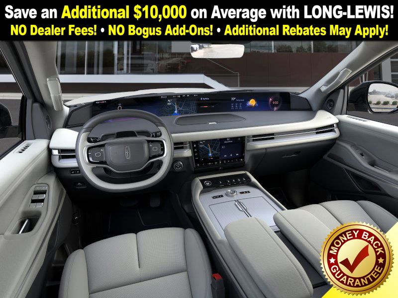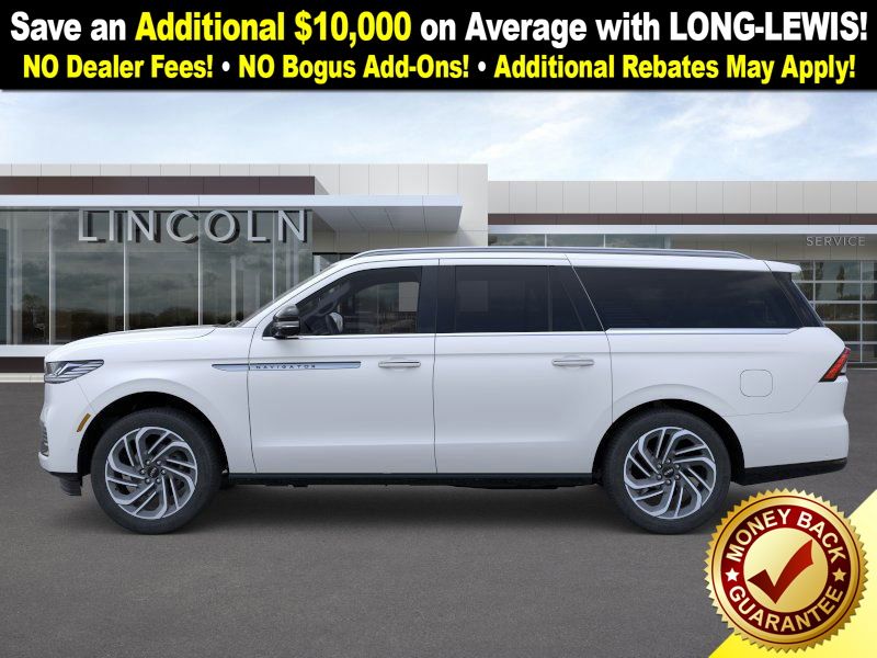 Dealer Discount of $2,253 off MSRP Pristine White Metallic Tri-Coat 2025 Lincoln Navigator L Reserve NLT 4WD 10-Speed Automatic 3.5L V6 28 Speakers, 3rd row seats: split-bench, 4-Wheel Disc Brakes, ABS brakes, Adaptive suspension, Adjustable pedals, Air Conditioning, Alloy wheels, AM/FM radio: SiriusXM with 360L, Apple CarPlay/Android Auto, Audio memory, Auto High-beam Headlights, Auto Htd & Ventilated Premium Lthr Captain's Chair, Auto Start-Stop Technology, Auto tilt-away steering wheel, Auto-dimming door mirrors, Auto-dimming Rear-View mirror, Auto-leveling suspension, Automatic temperature control, Brake assist, Bumpers: body-color, Compass, Delay-off headlights, Driver door bin, Driver vanity mirror, Driver's Seat Mounted Armrest, Dual front impact airbags, Dual front side impact airbags, Electronic Stability Control, Emergency communication system: 911 Assist, Exterior Parking Camera Rear, Four wheel independent suspension, Front anti-roll bar, Front Bucket Seats, Front dual zone A/C, Front reading lights, Fully automatic headlights, Garage door transmitter, Heated door mirrors, Heated front seats, Heated rear seats, Heated steering wheel, HVAC memory, Illuminated entry, Leather steering wheel, Lincoln Connect, Lincoln Premium Connectivity, Low tire pressure warning, Memory seat, Navigation system: Connected Navigation (1-year trial), Occupant sensing airbag, Outside temperature display, Overhead airbag, Overhead console, Panic alarm, Passenger door bin, Passenger seat mounted armrest, Passenger vanity mirror, Pedal memory, Power adjustable front head restraints, Power adjustable rear head restraints, Power door mirrors, Power driver seat, Power moonroof, Power passenger seat, Power steering, Power windows, Radio data system, Radio: Revel Ultima 3D AM/FM/HD Audio System, Rain sensing wipers, Rear air conditioning, Rear anti-roll bar, Rear audio controls, Rear reading lights, Rear window defroster, Rear window wiper, Reclining 3rd row seat, Remote keyless entry, Security system, SiriusXM w/360L, Speed control, Speed-sensing steering, Speed-Sensitive Wipers, Split folding rear seat, Spoiler, Steering wheel memory, Steering wheel mounted audio controls, Tachometer, Telescoping steering wheel, Tilt steering wheel, Traction control, Trip computer, Turn signal indicator mirrors, Variably intermittent wipers, Ventilated front seats, Wheels: 22" Dark Tarnished Aluminum. Price includes: $2000 - Wishlist Bonus Cash. Exp. 01/02/2026