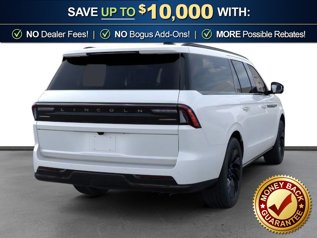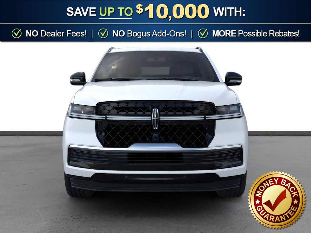 Dealer Discount of $3,132 off MSRP Pristine White Metallic Tri-Coat 2025 Lincoln Navigator L Reserve NLT 4WD 10-Speed Automatic 3.5L V6 26mm Engine Radiator, 28 Speakers, 3rd row seats: split-bench, 4-Wheel Disc Brakes, ABS brakes, Adaptive suspension, Adjustable pedals, Air Conditioning, Alloy wheels, AM/FM radio: SiriusXM with 360L, Apple CarPlay/Android Auto, Audio memory, Auto High-beam Headlights, Auto Htd & Ventilated Premium Lthr Captain's Chair, Auto Start-Stop Technology, Auto tilt-away steering wheel, Auto-dimming door mirrors, Auto-dimming Rear-View mirror, Auto-leveling suspension, Automatic temperature control, Black Accent Badge, Black Accent Interior Pack, Black Beltline Molding, Black Painted Roof Rails, Brake assist, Bumpers: body-color, Compass, Delay-off headlights, Driver door bin, Driver vanity mirror, Driver's Seat Mounted Armrest, Dual front impact airbags, Dual front side impact airbags, Electronic Stability Control, Emergency communication system: 911 Assist, Equipment Group 202A Reserve II, Exterior Parking Camera Rear, Four wheel independent suspension, Front anti-roll bar, Front Bucket Seats, Front Bumper Fascia, Front dual zone A/C, Front reading lights, Fully automatic headlights, Garage door transmitter, Heated door mirrors, Heated front seats, Heated rear seats, Heated steering wheel, Heavy-Duty Trailer Tow Package, HVAC memory, Illuminated entry, Jet Appearance Package, Leather steering wheel, Lincoln Connect, Lincoln Lit Star, Lincoln Premium Connectivity, Low tire pressure warning, Memory seat, Navigation system: Connected Navigation (1-year trial), Occupant sensing airbag, Outside temperature display, Overhead airbag, Overhead console, Panic alarm, Passenger door bin, Passenger seat mounted armrest, Passenger vanity mirror, Pedal memory, Power adjustable front head restraints, Power adjustable rear head restraints, Power door mirrors, Power driver seat, Power moonroof, Power passenger seat, Power steering, Power windows, Radio data system, Radio: Revel Ultima 3D AM/FM/HD Audio System, Rain sensing wipers, Rear air conditioning, Rear anti-roll bar, Rear audio controls, Rear reading lights, Rear window defroster, Rear window wiper, Reclining 3rd row seat, Remote keyless entry, Security system, SiriusXM w/360L, Speed control, Speed-sensing steering, Speed-Sensitive Wipers, Split folding rear seat, Spoiler, Steering wheel memory, Steering wheel mounted audio controls, Tachometer, Telescoping steering wheel, Tilt steering wheel, Traction control, Trailer Brake Controller, Trip computer, Turn signal indicator mirrors, Unique Lincoln Grille Pillar Black Surround, Variably intermittent wipers, Ventilated front seats, Wheels: 22" Dark Tarnished Aluminum, Wheels: 22" High-Gloss Ebony Aluminum. Price includes: $3000 - Retail Customer Cash. Exp. 03/31/2026