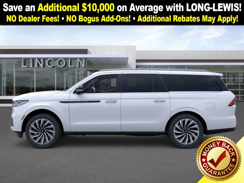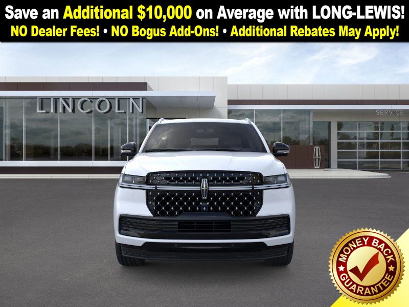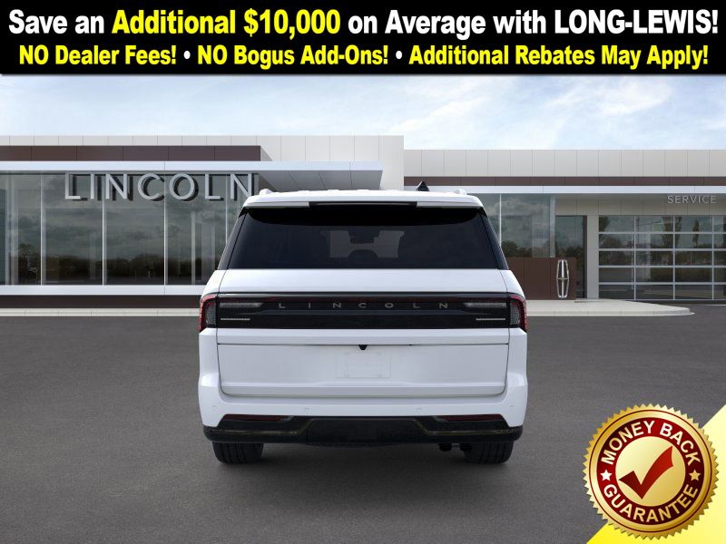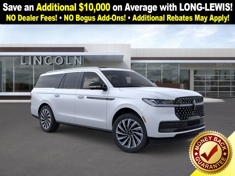 Dealer Discount of $2,918 off MSRP Priced below KBB Fair Purchase Price! Crystal White Metallic Clearcoat 2025 Lincoln Navigator L Black Label NLT 4WD 10-Speed Automatic 3.5L V6 28 Speakers, 3rd row seats: split-bench, 4-Wheel Disc Brakes, A/V remote, ABS brakes, Adaptive suspension, Adjustable pedals, Air Conditioning, Alloy wheels, AM/FM radio: SiriusXM with 360L, Apple CarPlay/Android Auto, Audio memory, Auto High-beam Headlights, Auto Htd & Ventilated Opulence Lthr Capt Chair, Auto Htd & Ventilated Opulence Lthr Capt Chair (V), Auto Start-Stop Technology, Auto tilt-away steering wheel, Auto-dimming door mirrors, Auto-dimming Rear-View mirror, Auto-leveling suspension, Automatic temperature control, Brake assist, Bumpers: body-color, Compass, Delay-off headlights, Driver door bin, Driver vanity mirror, Driver's Seat Mounted Armrest, Dual front impact airbags, Dual front side impact airbags, Electronic Stability Control, Emergency communication system: 911 Assist, Enlighten Theme, Equipment Group 800A Black Label, Exterior Parking Camera Rear, Four wheel independent suspension, Front anti-roll bar, Front Bucket Seats, Front dual zone A/C, Front reading lights, Fully automatic headlights, Garage door transmitter, Head restraints memory, Headphones, Heated door mirrors, Heated front seats, Heated rear seats, Heated steering wheel, HVAC memory, Illuminated entry, Invitation Theme, Leather steering wheel, Lincoln Connect, Lincoln Premium Connectivity, Low tire pressure warning, Memory seat, Navigation system: Connected Navigation (1-year trial), Occupant sensing airbag, Outside temperature display, Overhead airbag, Overhead console, Panic alarm, Passenger door bin, Passenger seat mounted armrest, Passenger vanity mirror, Pedal memory, Power adjustable front head restraints, Power adjustable rear head restraints, Power door mirrors, Power driver seat, Power moonroof, Power passenger seat, Power steering, Power windows, Radio data system, Radio: Revel Ultima 3D AM/FM/HD Audio System, Rain sensing wipers, Rear air conditioning, Rear anti-roll bar, Rear audio controls, Rear reading lights, Rear seat center armrest, Rear window defroster, Rear window wiper, Reclining 3rd row seat, Remote keyless entry, Security system, SiriusXM w/360L, Speed control, Speed-sensing steering, Speed-Sensitive Wipers, Split folding rear seat, Spoiler, Steering wheel memory, Steering wheel mounted audio controls, Tachometer, Telescoping steering wheel, Tilt steering wheel, Traction control, Trip computer, Turn signal indicator mirrors, Variably intermittent wipers, Ventilated front seats, Ventilated rear seats, Wheels: 22" High-Gloss Ebony Aluminum. Price includes: $2000 - Wishlist Bonus Cash. Exp. 01/02/2026