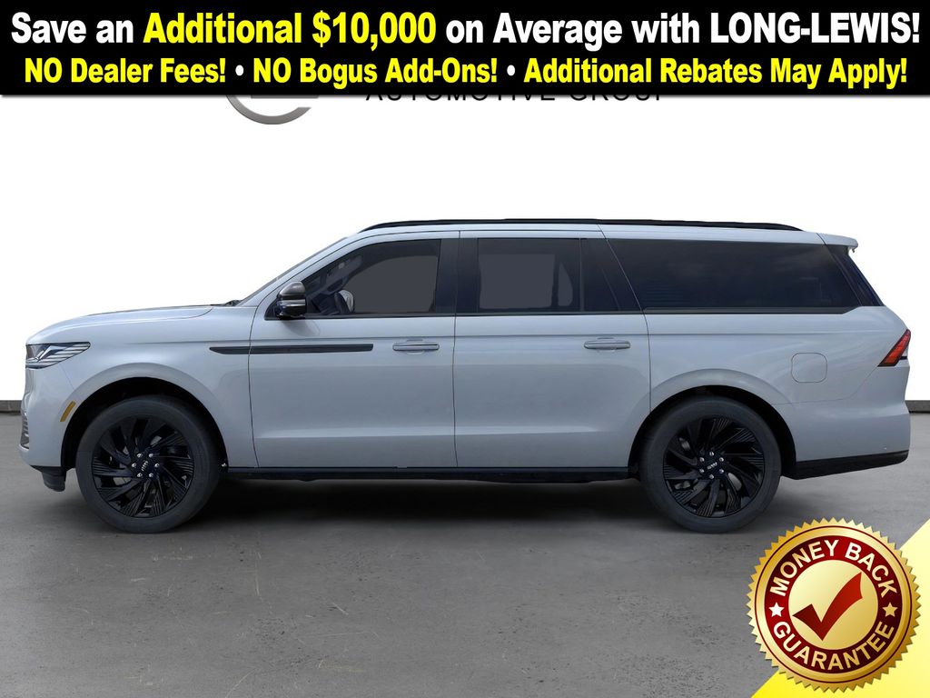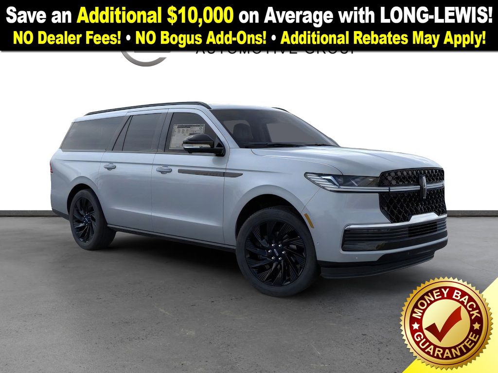Gray Mist Metallic Tri-Coat 2025 Lincoln Navigator L Reserve NLT 4WD 10-Speed Automatic 3.5L V6 28 Speakers, 3rd row seats: split-bench, 4-Wheel Disc Brakes, ABS brakes, Adaptive suspension, Adjustable pedals, Air Conditioning, Alloy wheels, AM/FM radio: SiriusXM with 360L, Apple CarPlay/Android Auto, Audio memory, Auto High-beam Headlights, Auto Htd & Ventilated Premium Lthr Captain's Chair, Auto Start-Stop Technology, Auto tilt-away steering wheel, Auto-dimming door mirrors, Auto-dimming Rear-View mirror, Auto-leveling suspension, Automatic temperature control, Black Accent Badge, Black Accent Interior Pack, Black Beltline Molding, Black Painted Roof Rails, Brake assist, Bumpers: body-color, Compass, Delay-off headlights, Driver door bin, Driver vanity mirror, Driver's Seat Mounted Armrest, Dual front impact airbags, Dual front side impact airbags, Electronic Stability Control, Emergency communication system: 911 Assist, Equipment Group 202A Reserve II, Exterior Parking Camera Rear, Four wheel independent suspension, Front anti-roll bar, Front Bucket Seats, Front Bumper Fascia, Front dual zone A/C, Front reading lights, Fully automatic headlights, Garage door transmitter, Heated door mirrors, Heated front seats, Heated rear seats, Heated steering wheel, HVAC memory, Illuminated entry, Jet Appearance Package, Leather steering wheel, Lincoln Connect, Lincoln Lit Star, Lincoln Premium Connectivity, Low tire pressure warning, Memory seat, Navigation system: Connected Navigation (1-year trial), Occupant sensing airbag, Outside temperature display, Overhead airbag, Overhead console, Panic alarm, Passenger door bin, Passenger seat mounted armrest, Passenger vanity mirror, Pedal memory, Power adjustable front head restraints, Power adjustable rear head restraints, Power door mirrors, Power driver seat, Power moonroof, Power passenger seat, Power steering, Power windows, Radio data system, Radio: Revel Ultima 3D AM/FM/HD Audio System, Rain sensing wipers, Rear air conditioning, Rear anti-roll bar, Rear audio controls, Rear reading lights, Rear window defroster, Rear window wiper, Reclining 3rd row seat, Remote keyless entry, Security system, SiriusXM w/360L, Speed control, Speed-sensing steering, Speed-Sensitive Wipers, Split folding rear seat, Spoiler, Steering wheel memory, Steering wheel mounted audio controls, Tachometer, Telescoping steering wheel, Tilt steering wheel, Traction control, Trip computer, Turn signal indicator mirrors, Unique Lincoln Grille Pillar Black Surround, Variably intermittent wipers, Ventilated front seats, Wheels: 22" Dark Tarnished Aluminum, Wheels: 22" High-Gloss Ebony Aluminum.