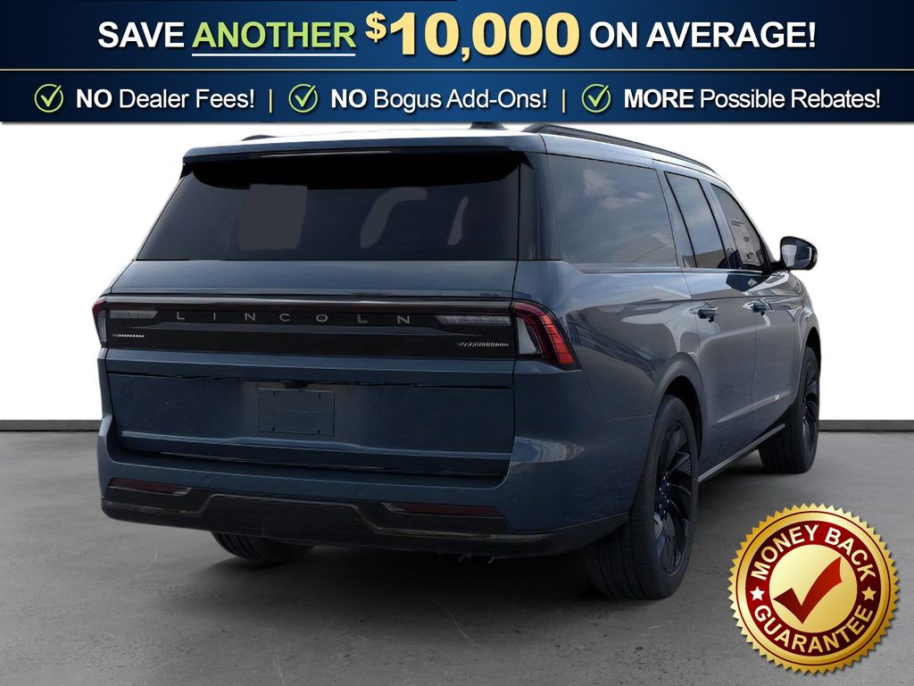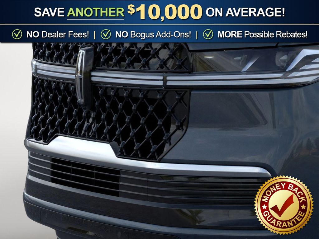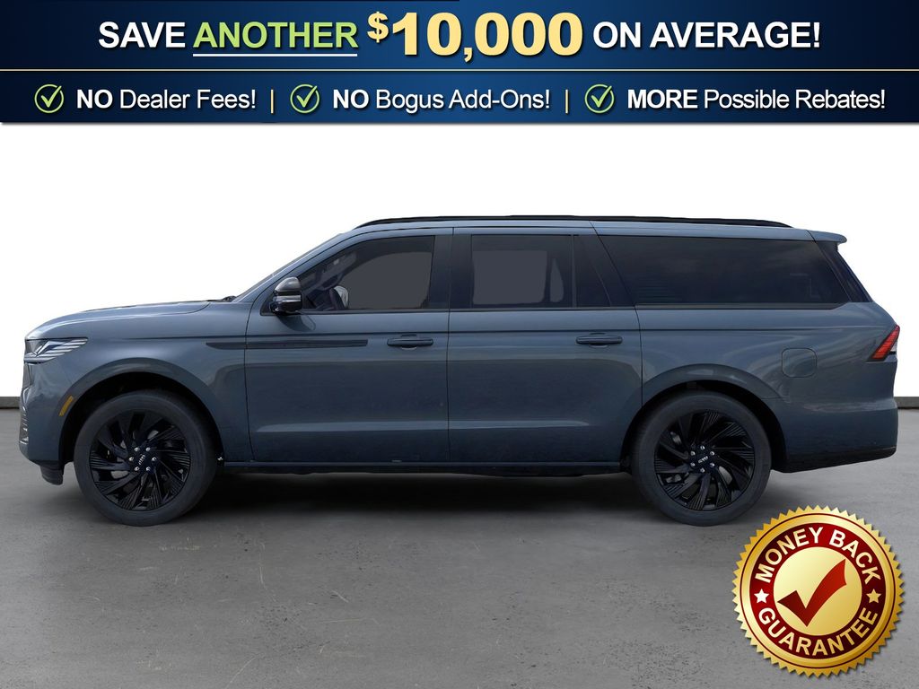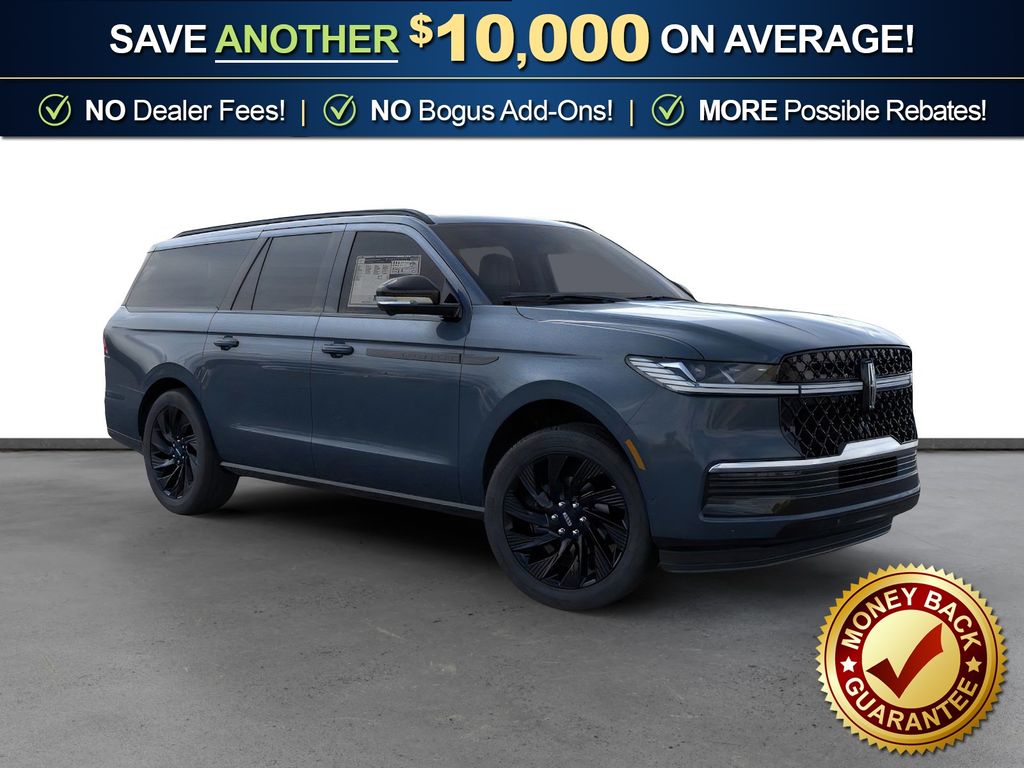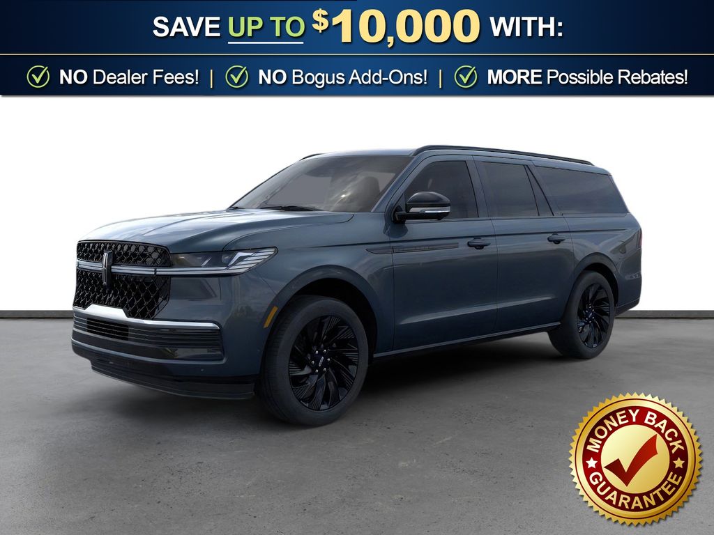 Flight Blue Metallic Clearcoat 2025 Lincoln Navigator L Reserve NLT 4WD 10-Speed Automatic 3.5L V6 28 Speakers, 3rd row seats: split-bench, 4-Wheel Disc Brakes, ABS brakes, Adaptive suspension, Adjustable pedals, Air Conditioning, Alloy wheels, AM/FM radio: SiriusXM with 360L, Apple CarPlay/Android Auto, Audio memory, Auto High-beam Headlights, Auto Htd & Ventilated Premium Lthr Captain's Chair, Auto Start-Stop Technology, Auto tilt-away steering wheel, Auto-dimming door mirrors, Auto-dimming Rear-View mirror, Auto-leveling suspension, Automatic temperature control, Black Accent Badge, Black Accent Interior Pack, Black Beltline Molding, Black Painted Roof Rails, Brake assist, Bumpers: body-color, Compass, Delay-off headlights, Driver door bin, Driver vanity mirror, Driver's Seat Mounted Armrest, Dual front impact airbags, Dual front side impact airbags, Electronic Stability Control, Emergency communication system: 911 Assist, Exterior Parking Camera Rear, Four wheel independent suspension, Front anti-roll bar, Front Bucket Seats, Front Bumper Fascia, Front dual zone A/C, Front reading lights, Fully automatic headlights, Garage door transmitter, Heated door mirrors, Heated front seats, Heated rear seats, Heated steering wheel, HVAC memory, Illuminated entry, Jet Appearance Package, Leather steering wheel, Lincoln Connect, Lincoln Lit Star, Lincoln Premium Connectivity, Low tire pressure warning, Memory seat, Navigation system: Connected Navigation (1-year trial), Occupant sensing airbag, Outside temperature display, Overhead airbag, Overhead console, Panic alarm, Passenger door bin, Passenger seat mounted armrest, Passenger vanity mirror, Pedal memory, Power adjustable front head restraints, Power adjustable rear head restraints, Power door mirrors, Power driver seat, Power moonroof, Power passenger seat, Power steering, Power windows, Radio data system, Radio: Revel Ultima 3D AM/FM/HD Audio System, Rain sensing wipers, Rear air conditioning, Rear anti-roll bar, Rear audio controls, Rear reading lights, Rear window defroster, Rear window wiper, Reclining 3rd row seat, Remote keyless entry, Security system, SiriusXM w/360L, Speed control, Speed-sensing steering, Speed-Sensitive Wipers, Split folding rear seat, Spoiler, Steering wheel memory, Steering wheel mounted audio controls, Tachometer, Telescoping steering wheel, Tilt steering wheel, Traction control, Trip computer, Turn signal indicator mirrors, Unique Lincoln Grille Pillar Black Surround, Variably intermittent wipers, Ventilated front seats, Wheels: 22" Dark Tarnished Aluminum, Wheels: 22" High-Gloss Ebony Aluminum.