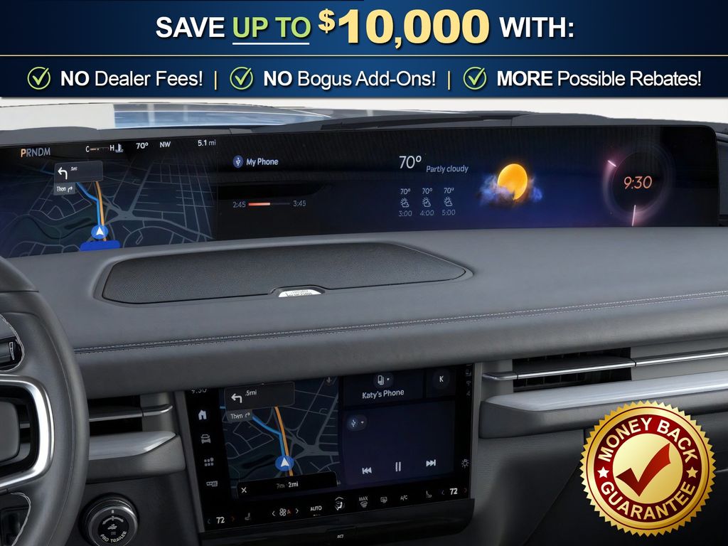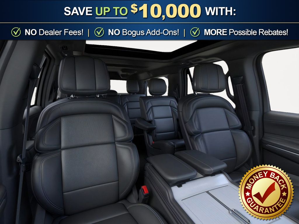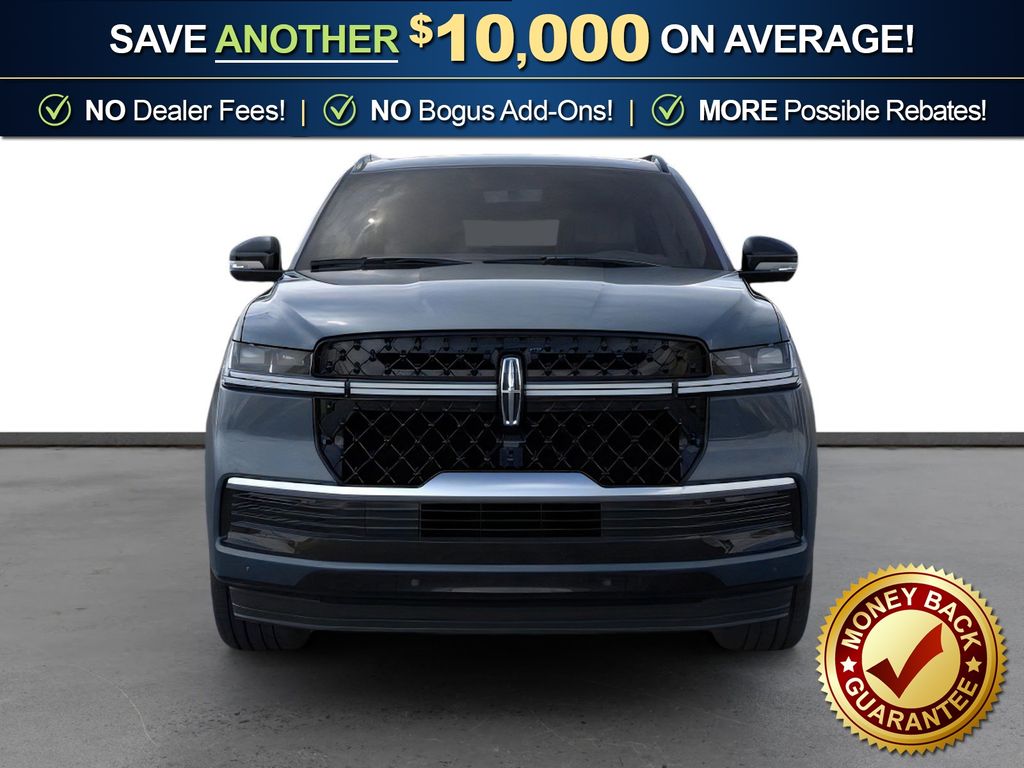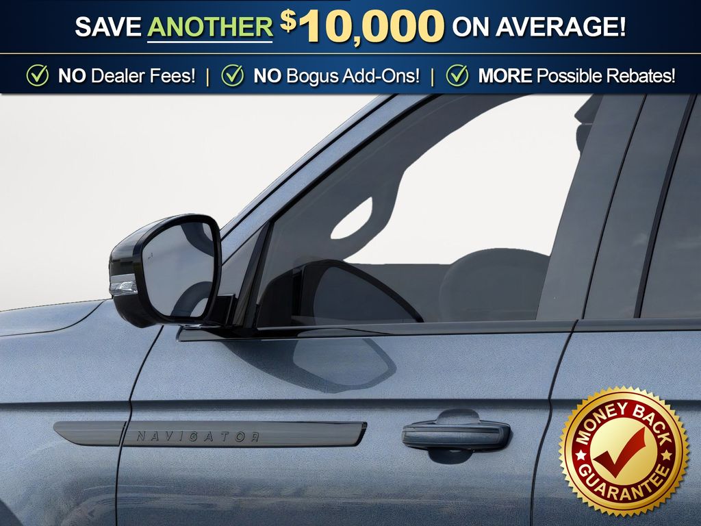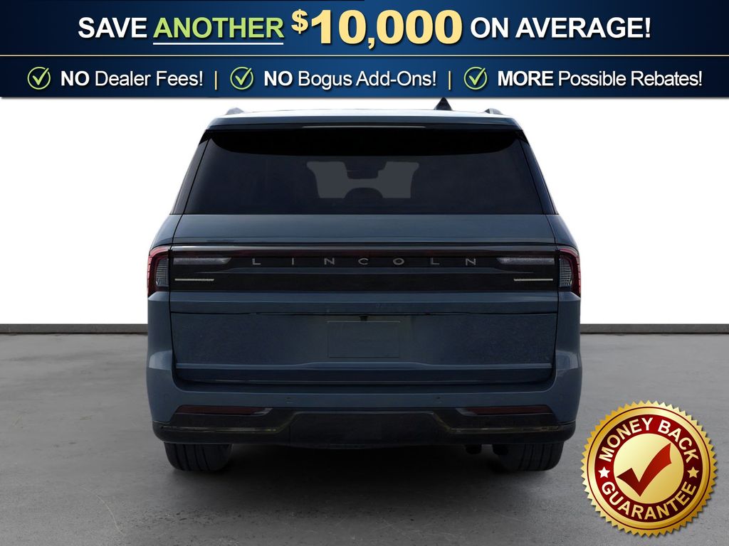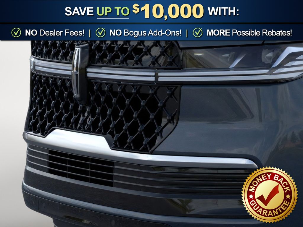 Flight Blue Metallic Clearcoat 2025 Lincoln Navigator L Reserve NLT 4WD 10-Speed Automatic 3.5L V6 28 Speakers, 3rd row seats: split-bench, 4-Wheel Disc Brakes, ABS brakes, Adaptive suspension, Adjustable pedals, Air Conditioning, Alloy wheels, AM/FM radio: SiriusXM with 360L, Apple CarPlay/Android Auto, Audio memory, Auto High-beam Headlights, Auto Htd & Ventilated Premium Lthr Captain's Chair, Auto Start-Stop Technology, Auto tilt-away steering wheel, Auto-dimming door mirrors, Auto-dimming Rear-View mirror, Auto-leveling suspension, Automatic temperature control, Black Accent Badge, Black Accent Interior Pack, Black Beltline Molding, Black Painted Roof Rails, Brake assist, Bumpers: body-color, Compass, Delay-off headlights, Driver door bin, Driver vanity mirror, Driver's Seat Mounted Armrest, Dual front impact airbags, Dual front side impact airbags, Electronic Stability Control, Emergency communication system: 911 Assist, Exterior Parking Camera Rear, Four wheel independent suspension, Front anti-roll bar, Front Bucket Seats, Front Bumper Fascia, Front dual zone A/C, Front reading lights, Fully automatic headlights, Garage door transmitter, Heated door mirrors, Heated front seats, Heated rear seats, Heated steering wheel, HVAC memory, Illuminated entry, Jet Appearance Package, Leather steering wheel, Lincoln Connect, Lincoln Lit Star, Lincoln Premium Connectivity, Low tire pressure warning, Memory seat, Navigation system: Connected Navigation (1-year trial), Occupant sensing airbag, Outside temperature display, Overhead airbag, Overhead console, Panic alarm, Passenger door bin, Passenger seat mounted armrest, Passenger vanity mirror, Pedal memory, Power adjustable front head restraints, Power adjustable rear head restraints, Power door mirrors, Power driver seat, Power moonroof, Power passenger seat, Power steering, Power windows, Radio data system, Radio: Revel Ultima 3D AM/FM/HD Audio System, Rain sensing wipers, Rear air conditioning, Rear anti-roll bar, Rear audio controls, Rear reading lights, Rear window defroster, Rear window wiper, Reclining 3rd row seat, Remote keyless entry, Security system, SiriusXM w/360L, Speed control, Speed-sensing steering, Speed-Sensitive Wipers, Split folding rear seat, Spoiler, Steering wheel memory, Steering wheel mounted audio controls, Tachometer, Telescoping steering wheel, Tilt steering wheel, Traction control, Trip computer, Turn signal indicator mirrors, Unique Lincoln Grille Pillar Black Surround, Variably intermittent wipers, Ventilated front seats, Wheels: 22" Dark Tarnished Aluminum, Wheels: 22" High-Gloss Ebony Aluminum.