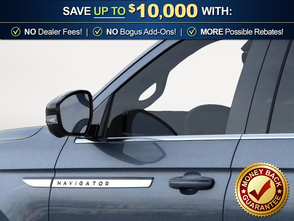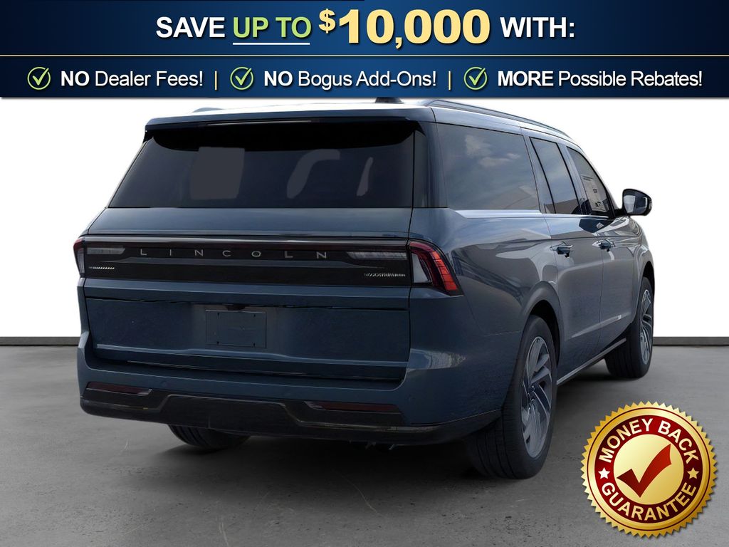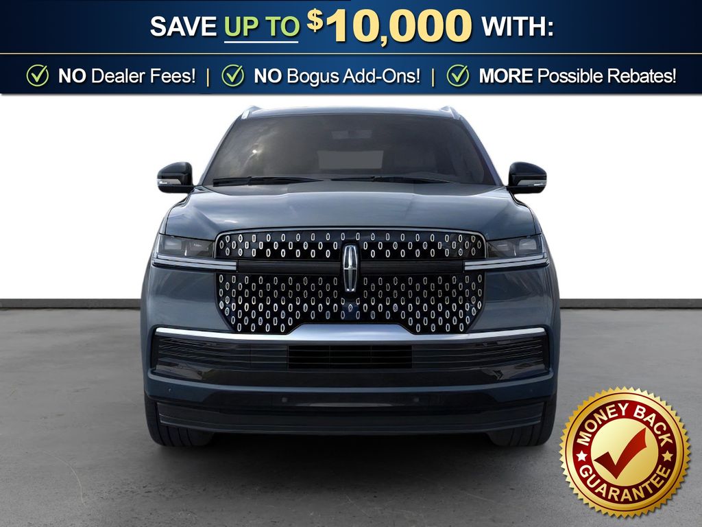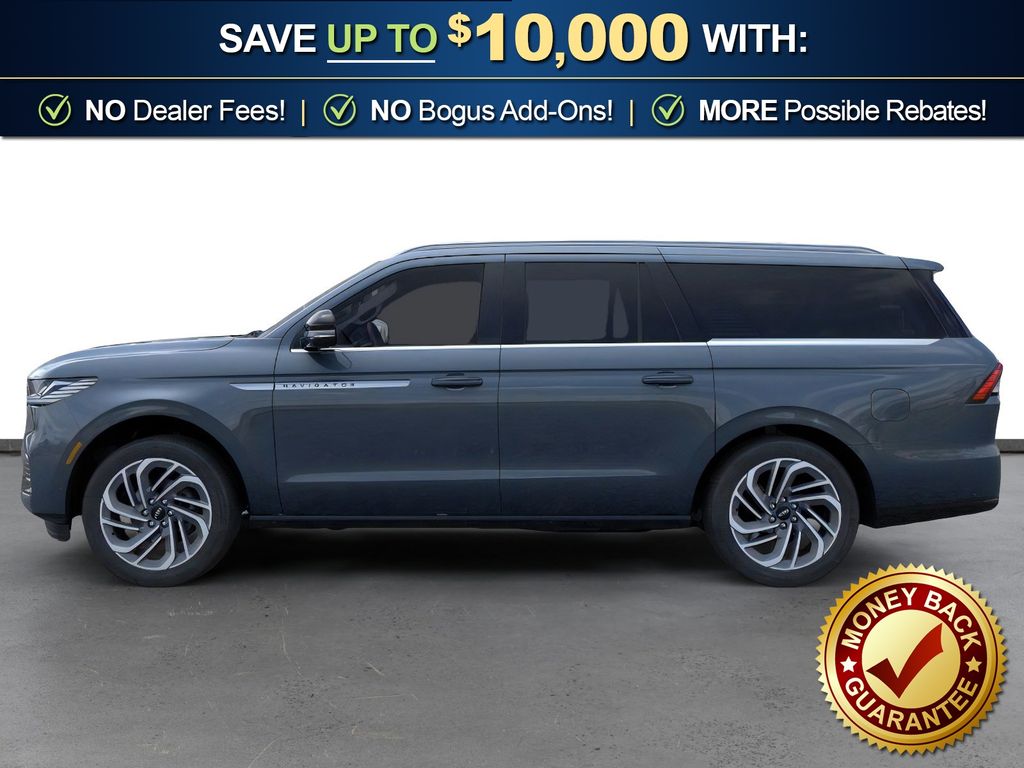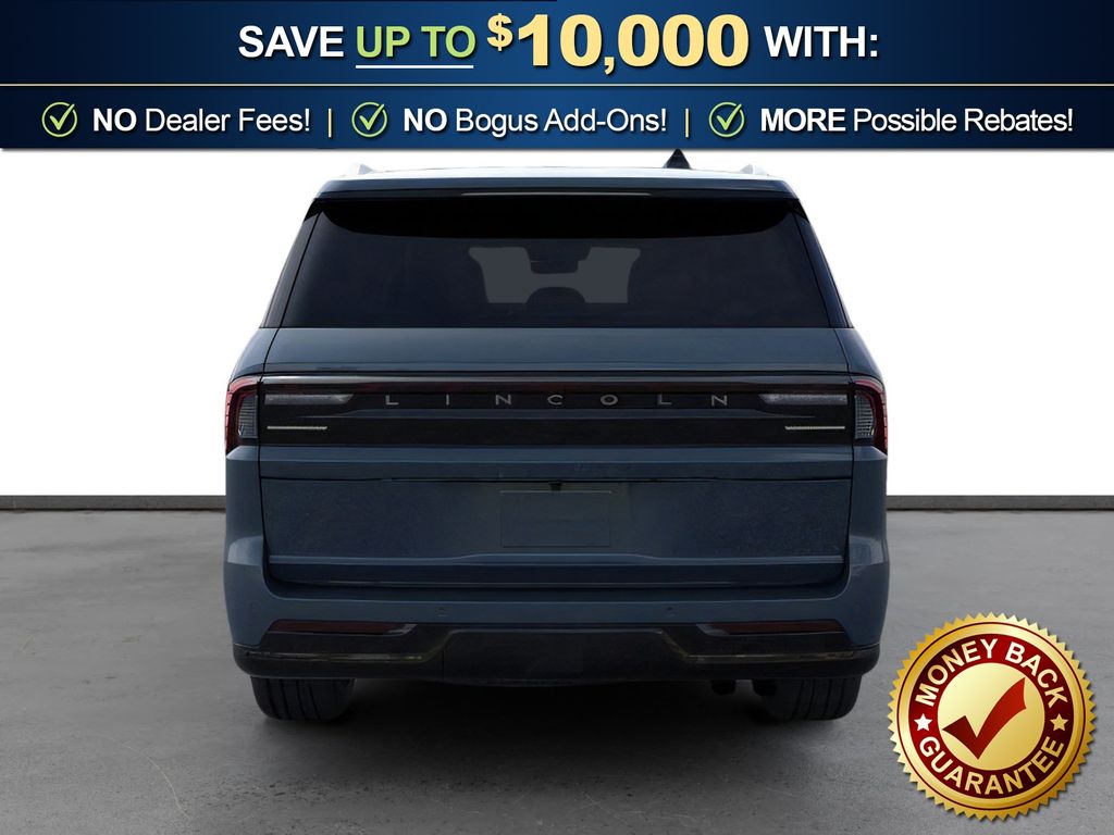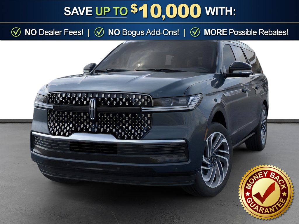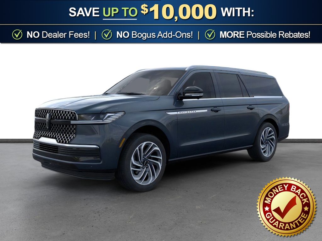 Flight Blue Metallic Clearcoat 2025 Lincoln Navigator L Reserve fctp 4WD 10-Speed Automatic 3.5L V6 26mm Engine Radiator, 28 Speakers, 2nd Row Heated & Ventilated Dual Captain's Chair, 3rd row seats: split-bench, 4-Wheel Disc Brakes, ABS brakes, Adaptive suspension, Adjustable pedals, Air Conditioning, Alloy wheels, AM/FM radio: SiriusXM with 360L, Apple CarPlay/Android Auto, Audio memory, Auto High-beam Headlights, Auto Htd & Ventilated Premium Lthr Captain's Chair, Auto Start-Stop Technology, Auto tilt-away steering wheel, Auto-dimming door mirrors, Auto-dimming Rear-View mirror, Auto-leveling suspension, Automatic temperature control, Brake assist, Bumpers: body-color, Compass, Delay-off headlights, Driver door bin, Driver vanity mirror, Driver's Seat Mounted Armrest, Dual front impact airbags, Dual front side impact airbags, Electronic Stability Control, Emergency communication system: 911 Assist, Exterior Parking Camera Rear, Four wheel independent suspension, Front anti-roll bar, Front Bucket Seats, Front dual zone A/C, Front reading lights, Fully automatic headlights, Garage door transmitter, Heated door mirrors, Heated front seats, Heated rear seats, Heated steering wheel, Heavy-Duty Trailer Tow Package, HVAC memory, Illuminated entry, Leather steering wheel, Lincoln Connect, Lincoln Premium Connectivity, Low tire pressure warning, Memory seat, Navigation system: Connected Navigation (1-year trial), Occupant sensing airbag, Outside temperature display, Overhead airbag, Overhead console, Panic alarm, Passenger door bin, Passenger seat mounted armrest, Passenger vanity mirror, Pedal memory, Power adjustable front head restraints, Power adjustable rear head restraints, Power door mirrors, Power driver seat, Power moonroof, Power passenger seat, Power steering, Power windows, Radio data system, Radio: Revel Ultima 3D AM/FM/HD Audio System, Rain sensing wipers, Rear air conditioning, Rear anti-roll bar, Rear audio controls, Rear reading lights, Rear window defroster, Rear window wiper, Reclining 3rd row seat, Remote keyless entry, Security system, SiriusXM w/360L, Speed control, Speed-sensing steering, Speed-Sensitive Wipers, Split folding rear seat, Spoiler, Steering wheel memory, Steering wheel mounted audio controls, Tachometer, Telescoping steering wheel, Tilt steering wheel, Traction control, Trailer Brake Controller, Trip computer, Turn signal indicator mirrors, Variably intermittent wipers, Ventilated front seats, Wheels: 22" Dark Tarnished Aluminum.