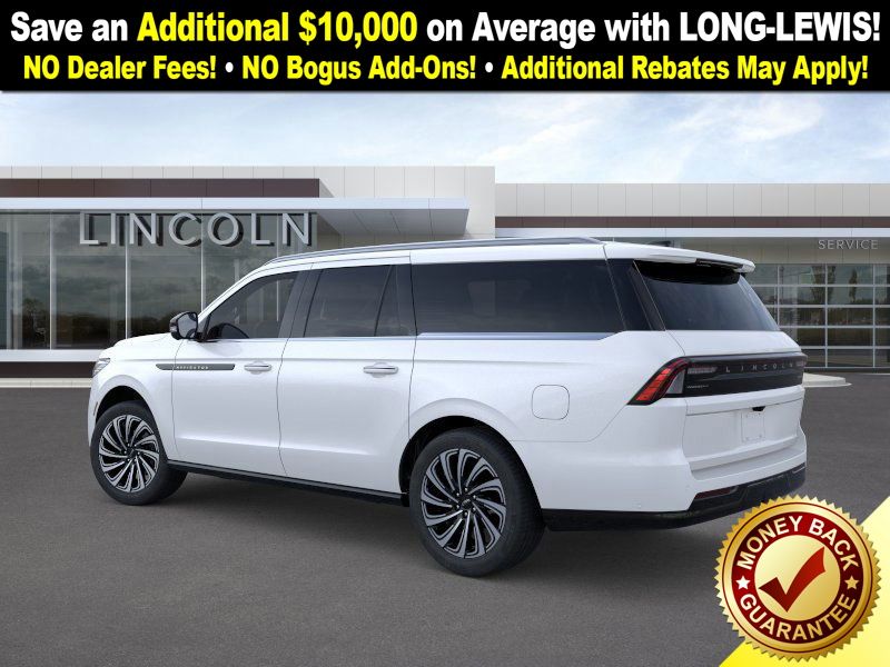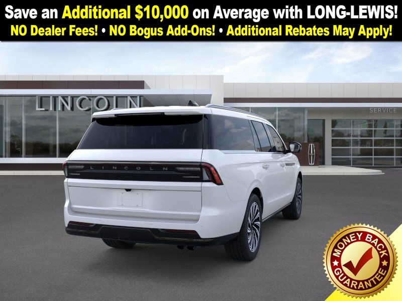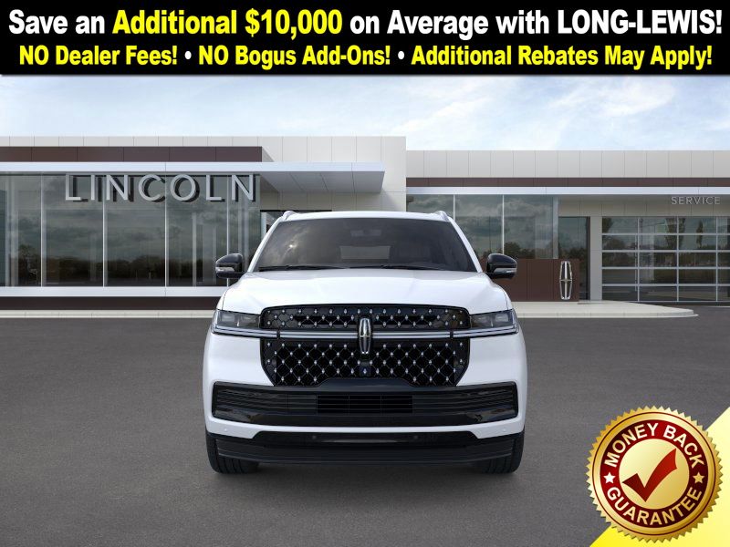 Dealer Discount of $2,934 off MSRP Priced below KBB Fair Purchase Price! Pristine White Metallic Tri-Coat 2025 Lincoln Navigator L Black Label NLT 4WD 10-Speed Automatic 3.5L V6 28 Speakers, 3rd row seats: split-bench, 4-Wheel Disc Brakes, A/V remote, ABS brakes, Adaptive suspension, Adjustable pedals, Air Conditioning, Alloy wheels, AM/FM radio: SiriusXM with 360L, Apple CarPlay/Android Auto, Audio memory, Auto High-beam Headlights, Auto Htd & Ventilated Opulence Lthr Capt Chair, Auto Htd & Ventilated Opulence Lthr Capt Chair (V), Auto Start-Stop Technology, Auto tilt-away steering wheel, Auto-dimming door mirrors, Auto-dimming Rear-View mirror, Auto-leveling suspension, Automatic temperature control, Brake assist, Bumpers: body-color, Compass, Delay-off headlights, Driver door bin, Driver vanity mirror, Driver's Seat Mounted Armrest, Dual front impact airbags, Dual front side impact airbags, Electronic Stability Control, Emergency communication system: 911 Assist, Enlighten Theme, Exterior Parking Camera Rear, Four wheel independent suspension, Front anti-roll bar, Front Bucket Seats, Front dual zone A/C, Front reading lights, Fully automatic headlights, Garage door transmitter, Head restraints memory, Headphones, Heated door mirrors, Heated front seats, Heated rear seats, Heated steering wheel, HVAC memory, Illuminated entry, Invitation Theme, Leather steering wheel, Lincoln Connect, Lincoln Premium Connectivity, Low tire pressure warning, Memory seat, Navigation system: Connected Navigation (1-year trial), Occupant sensing airbag, Outside temperature display, Overhead airbag, Overhead console, Panic alarm, Passenger door bin, Passenger seat mounted armrest, Passenger vanity mirror, Pedal memory, Power adjustable front head restraints, Power adjustable rear head restraints, Power door mirrors, Power driver seat, Power moonroof, Power passenger seat, Power steering, Power windows, Radio data system, Radio: Revel Ultima 3D AM/FM/HD Audio System, Rain sensing wipers, Rear air conditioning, Rear anti-roll bar, Rear audio controls, Rear reading lights, Rear seat center armrest, Rear window defroster, Rear window wiper, Reclining 3rd row seat, Remote keyless entry, Security system, SiriusXM w/360L, Speed control, Speed-sensing steering, Speed-Sensitive Wipers, Split folding rear seat, Spoiler, Steering wheel memory, Steering wheel mounted audio controls, Tachometer, Telescoping steering wheel, Tilt steering wheel, Traction control, Trip computer, Turn signal indicator mirrors, Variably intermittent wipers, Ventilated front seats, Ventilated rear seats, Wheels: 22" High-Gloss Ebony Aluminum.