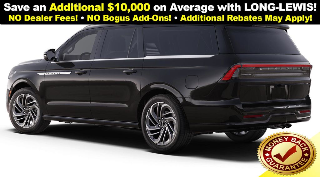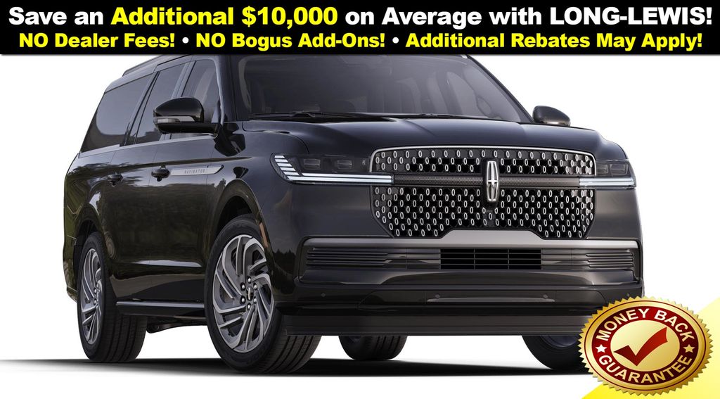 Dealer Discount of $2,223 off MSRP Infinite Black Metallic Clearcoat 2025 Lincoln Navigator L Reserve NLT 4WD 10-Speed Automatic 3.5L V6 28 Speakers, 3rd row seats: split-bench, 4-Wheel Disc Brakes, ABS brakes, Adaptive suspension, Adjustable pedals, Air Conditioning, Alloy wheels, AM/FM radio: SiriusXM with 360L, Apple CarPlay/Android Auto, Audio memory, Auto High-beam Headlights, Auto Htd & Ventilated Premium Lthr Captain's Chair, Auto Start-Stop Technology, Auto tilt-away steering wheel, Auto-dimming door mirrors, Auto-dimming Rear-View mirror, Auto-leveling suspension, Automatic temperature control, Brake assist, Bumpers: body-color, Compass, Delay-off headlights, Driver door bin, Driver vanity mirror, Driver's Seat Mounted Armrest, Dual front impact airbags, Dual front side impact airbags, Electronic Stability Control, Emergency communication system: 911 Assist, Exterior Parking Camera Rear, Four wheel independent suspension, Front anti-roll bar, Front Bucket Seats, Front dual zone A/C, Front reading lights, Fully automatic headlights, Garage door transmitter, Heated door mirrors, Heated front seats, Heated rear seats, Heated steering wheel, HVAC memory, Illuminated entry, Leather steering wheel, Lincoln Connect, Lincoln Premium Connectivity, Low tire pressure warning, Memory seat, Navigation system: Connected Navigation (1-year trial), Occupant sensing airbag, Outside temperature display, Overhead airbag, Overhead console, Panic alarm, Passenger door bin, Passenger seat mounted armrest, Passenger vanity mirror, Pedal memory, Power adjustable front head restraints, Power adjustable rear head restraints, Power door mirrors, Power driver seat, Power moonroof, Power passenger seat, Power steering, Power windows, Radio data system, Radio: Revel Ultima 3D AM/FM/HD Audio System, Rain sensing wipers, Rear air conditioning, Rear anti-roll bar, Rear audio controls, Rear reading lights, Rear window defroster, Rear window wiper, Reclining 3rd row seat, Remote keyless entry, Security system, SiriusXM w/360L, Speed control, Speed-sensing steering, Speed-Sensitive Wipers, Split folding rear seat, Spoiler, Steering wheel memory, Steering wheel mounted audio controls, Tachometer, Telescoping steering wheel, Tilt steering wheel, Traction control, Trip computer, Turn signal indicator mirrors, Variably intermittent wipers, Ventilated front seats, Wheels: 22" Dark Tarnished Aluminum. Price includes: $2000 - Wishlist Bonus Cash. Exp. 01/02/2026