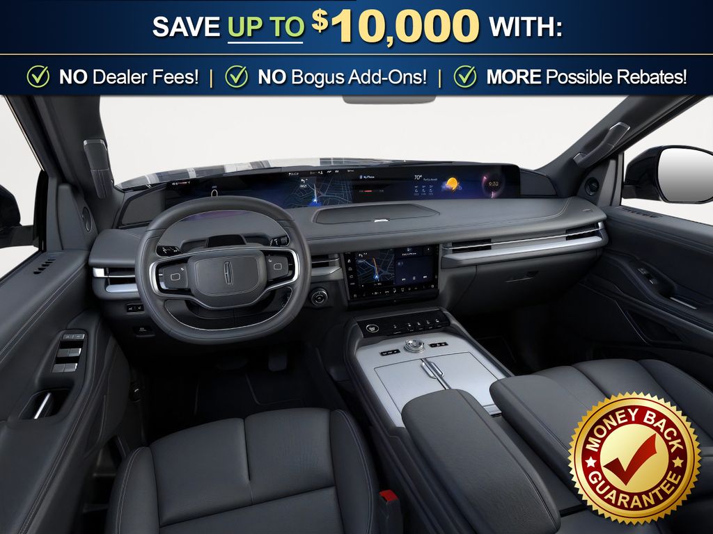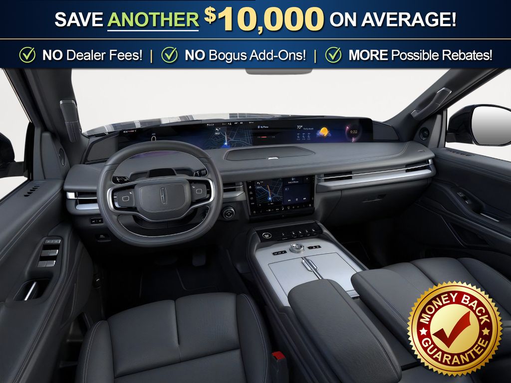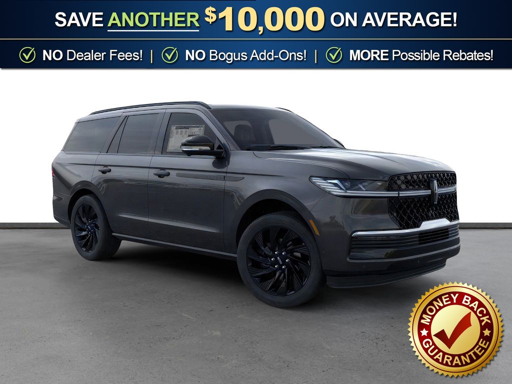 Starlight Gray Premium Colorant 2025 Lincoln Navigator Reserve FCT 4WD 10-Speed Automatic 3.5L V6 4WD, Black Onyx Leather, 28 Speakers, 3rd row seats: split-bench, 4-Wheel Disc Brakes, ABS brakes, Adaptive suspension, Adjustable pedals, Air Conditioning, Alloy wheels, AM/FM radio: SiriusXM with 360L, Apple CarPlay/Android Auto, Audio memory, Auto High-beam Headlights, Auto Htd & Ventilated Premium Lthr Captain's Chair, Auto Start-Stop Technology, Auto tilt-away steering wheel, Auto-dimming door mirrors, Auto-dimming Rear-View mirror, Auto-leveling suspension, Automatic temperature control, Black Accent Badge, Black Accent Interior Pack, Black Beltline Molding, Black Painted Roof Rails, Brake assist, Bumpers: body-color, Compass, Delay-off headlights, Driver door bin, Driver vanity mirror, Driver's Seat Mounted Armrest, Dual front impact airbags, Dual front side impact airbags, Electronic Stability Control, Emergency communication system: 911 Assist, Exterior Parking Camera Rear, Four wheel independent suspension, Front anti-roll bar, Front Bucket Seats, Front Bumper Fascia, Front dual zone A/C, Front reading lights, Fully automatic headlights, Garage door transmitter, Heated door mirrors, Heated front seats, Heated rear seats, Heated steering wheel, HVAC memory, Illuminated entry, Jet Appearance Package, Leather steering wheel, Lincoln Connect, Lincoln Lit Star, Lincoln Premium Connectivity, Low tire pressure warning, Memory seat, Navigation system: Connected Navigation (1-year trial), Occupant sensing airbag, Outside temperature display, Overhead airbag, Overhead console, Panic alarm, Passenger door bin, Passenger seat mounted armrest, Passenger vanity mirror, Pedal memory, Power adjustable rear head restraints, Power door mirrors, Power driver seat, Power moonroof: Panoramic Vista Roof, Power passenger seat, Power steering, Power windows, Radio data system, Radio: Revel Ultima 3D AM/FM/HD Audio System, Rain sensing wipers, Rear air conditioning, Rear anti-roll bar, Rear audio controls, Rear reading lights, Rear window defroster, Rear window wiper, Reclining 3rd row seat, Remote keyless entry, Security system, SiriusXM w/360L, Speed control, Speed-sensing steering, Speed-Sensitive Wipers, Split folding rear seat, Spoiler, Steering wheel memory, Steering wheel mounted audio controls, Tachometer, Telescoping steering wheel, Tilt steering wheel, Traction control, Trip computer, Turn signal indicator mirrors, Unique Lincoln Grille Pillar Black Surround, Variably intermittent wipers, Ventilated front seats, Wheels: 22" Dark Tarnished Aluminum, Wheels: 22" High-Gloss Ebony Aluminum, 4WD, Black Onyx Leather.