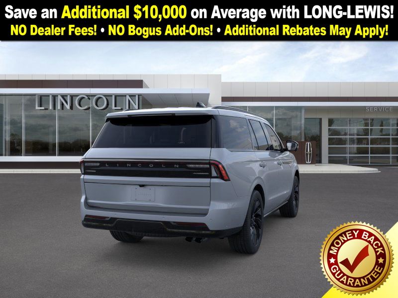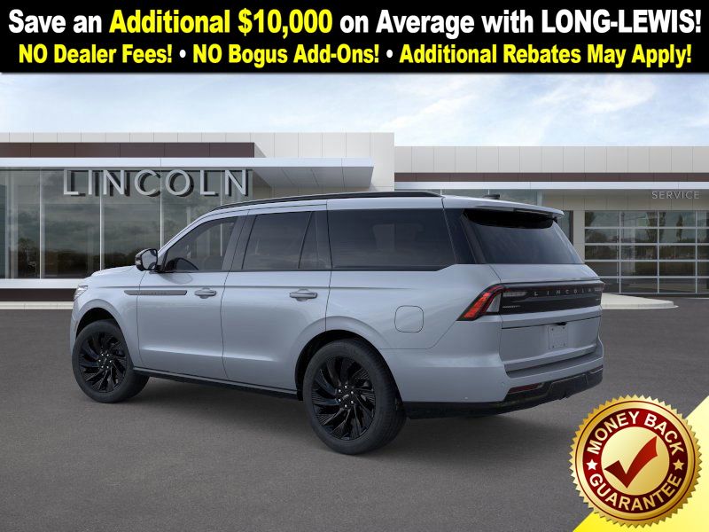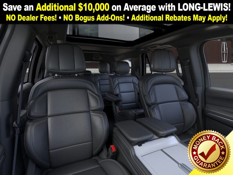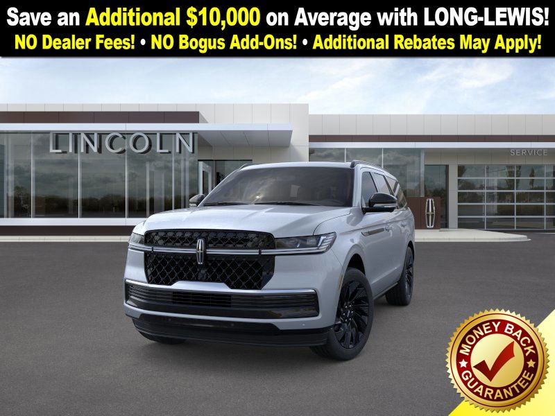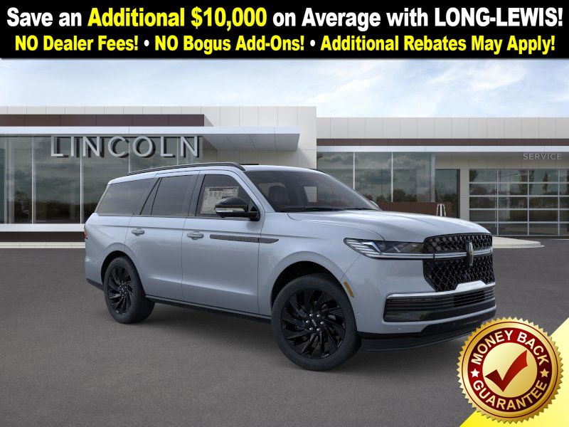 Gray Mist Metallic Tri-Coat 2025 Lincoln Navigator Reserve fctp 4WD 10-Speed Automatic 3.5L V6 4WD, Black Onyx Leather, 28 Speakers, 3rd row seats: split-bench, 4-Wheel Disc Brakes, ABS brakes, Adaptive suspension, Adjustable pedals, Air Conditioning, Alloy wheels, AM/FM radio: SiriusXM with 360L, Apple CarPlay/Android Auto, Audio memory, Auto High-beam Headlights, Auto Htd & Ventilated Premium Lthr Captain's Chair, Auto Start-Stop Technology, Auto tilt-away steering wheel, Auto-dimming door mirrors, Auto-dimming Rear-View mirror, Auto-leveling suspension, Automatic temperature control, Black Accent Badge, Black Accent Interior Pack, Black Beltline Molding, Black Painted Roof Rails, Brake assist, Bumpers: body-color, Compass, Delay-off headlights, Driver door bin, Driver vanity mirror, Driver's Seat Mounted Armrest, Dual front impact airbags, Dual front side impact airbags, Electronic Stability Control, Emergency communication system: 911 Assist, Exterior Parking Camera Rear, Four wheel independent suspension, Front anti-roll bar, Front Bucket Seats, Front Bumper Fascia, Front dual zone A/C, Front reading lights, Fully automatic headlights, Garage door transmitter, Heated door mirrors, Heated front seats, Heated rear seats, Heated steering wheel, HVAC memory, Illuminated entry, Jet Appearance Package, Leather steering wheel, Lincoln Connect, Lincoln Lit Star, Lincoln Premium Connectivity, Low tire pressure warning, Memory seat, Navigation system: Connected Navigation (1-year trial), Occupant sensing airbag, Outside temperature display, Overhead airbag, Overhead console, Panic alarm, Passenger door bin, Passenger seat mounted armrest, Passenger vanity mirror, Pedal memory, Power adjustable rear head restraints, Power door mirrors, Power driver seat, Power moonroof: Panoramic Vista Roof, Power passenger seat, Power steering, Power windows, Radio data system, Radio: Revel Ultima 3D AM/FM/HD Audio System, Rain sensing wipers, Rear air conditioning, Rear anti-roll bar, Rear audio controls, Rear reading lights, Rear window defroster, Rear window wiper, Reclining 3rd row seat, Remote keyless entry, Security system, SiriusXM w/360L, Speed control, Speed-sensing steering, Speed-Sensitive Wipers, Split folding rear seat, Spoiler, Steering wheel memory, Steering wheel mounted audio controls, Tachometer, Telescoping steering wheel, Tilt steering wheel, Traction control, Trip computer, Turn signal indicator mirrors, Unique Lincoln Grille Pillar Black Surround, Variably intermittent wipers, Ventilated front seats, Wheels: 22" Dark Tarnished Aluminum, Wheels: 22" High-Gloss Ebony Aluminum, 4WD, Black Onyx Leather.