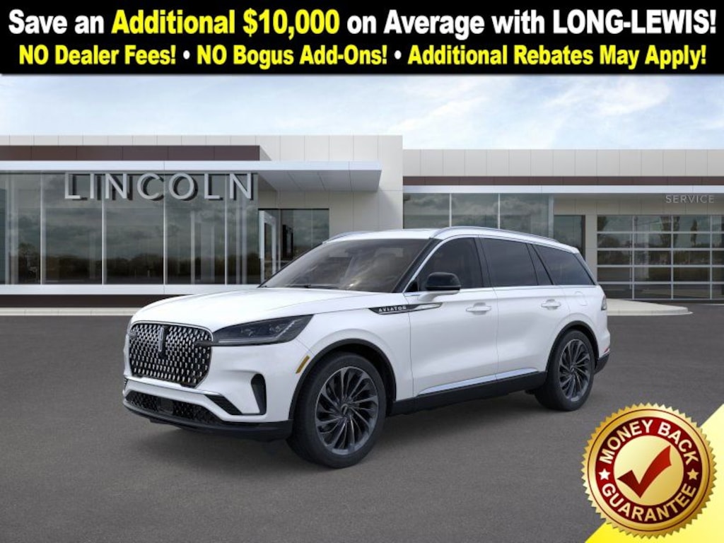Pristine White Metallic Tri-Coat 2026 Lincoln Aviator Reserve NLT RWD 10-Speed Automatic 3.0L V6 14 Speakers, 3rd row seats: split-bench, 4-Wheel Disc Brakes, 40/Mini Console/40 Dual Captain's Chairs, ABS brakes, Adaptive Dynamic Bending Lighting, Adaptive Pixel LED Headlamps, Adaptive suspension, Advanced Heads-Up Display, Air Conditioning, Alloy wheels, AM/FM radio: SiriusXM, Apple CarPlay/Android Auto, Audio memory, Auto Air Refresh, Auto High-beam Headlights, Auto-dimming door mirrors, Auto-dimming Rear-View mirror, Automatic temperature control, Brake assist, Bumpers: body-color, Compass, Delay-off headlights, Driver door bin, Driver vanity mirror, Dual front impact airbags, Dual front side impact airbags, Electronic Stability Control, Emergency communication system: 911 Assist, Equipment Group 200A, Exterior Parking Camera Rear, Four wheel independent suspension, Front anti-roll bar, Front Bucket Seats, Front Center Armrest, Front dual zone A/C, Front reading lights, Fully automatic headlights, Garage door transmitter, Genuine wood console insert, Genuine wood dashboard insert, Heads-Up Display, Heated door mirrors, Heated front seats, Heated steering wheel, HVAC memory, Illuminated entry, Illuminated Lincoln Star in Grille, Illumination Package, Knee airbag, Leather steering wheel, Lincoln BlueCruise Equipped (4-Years Included), Lincoln Connectivity Package (4-years included), Lincoln Digital Experience, Lincoln Dynamic Signature Lighting, Low tire pressure warning, Memory seat, Navigation System, Occupant sensing airbag, Outside temperature display, Overhead airbag, Overhead console, Panic alarm, Passenger door bin, Passenger vanity mirror, Power door mirrors, Power driver seat, Power Liftgate, Power moonroof: Panoramic Vista Roof, Power passenger seat, Power steering, Power windows, Premium Lthr Heated/Ventilated Fnt Captain's Chairs, Radio data system, Radio: Revel Audio System w/14 Speakers, Rain sensing wipers, Rear air conditioning, Rear anti-roll bar, Rear audio controls, Rear dual zone A/C, Rear reading lights, Rear window defroster, Rear window wiper, Remote keyless entry, Security system, SiriusXM, Speed control, Speed Dependent Lighting, Speed-Sensitive Wipers, Split folding rear seat, Spoiler, Steering wheel memory, Steering wheel mounted A/C controls, Steering wheel mounted audio controls, Tachometer, Telescoping steering wheel, Tilt steering wheel, Traction control, Trip computer, Turn signal indicator mirrors, Variably intermittent wipers, Ventilated front seats, Wheels: 21" Bright-Machined Aluminum, Wheels: 22" Bright-Machined Aluminum, Wireless Charging Pad.