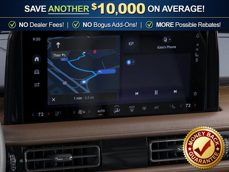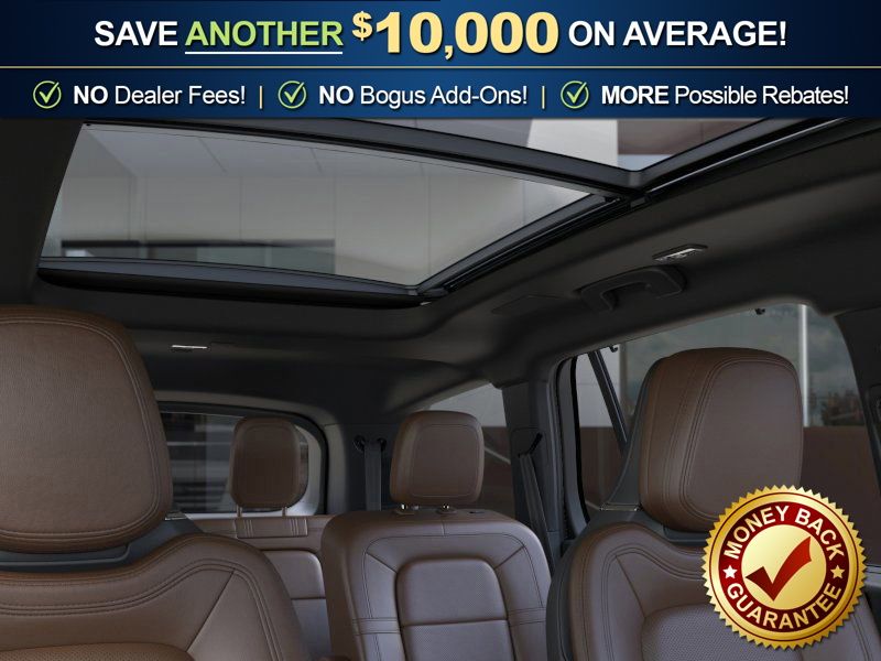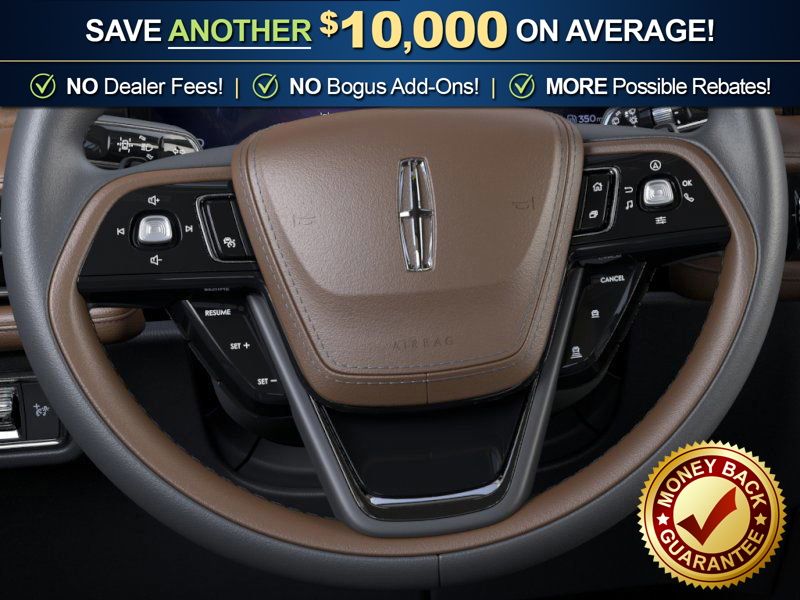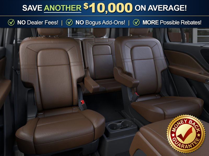 Lincoln Connectivity Package (4-Years), 14 Speakers, 3rd row seats: split-bench, 4-Wheel Disc Brakes, 40/Mini Console/40 Dual Captain's Chairs, ABS brakes, Adaptive suspension, Air Conditioning, Alloy wheels, AM/FM radio: SiriusXM, Apple CarPlay/Android Auto, Audio memory, Auto Heated and Ventilated Driver and Passenger Seats, Auto High-beam Headlights, Auto-dimming door mirrors, Auto-dimming Rear-View mirror, Automatic temperature control, Brake assist, Bumpers: body-color, Compass, Delay-off headlights, Driver door bin, Driver vanity mirror, Dual front impact airbags, Dual front side impact airbags, Electronic Stability Control, Emergency communication system: 911 Assist, Four wheel independent suspension, Front anti-roll bar, Front Bucket Seats, Front Center Armrest, Front dual zone A/C, Front reading lights, Fully automatic headlights, Garage door transmitter, Genuine wood console insert, Genuine wood dashboard insert, Heads-Up Display, Heated door mirrors, Heated front seats, Heated steering wheel, HVAC memory, Illuminated entry, Knee airbag, Leather steering wheel, Lincoln App, Lincoln BlueCruise Equipped (4-Years Included), Lincoln Digital Experience, Low tire pressure warning, Memory seat, Navigation system: Google Maps, Occupant sensing airbag, Outside temperature display, Overhead airbag, Overhead console, Panic alarm, Passenger door bin, Passenger vanity mirror, Power door mirrors, Power driver seat, Power Liftgate, Power moonroof: Panoramic Vista Roof, Power passenger seat, Power steering, Power windows, Premium Leather Front Captain's Chairs, Radio data system, Radio: Revel Audio System with 14 Speakers, Rain sensing wipers, Rear air conditioning, Rear anti-roll bar, Rear audio controls, Rear dual zone A/C, Rear reading lights, Rear window defroster, Rear window wiper, Remote keyless entry, Security system, SiriusXM, Speed control, Speed-Sensitive Wipers, Split folding rear seat, Spoiler, Steering wheel memory, Steering wheel mounted A/C controls, Steering wheel mounted audio controls, Tachometer, Telescoping steering wheel, Tilt steering wheel, Traction control, Trip computer, Turn signal indicator mirrors, Variably intermittent wipers, Ventilated front seats, Wheels: 21" Bright-Machined Aluminum with Dark Alloy Painted Pockets, and Wireless Charging Pad.