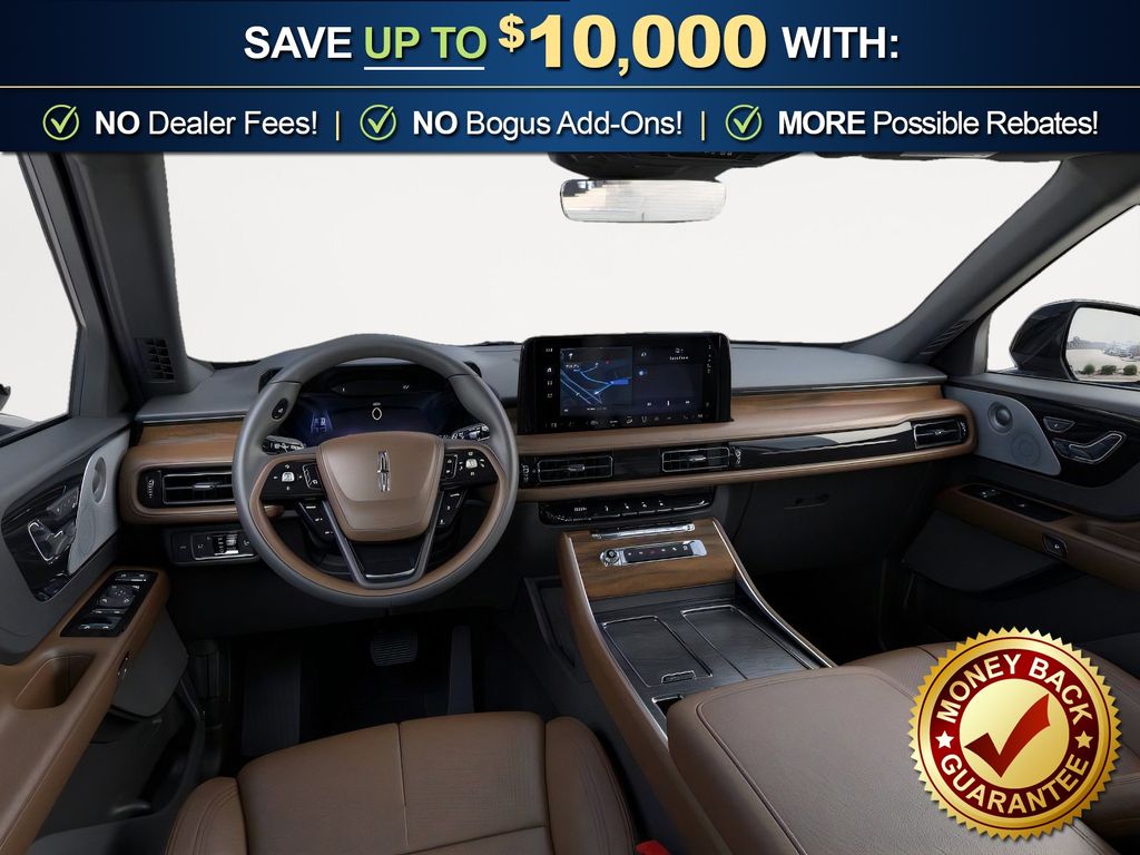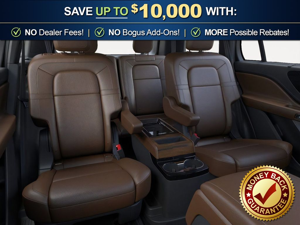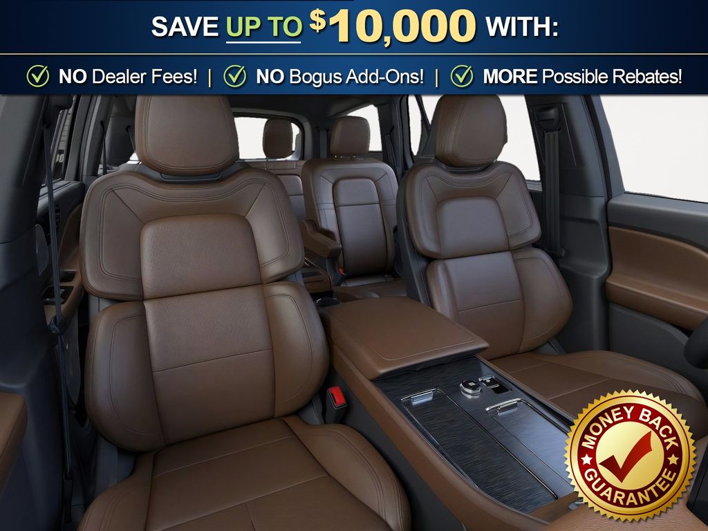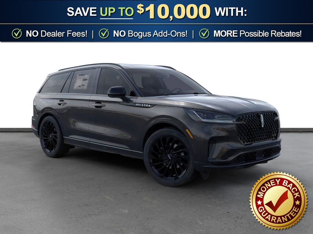 Dealer Discount of $3,264 off MSRP Infinite Black Metallic Clearcoat 2026 Lincoln Aviator Reserve NLT AWD 10-Speed Automatic 3.0L V6 14 Speakers, 3rd row seats: split-bench, 4-Wheel Disc Brakes, 40/Mini Console/40 Dual Captain's Chairs, ABS brakes, Adaptive suspension, Air Conditioning, Alloy wheels, AM/FM radio: SiriusXM, Apple CarPlay/Android Auto, Audio memory, Auto Heated and Ventilated Driver and Passenger Seats, Auto High-beam Headlights, Auto-dimming door mirrors, Auto-dimming Rear-View mirror, Automatic temperature control, Black Exterior Elements, Body-Color Exterior Elements, Brake assist, Bumpers: body-color, Compass, Delay-off headlights, Driver door bin, Driver vanity mirror, Dual front impact airbags, Dual front side impact airbags, Electronic Stability Control, Emergency communication system: 911 Assist, Four wheel independent suspension, Front anti-roll bar, Front Bucket Seats, Front Center Armrest, Front dual zone A/C, Front reading lights, Full Rear Console, Fully automatic headlights, Garage door transmitter, Genuine wood console insert, Genuine wood dashboard insert, Heads-Up Display, Heated door mirrors, Heated front seats, Heated steering wheel, HVAC memory, Illuminated entry, Jet Appearance Package, Knee airbag, Leather steering wheel, Lincoln App, Lincoln BlueCruise Equipped (4-Years Included), Lincoln Connectivity Package (4-Years), Lincoln Digital Experience, Low tire pressure warning, Memory seat, Navigation system: Google Maps, Occupant sensing airbag, Outside temperature display, Overhead airbag, Overhead console, Panic alarm, Passenger door bin, Passenger vanity mirror, Power door mirrors, Power driver seat, Power Liftgate, Power moonroof: Panoramic Vista Roof, Power passenger seat, Power steering, Power windows, Premium Leather Front Captain's Chairs, Radio data system, Radio: Revel Audio System with 14 Speakers, Rain sensing wipers, Rear air conditioning, Rear anti-roll bar, Rear audio controls, Rear dual zone A/C, Rear reading lights, Rear window defroster, Rear window wiper, Remote keyless entry, Security system, SiriusXM, Speed control, Speed-Sensitive Wipers, Split folding rear seat, Spoiler, Steering wheel memory, Steering wheel mounted A/C controls, Steering wheel mounted audio controls, Tachometer, Telescoping steering wheel, Tilt steering wheel, Traction control, Trip computer, Turn signal indicator mirrors, Variably intermittent wipers, Ventilated front seats, Wheels: 21" Bright-Machined Aluminum with Dark Alloy Painted Pockets, Wheels: 22" Black Aluminum, Wireless Charging Pad.